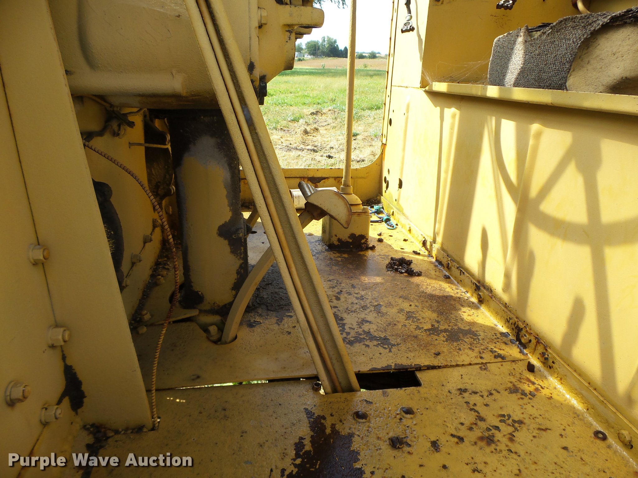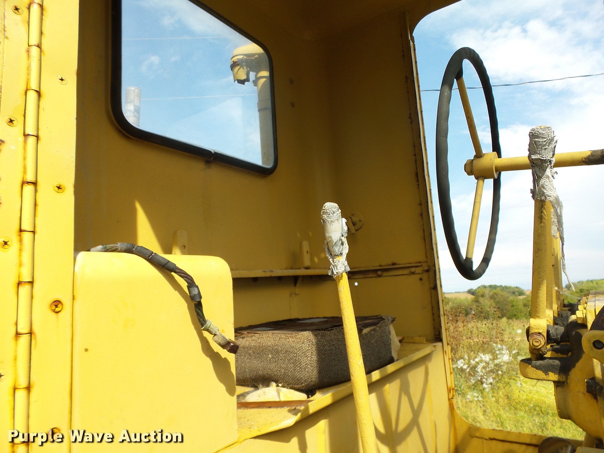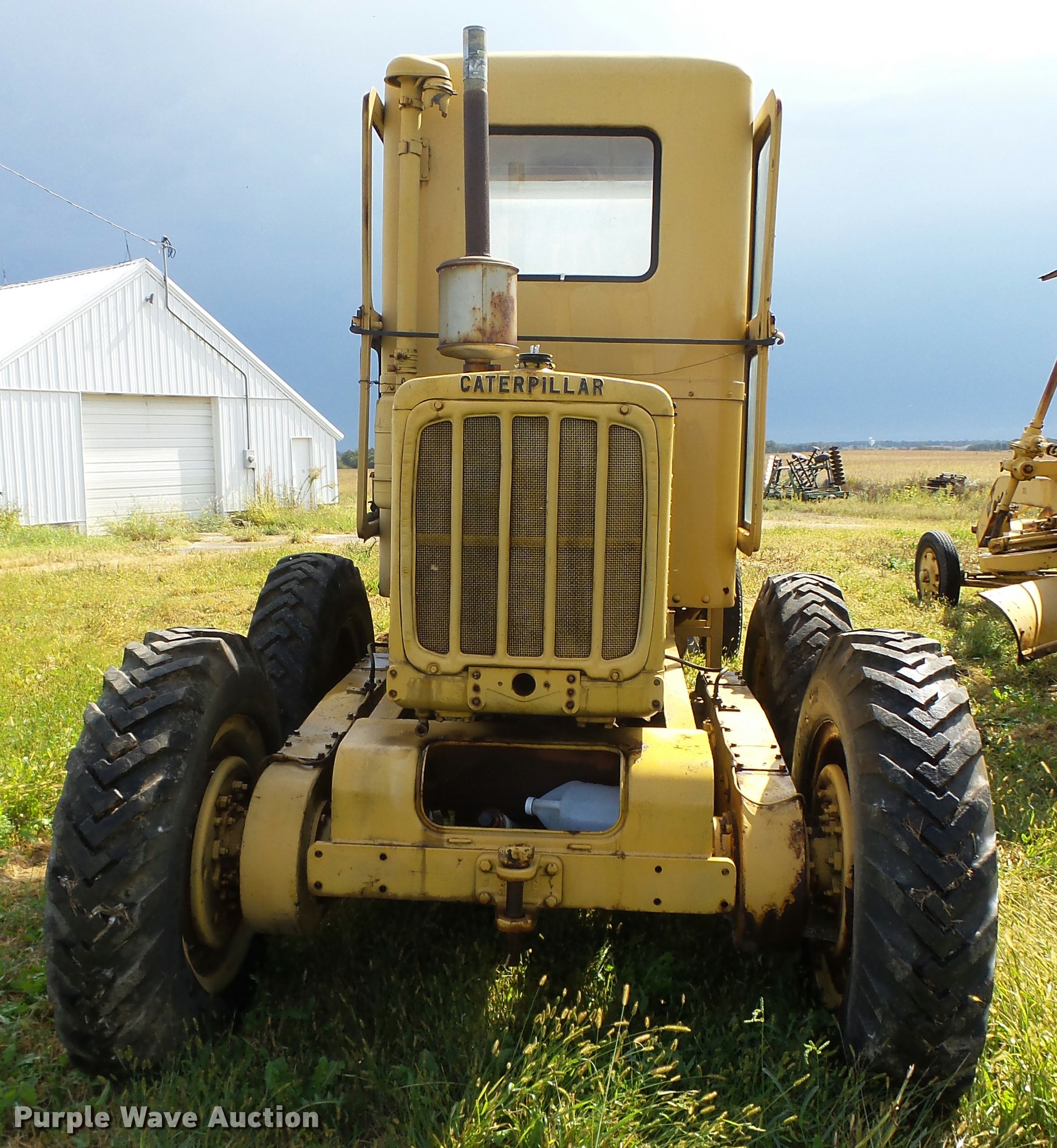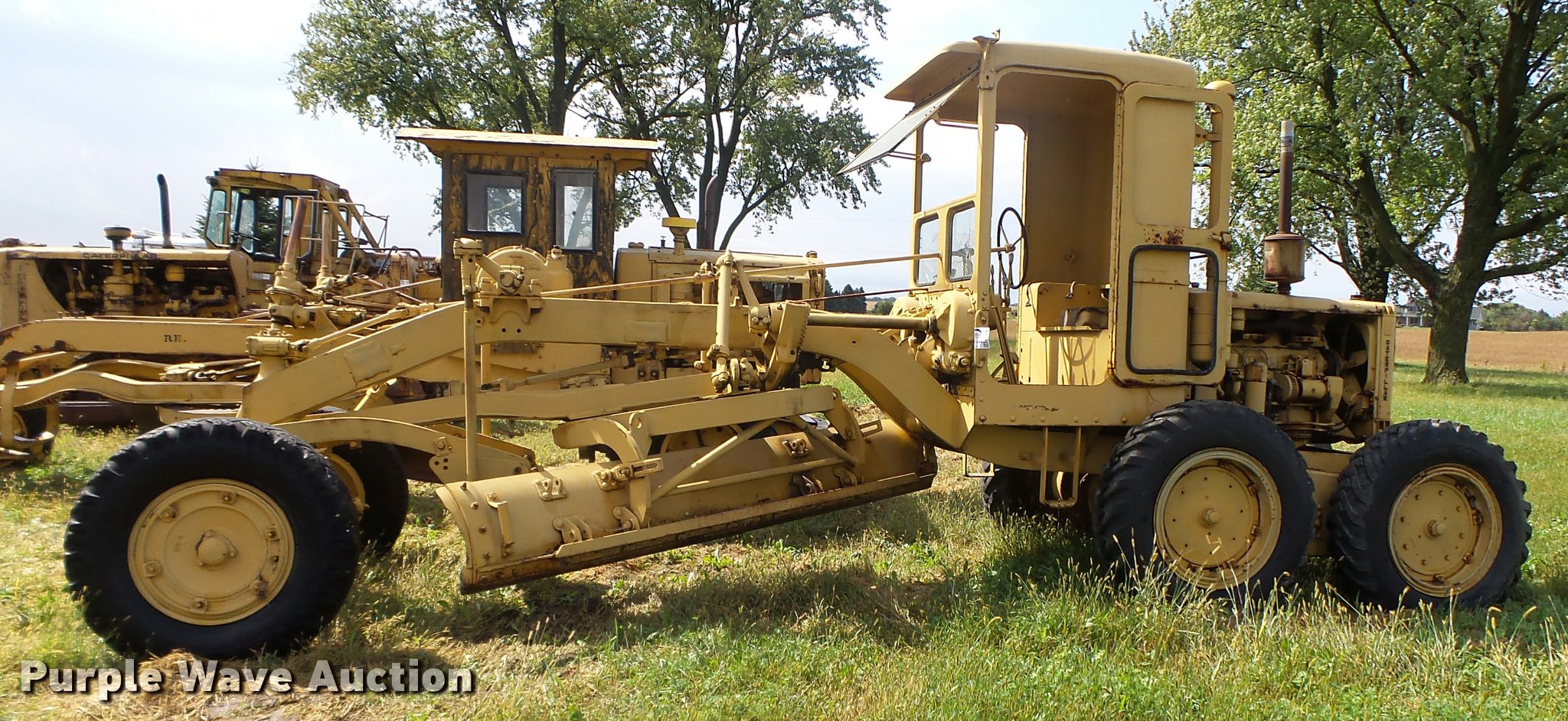 Purple Wave is selling a used Motor Grader in Iowa. This item is a Caterpillar 12 rigid frame motor grader with the following: Caterpillar four cylinder diesel engine, Serial 9T2858, Pony motor, Direct-drive transmission, 6F-2R gears, Enclosed cab, 10'W moldboard, Side shift, Caterpillar mid-mounted scarifier, (2) teeth, Rear draw bar, Two wheel brakes, 10.00-20 front tires, 10.00-24 rear tires, Left side cab door glass missing, Lower front cab glass needs replaced, Serial 9T2858