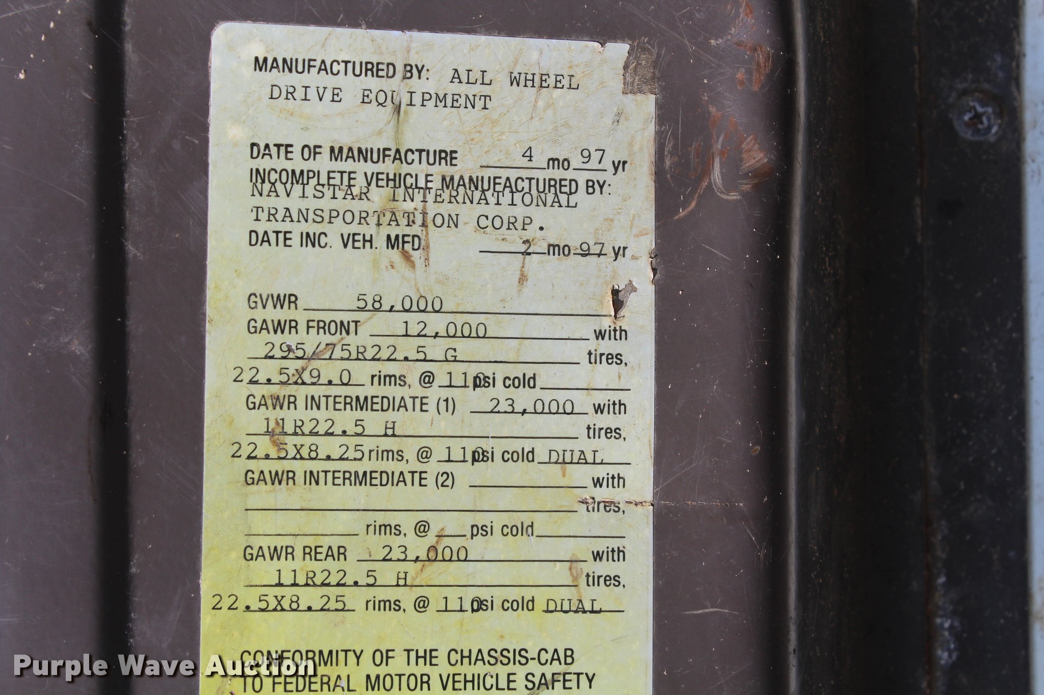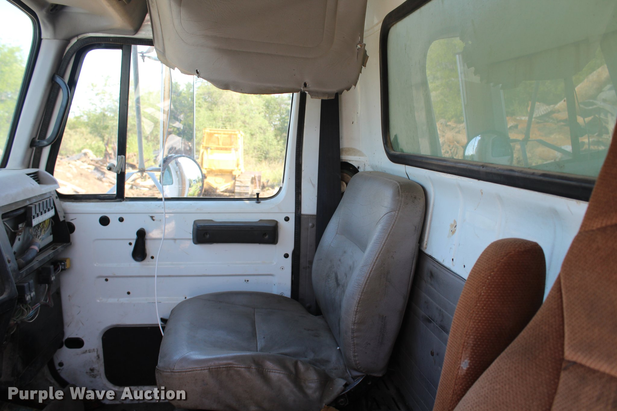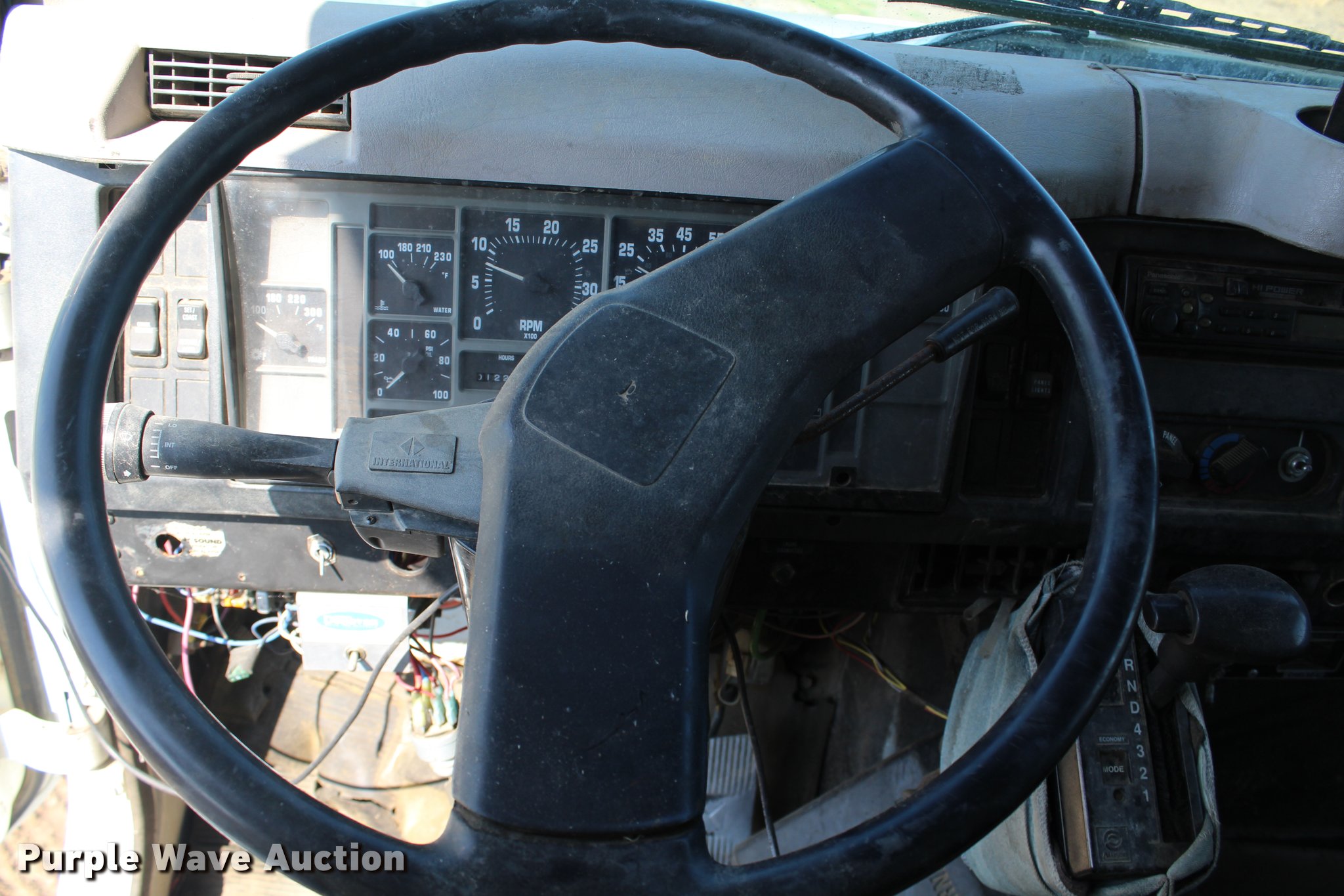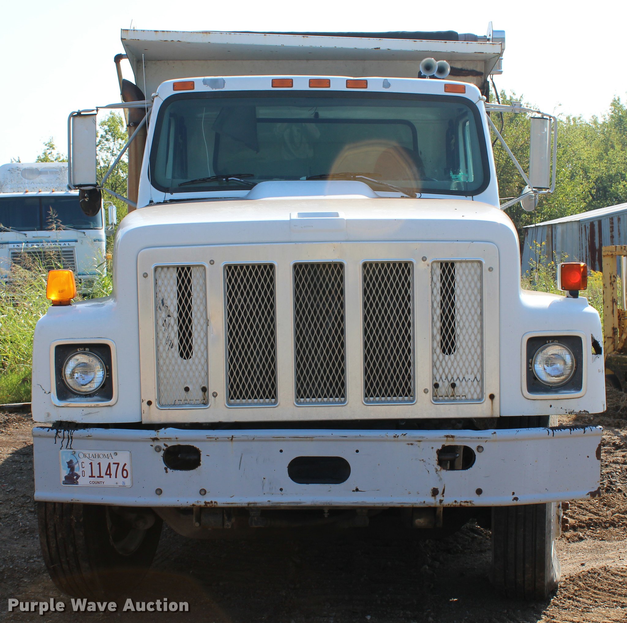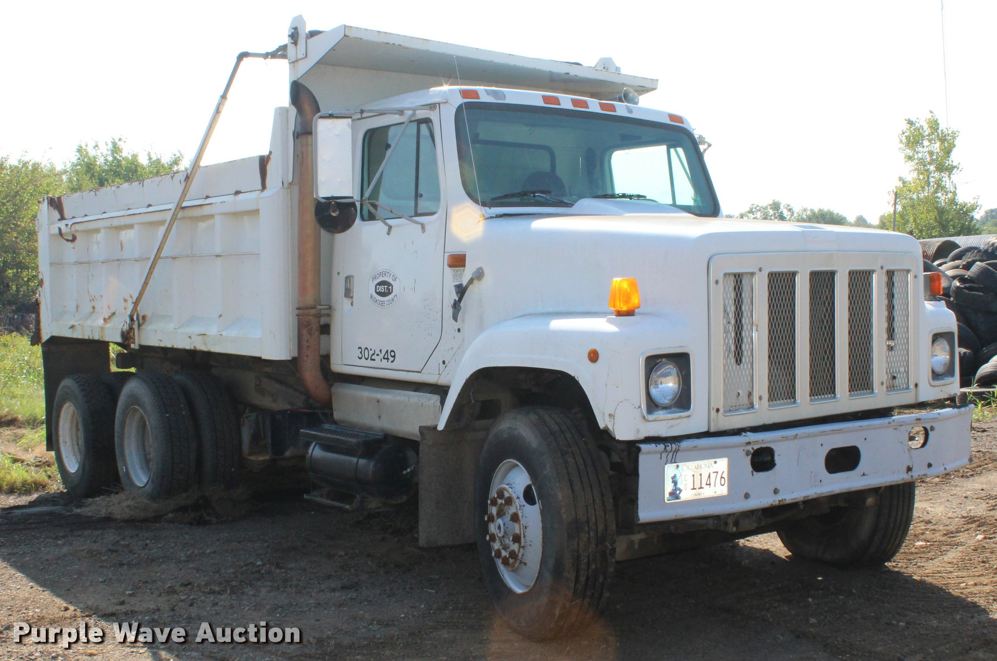 Purple Wave is selling a used Construction Dump Truck in Oklahoma. This item is a 1997 International 2554 dump truck with the following: 186,715 miles on odometer, 12,287 hours on meter, International DT530 8.7L L6 turbo diesel engine, Automatic transmission, Tandem axle, AC and heat, Cruise, AM/FM/cassette, Air suspension seat, Steel dump bed, 14'L x 8'W, 36" side height, 8" side board height, Single ram hoist, Manual operated end gate, Rollover tarp, 200" wheelbase, Spring over walking beam suspension, Air brakes, 11R22.5 tires, GVWR 58,000 lbs, FAWR 12,000 lbs, IAWR 23,000 lbs, RAWR 23,000 lbs, Unknown operating condition, Headliner damaged, Loose wires, Dash panels missing, Interior/exterior cosmetic damage, Unit# 302-149