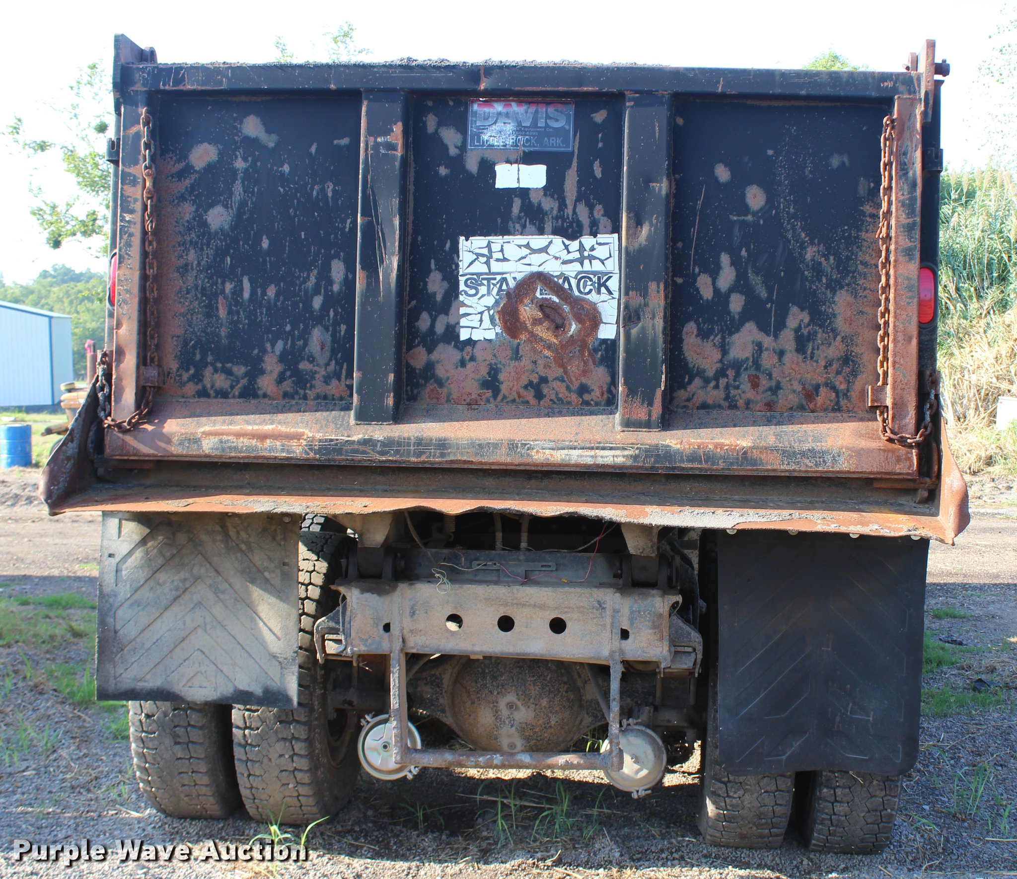 1995 International 9200 dump truck. 717,018 miles on odometer, Caterpillar 3176 10.3L L6 turbo diesel engine Serial 9CK11784, Eaton Fuller nine speed manual transmission, Tandem axle, AC and heat, Cruise, AM/FM/cassette, Air suspension seat, Exterior visor, PTO, Davis steel dump bed 15'L x 8'W, 36" side height, 11" side board height, Single ram hoist, Manual operated end gate, Rollover tarp, Toolboxes, 214" wheelbase, Spring suspension, Air brakes, 295/75R22.5 tires, GVWR 46,000 lbs, FAWR 12,000 lbs, IAWR 17,000 lbs, RAWR 17,000 lbs, Unknown operating condition, Windshield cracked, Wires loose, Light damage, Tires flat, Side boards rotten Portions missing, Unit# 302-0139. Oklahoma title. Title distribution may be delayed up to 14 days from verification of funds. 2HSFMATR6SC014373. Muskogee County D1. 3000 North Street. Muskogee, OK 74403