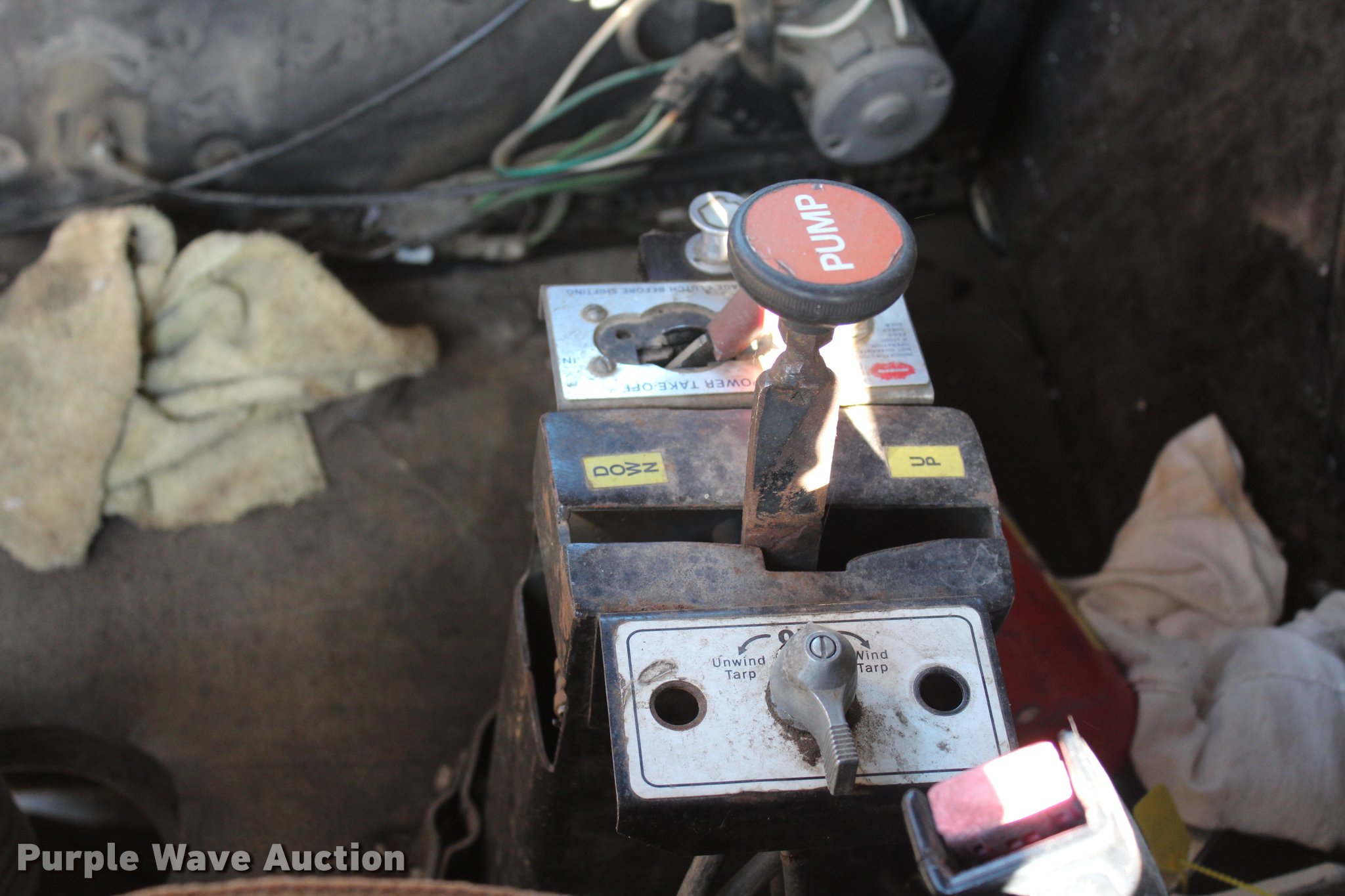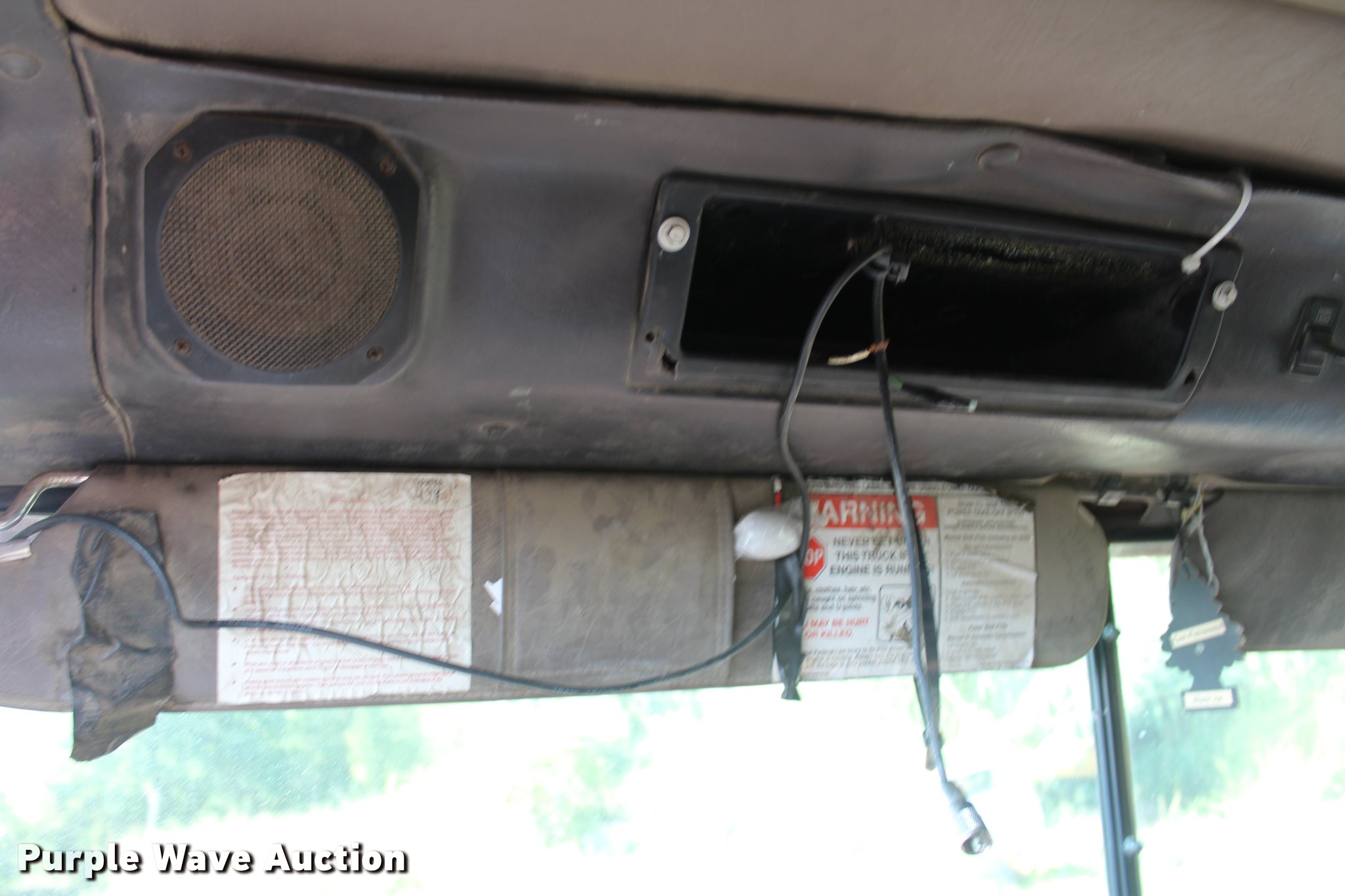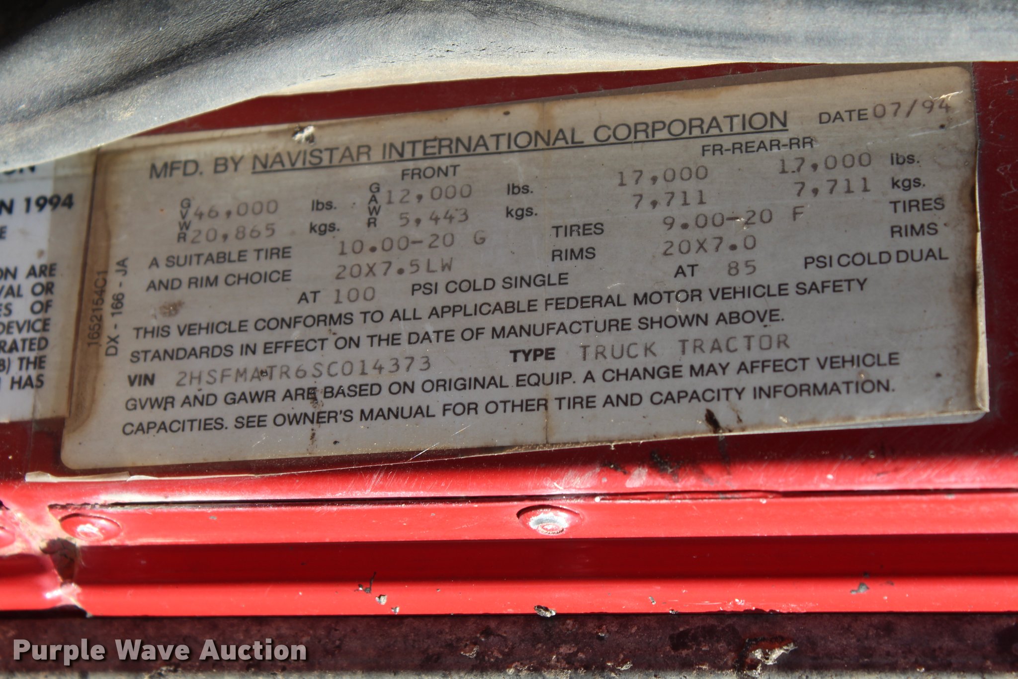 Purple Wave is selling a used Construction Dump Truck in Oklahoma. This item is a 1995 International 9200 dump truck with the following: 717,018 miles on odometer, Caterpillar 3176 10.3L L6 turbo diesel engine, Serial 9CK11784, Eaton Fuller nine speed manual transmission, Tandem axle, AC and heat, Cruise, AM/FM/cassette, Air suspension seat, Exterior visor, PTO, Davis steel dump bed, 15'L x 8'W, 36" side height, 11" side board height, Single ram hoist, Manual operated end gate, Rollover tarp, Toolboxes, 214" wheelbase, Spring suspension, Air brakes, 295/75R22.5 tires, GVWR 46,000 lbs, FAWR 12,000 lbs, IAWR 17,000 lbs, RAWR 17,000 lbs, Unknown operating condition, Windshield cracked, Wires loose, Light damage, Tires flat, Side boards rotten, Portions missing, Unit# 302-0139
