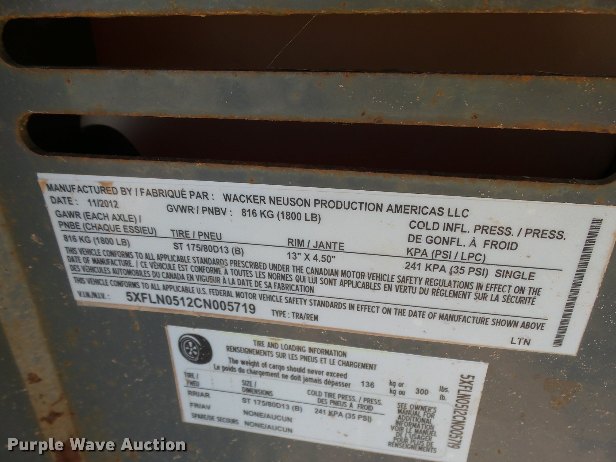 Purple Wave is selling a used Light Plant in Oklahoma. This item is a 2012 Wacker Neuson LTN6 light plant with the following: 5,080 hours on meter, Kohler diesel engine, 175/80D13 tires