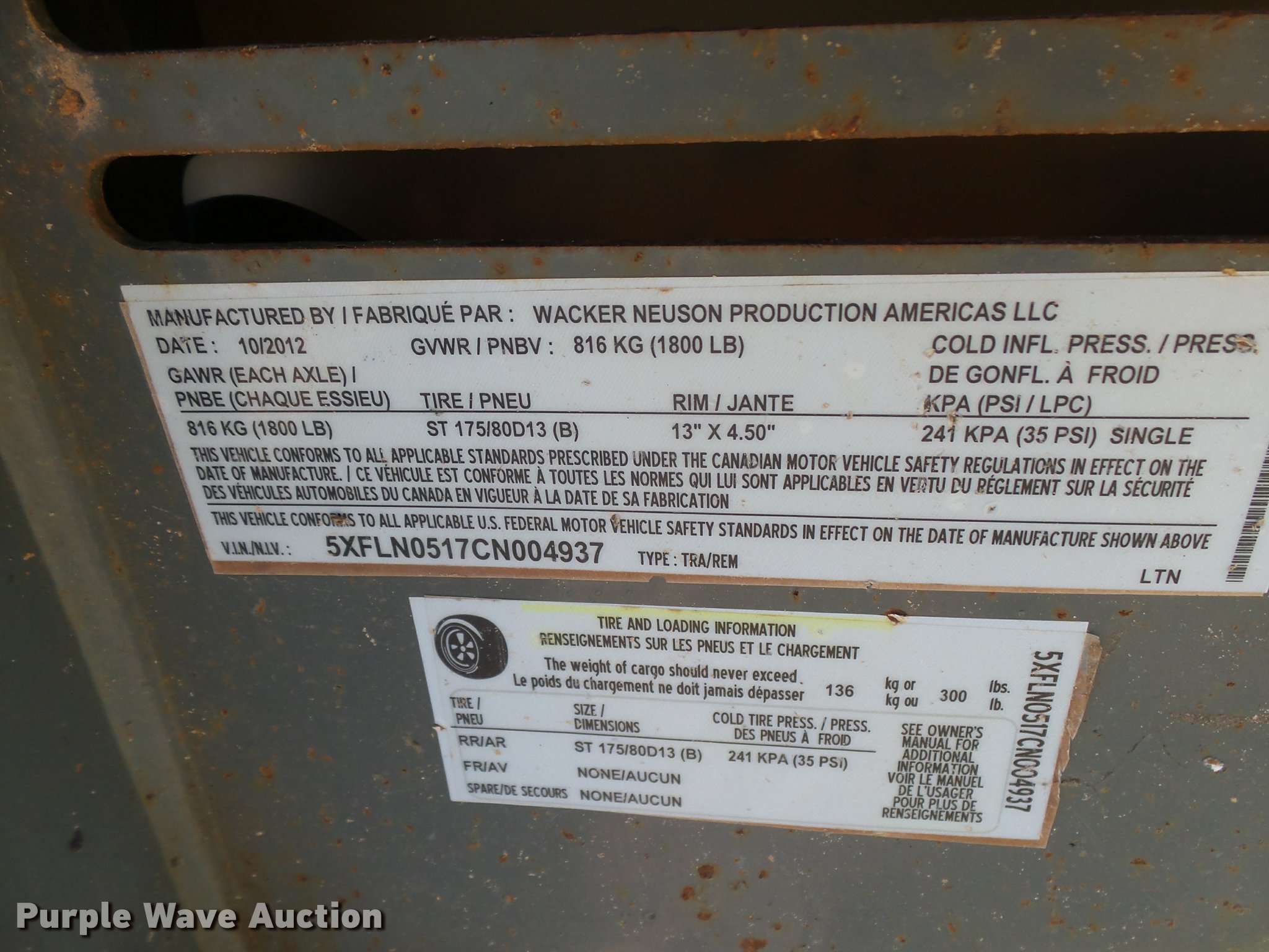 Purple Wave is selling a used Light Plant in Oklahoma. This item is a 2012 Wacker Neuson LTN6 light plant with the following: 2,986 hours on meter, Kohler diesel engine, 175/80D13 tires