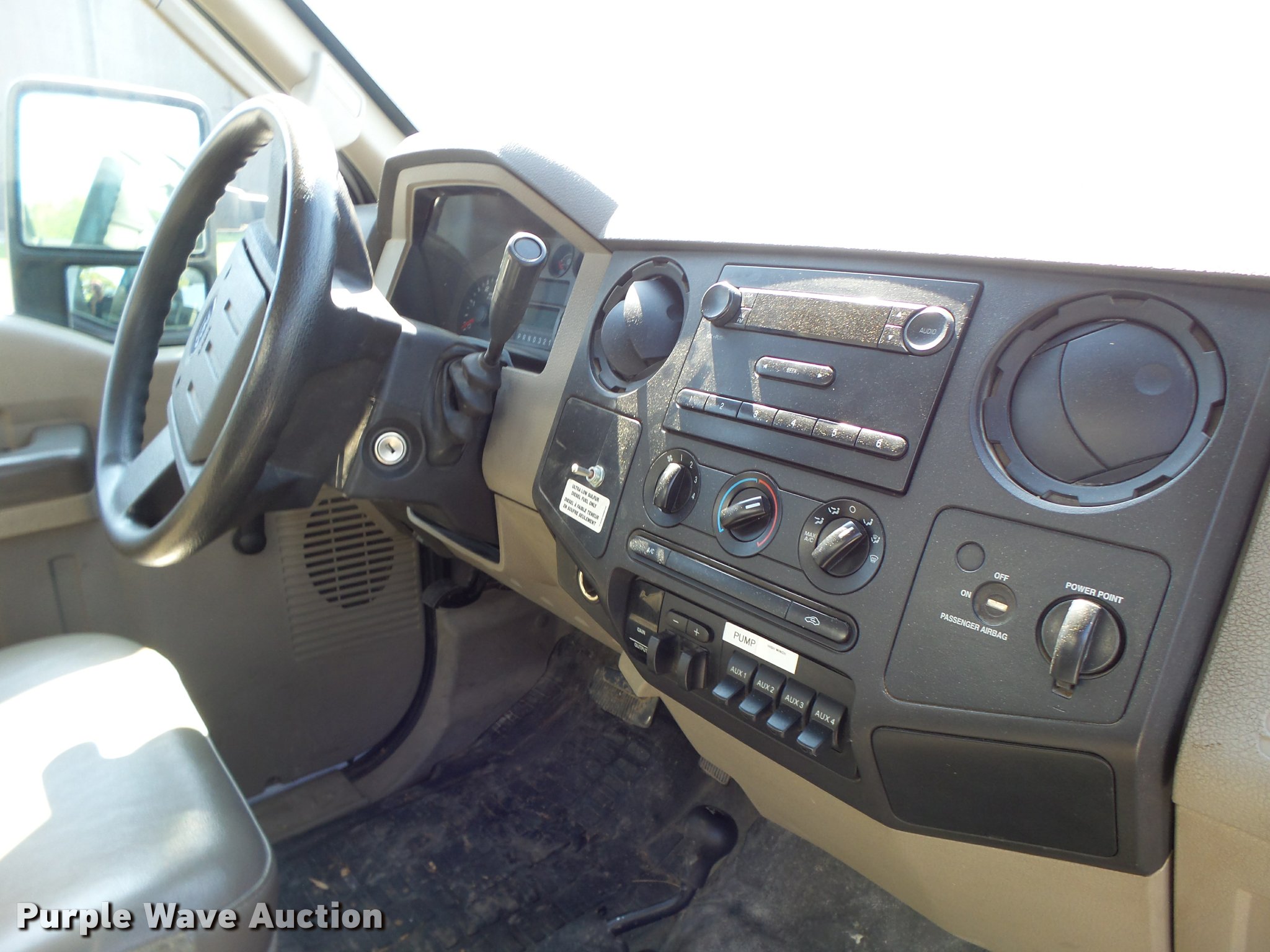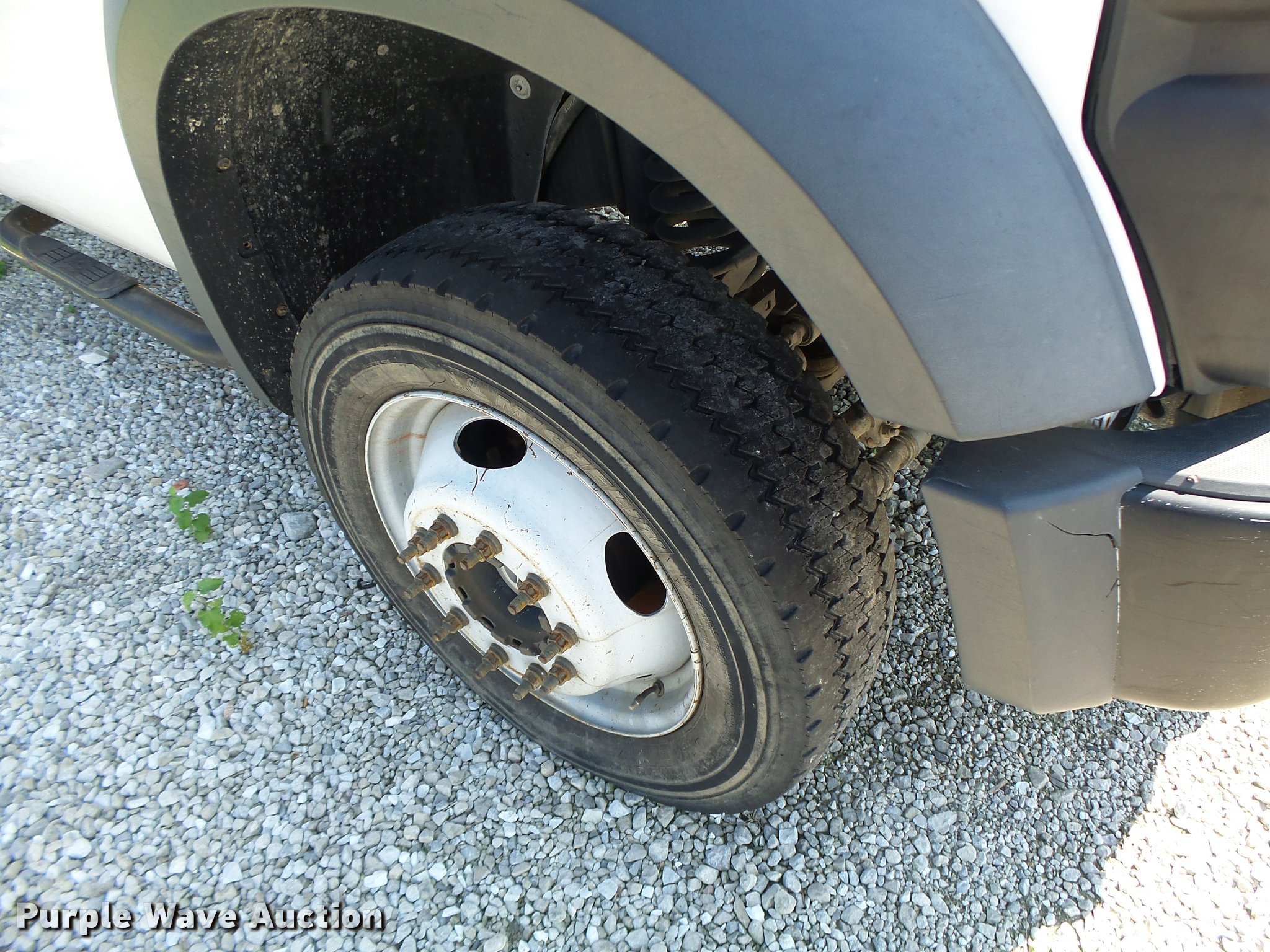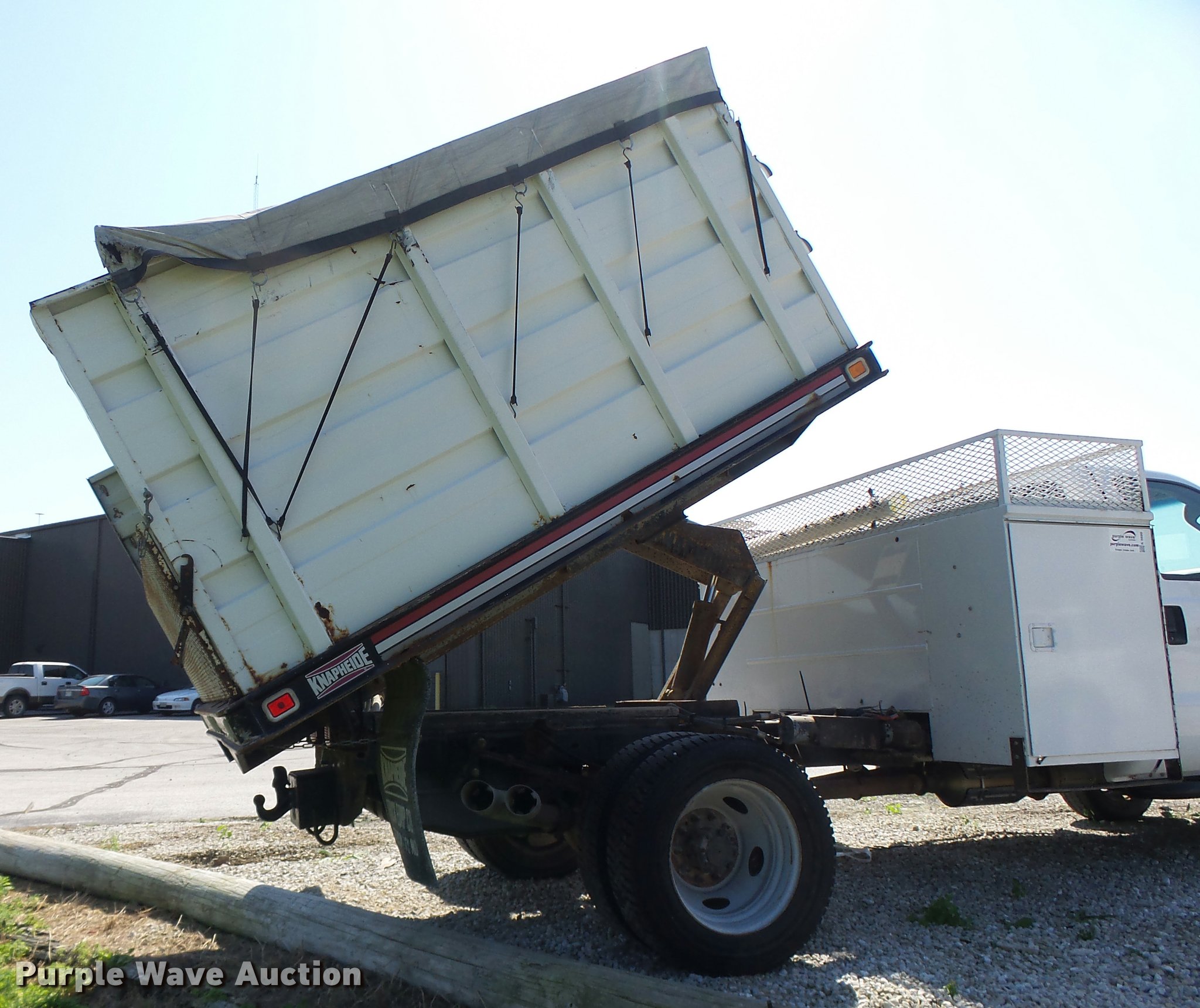 Purple Wave is selling a used Construction Dump Truck in Missouri. This item is a 2008 Ford F550 dump truck with the following: 88,931 miles on odometer, 6.4L V8 OHV 32V diesel engine, Automatic transmission, Four wheel drive, Single axle, AC and heat, AM/FM, Suspension seat, AC and heat, AM/FM, Suspension seat, Knapheide KP943140 steel dump bed, 9'L x 8'W, 52" side height, Toolboxes, Manual end gate, Single ram hoist, Electric over hydraulic dump, Serial 009605, Single fuel tank, Pintle hitch, Trailer wiring, Spring suspension, Hydraulic brakes, 225/70R19.5 tires, Non-operational unit, engine issues, Hole in piston
