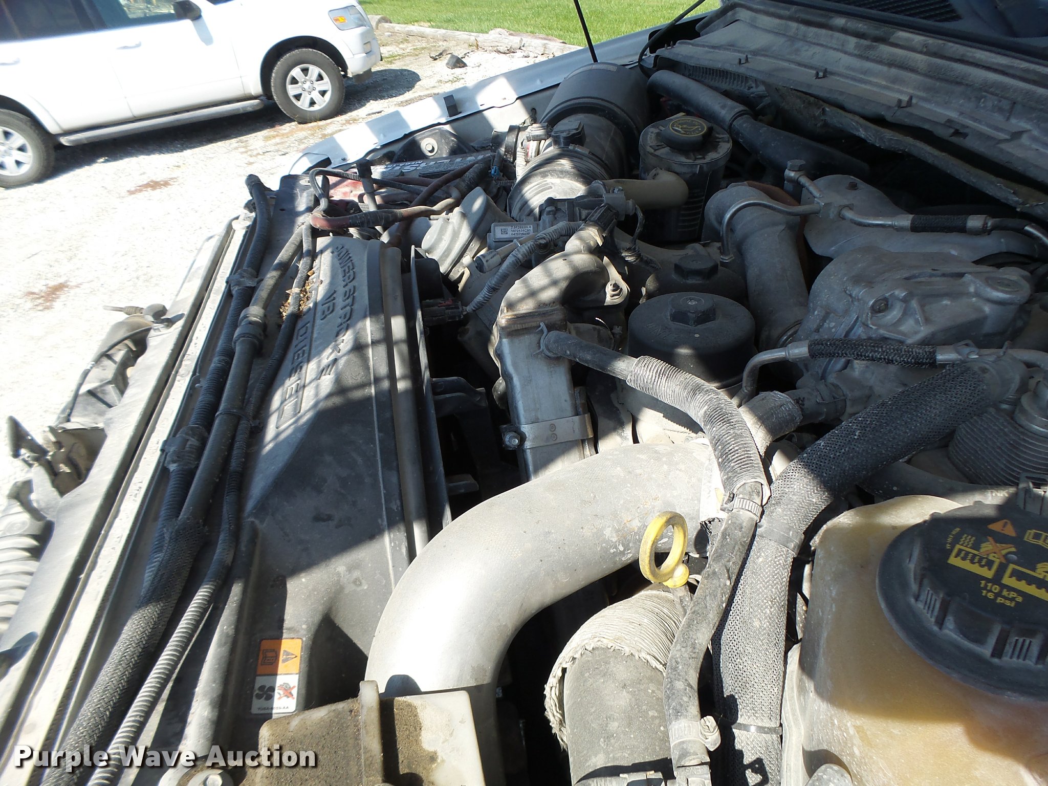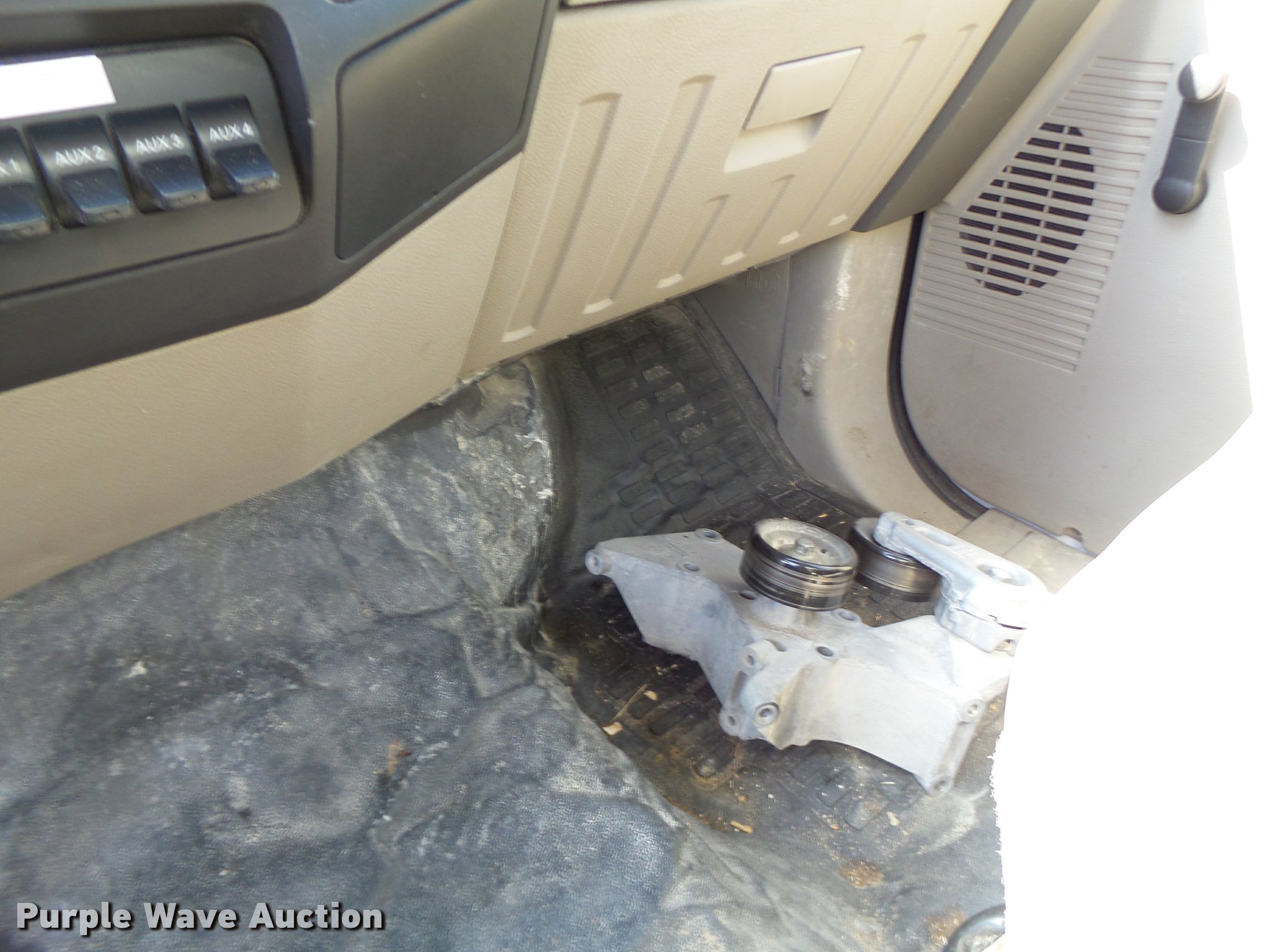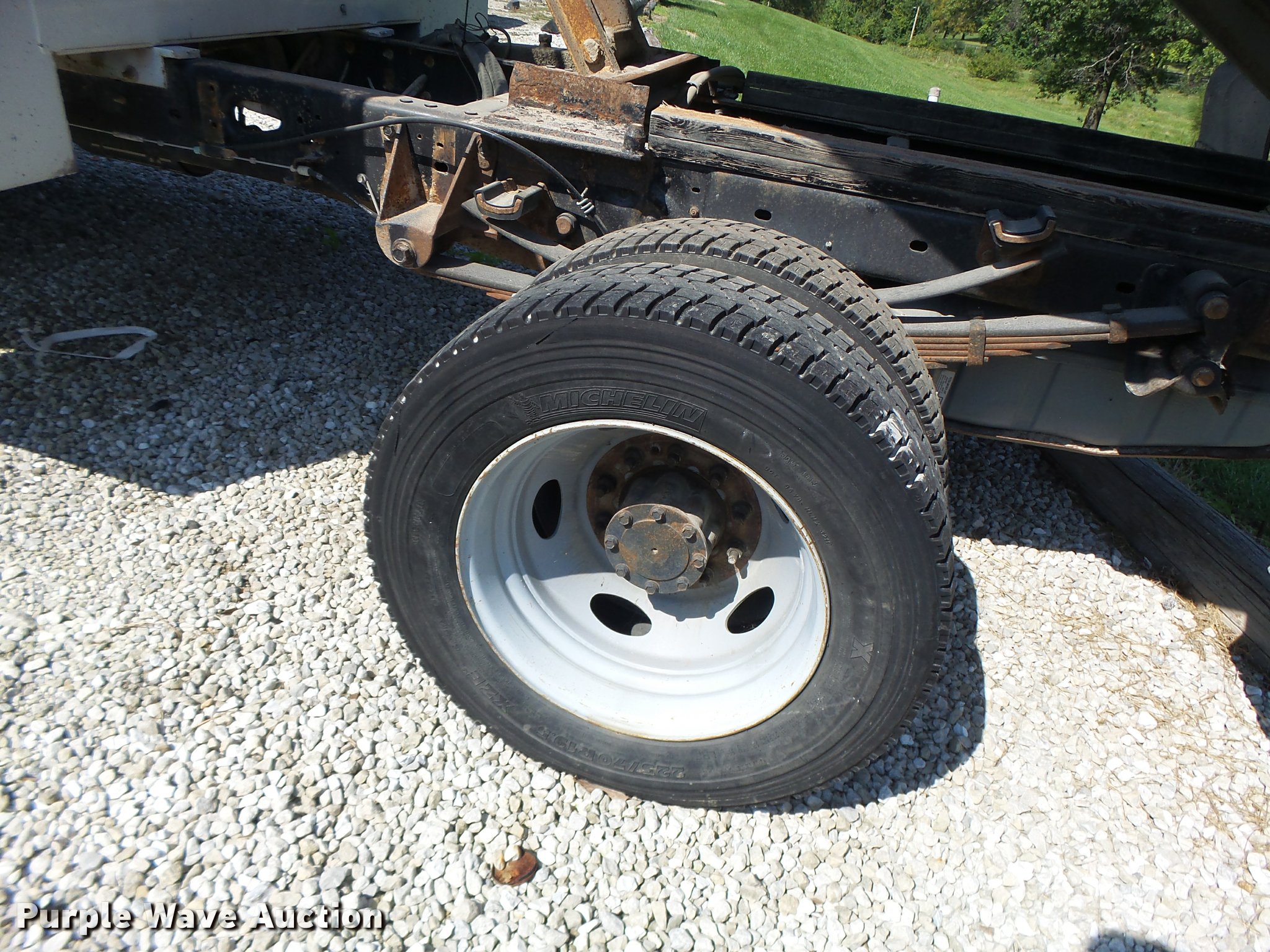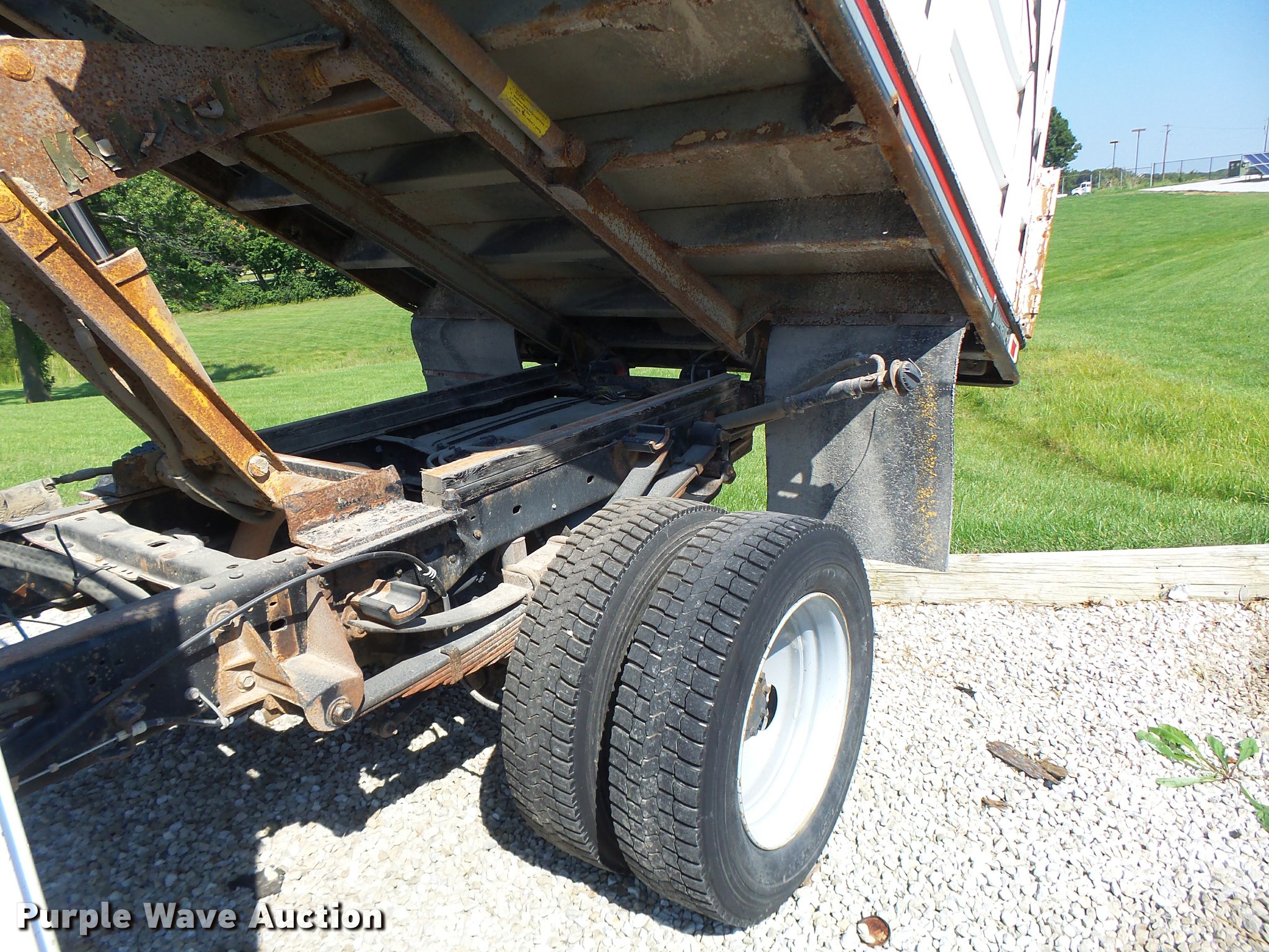 Purple Wave is selling a used Construction Dump Truck in Missouri. This item is a 2008 Ford F550 dump truck with the following: 88,931 miles on odometer, 6.4L V8 OHV 32V diesel engine, Automatic transmission, Four wheel drive, Single axle, AC and heat, AM/FM, Suspension seat, AC and heat, AM/FM, Suspension seat, Knapheide KP943140 steel dump bed, 9'L x 8'W, 52" side height, Toolboxes, Manual end gate, Single ram hoist, Electric over hydraulic dump, Serial 009605, Single fuel tank, Pintle hitch, Trailer wiring, Spring suspension, Hydraulic brakes, 225/70R19.5 tires, Non-operational unit, engine issues, Hole in piston