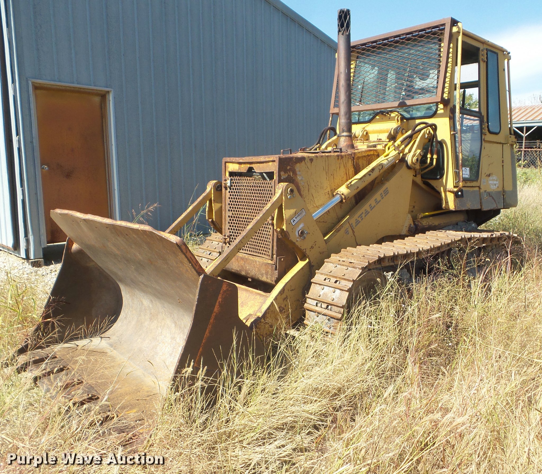 Purple Wave is selling a used Crawler Loader in Kansas. This item is a 1989 Fiat-Allis FL10E track loader with the following: 12,591 hours on meter, Six cylinder turbo diesel engine, Powershift transmission, 3F-3R gears, EROPS, Suspension seat, Joystick bucket controls, Wipers, Front and rear work lights, 89"W general purpose bucket, (8) teeth, Counterweights, Six bottom rollers, 15"W double grouser track pads, Some bucket teeth missing, Non-operational unit, Track drive issue, Serial 090304