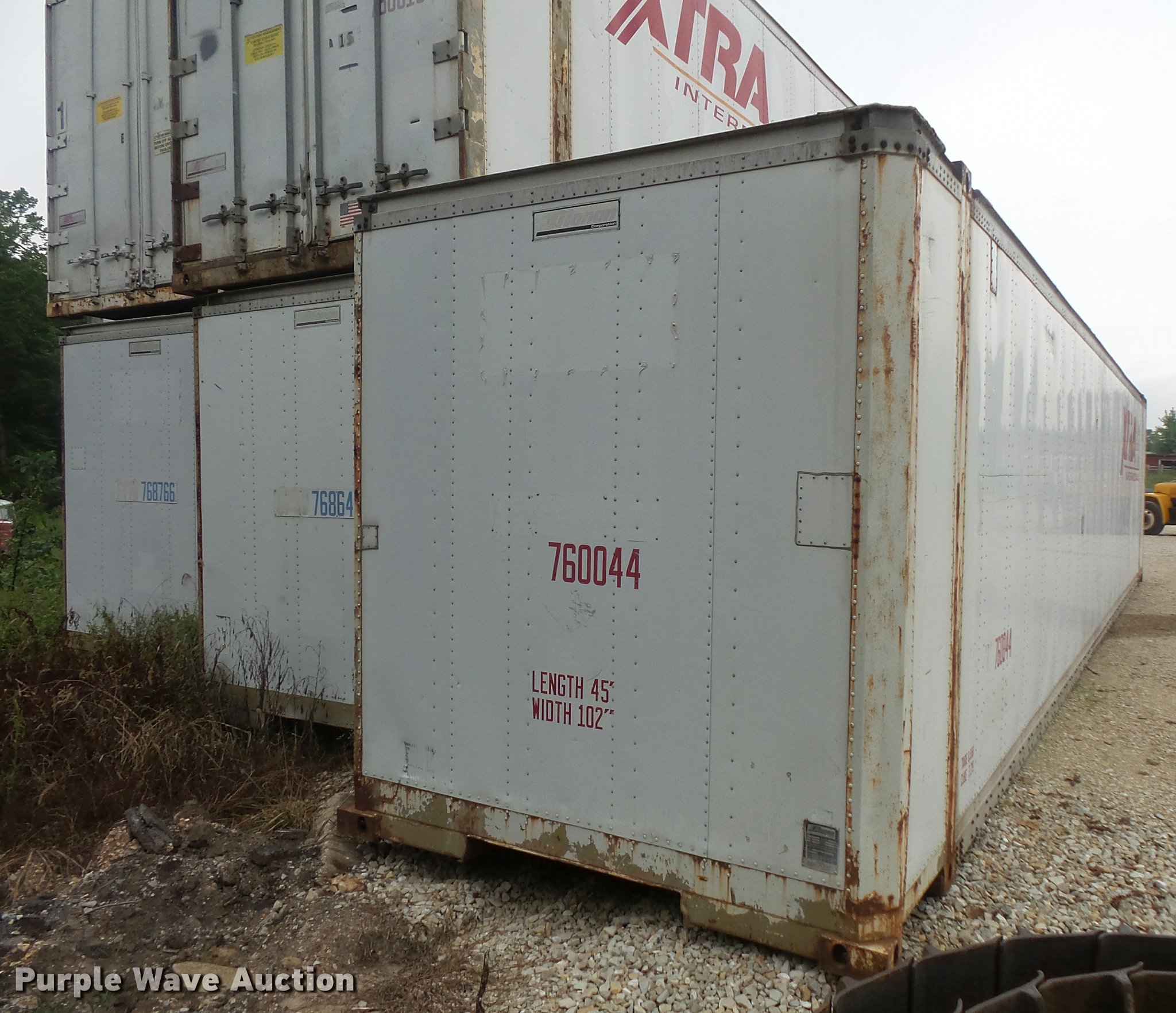 Purple Wave is selling a used Storage or Shipping Container in Missouri. This item is a Storage container with the following: 45'L x 8'W x 9'H, Wood floor, Plywood interior, Dual swing-out rear doors, Lifting eyes