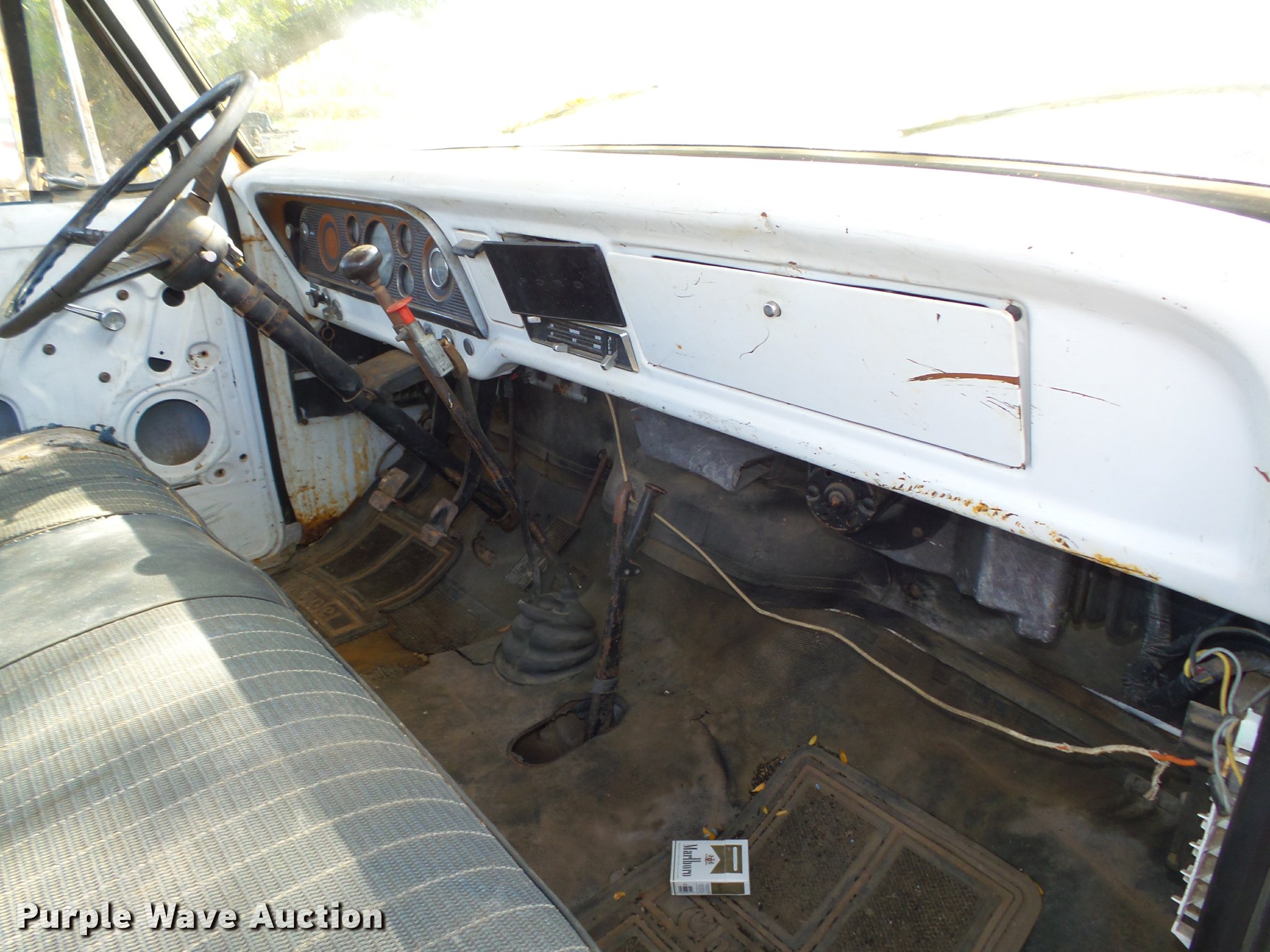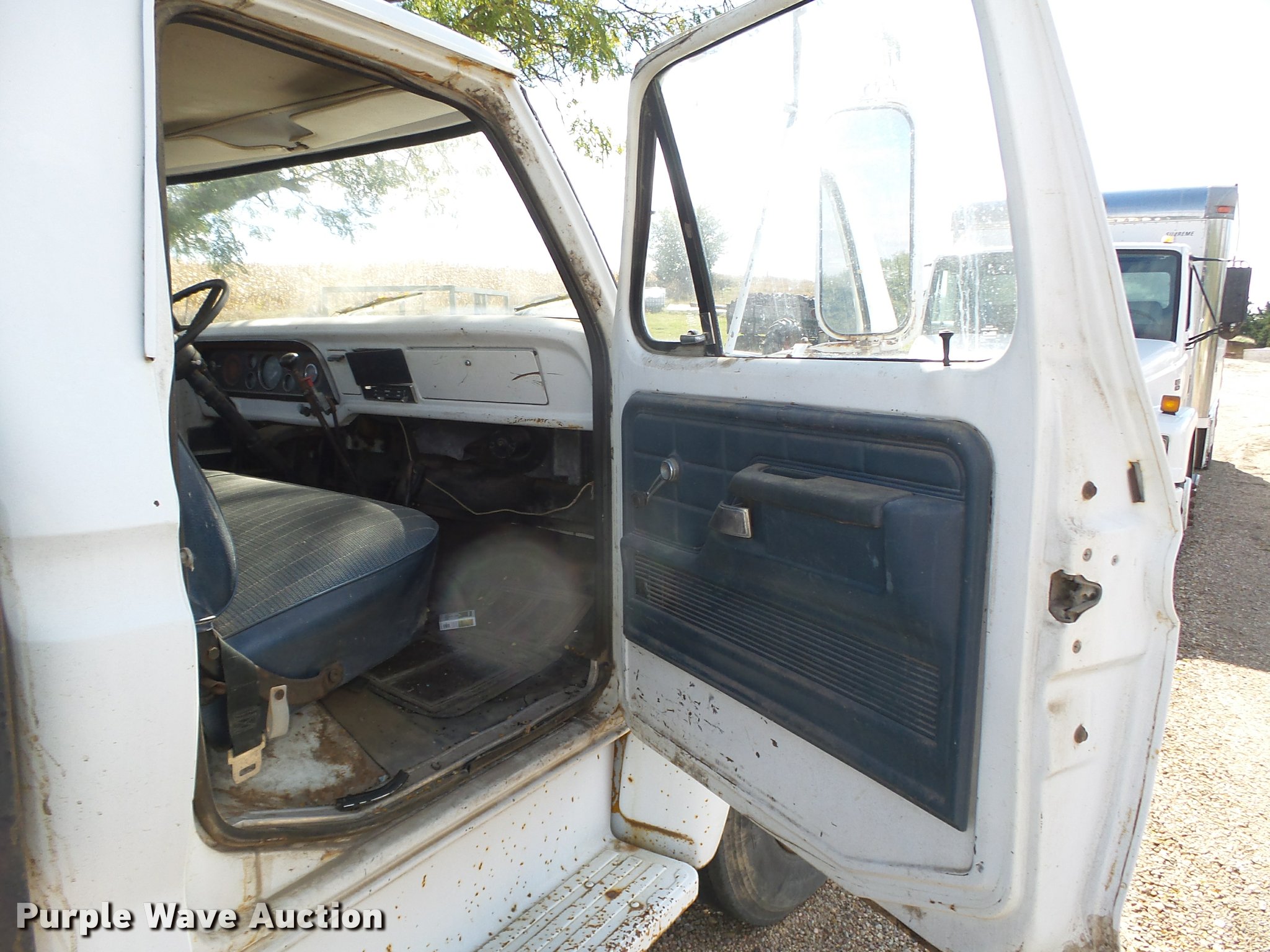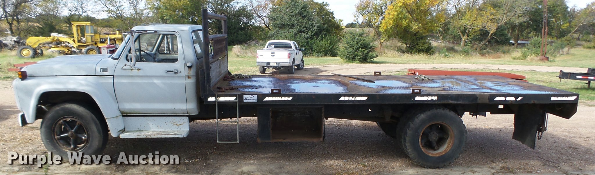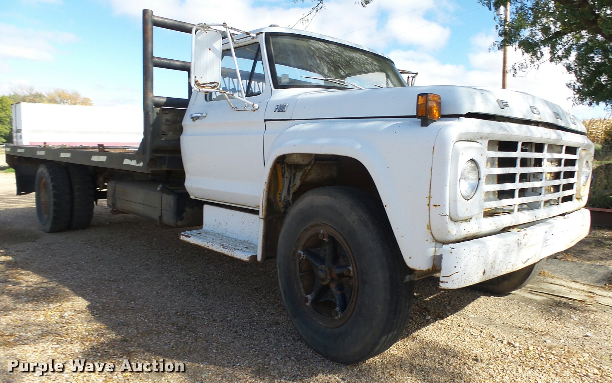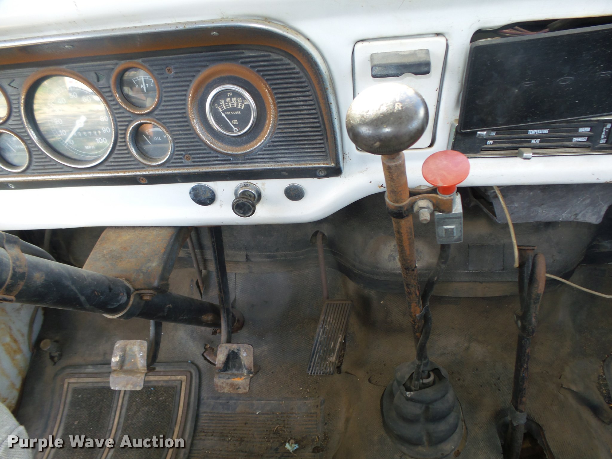 Purple Wave is selling a used Truck Chassis in Nebraska. This item is a 1977 Ford F600 truck cab and chassis with the following: 69,677 miles on odometer, Ford 361 C.I.D. eight cylinder gas engine, Four barrel carbeurator, Four speed manual transmission, Two speed rear end, Single axle, Heat, Spring suspension seat, Dual fuel tanks, Factory tank and 60 gallon saddle tank, 222" wheelbase, Spring suspension, Vacuum hydraulic brakes, 9.00R20 front tires tires, 9.00-20 rear tires, GVWR 24,000 lbs, FAWR 7,000 lbs, RAWR 17,000 lbs, Bed is not included and will be removed prior to auction