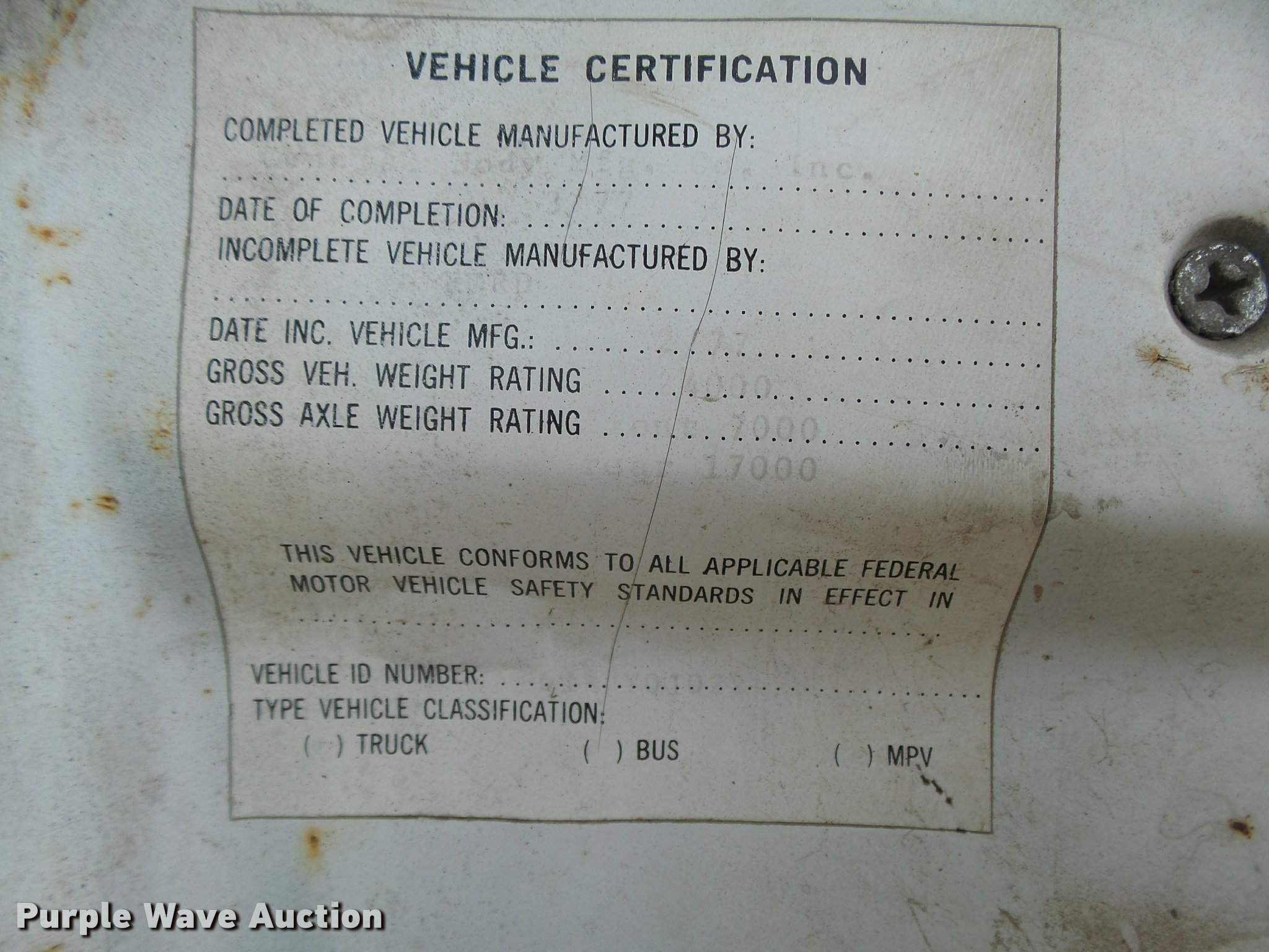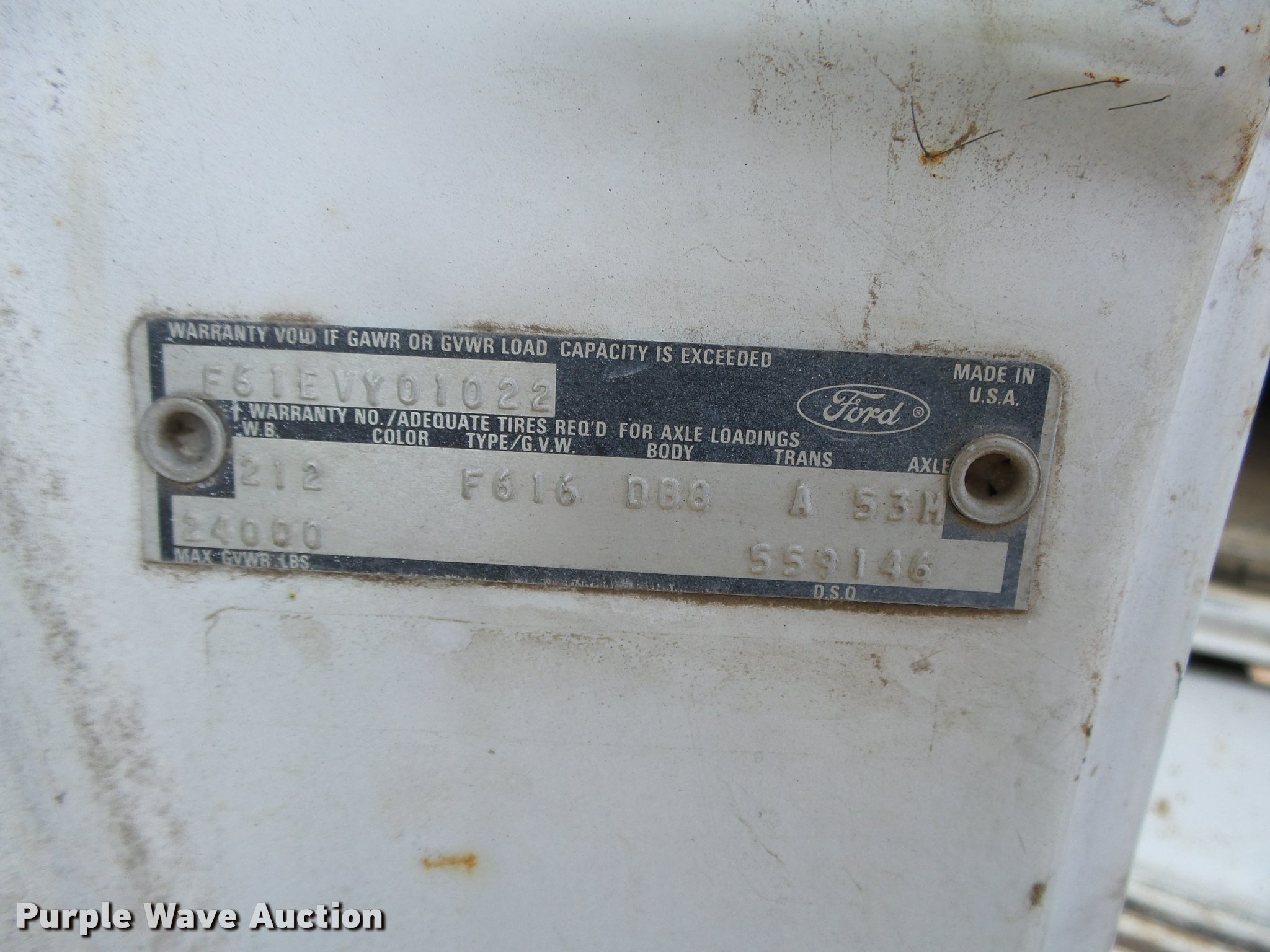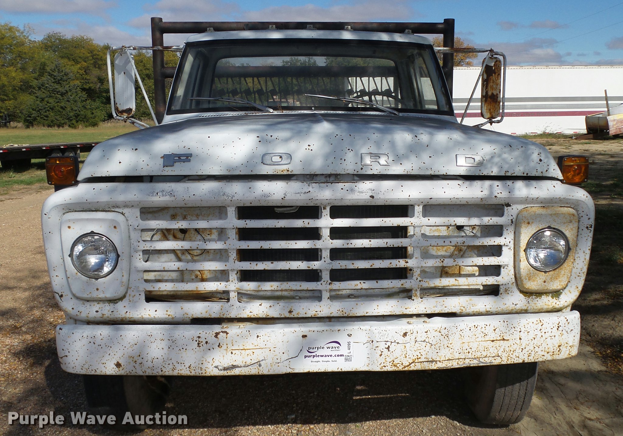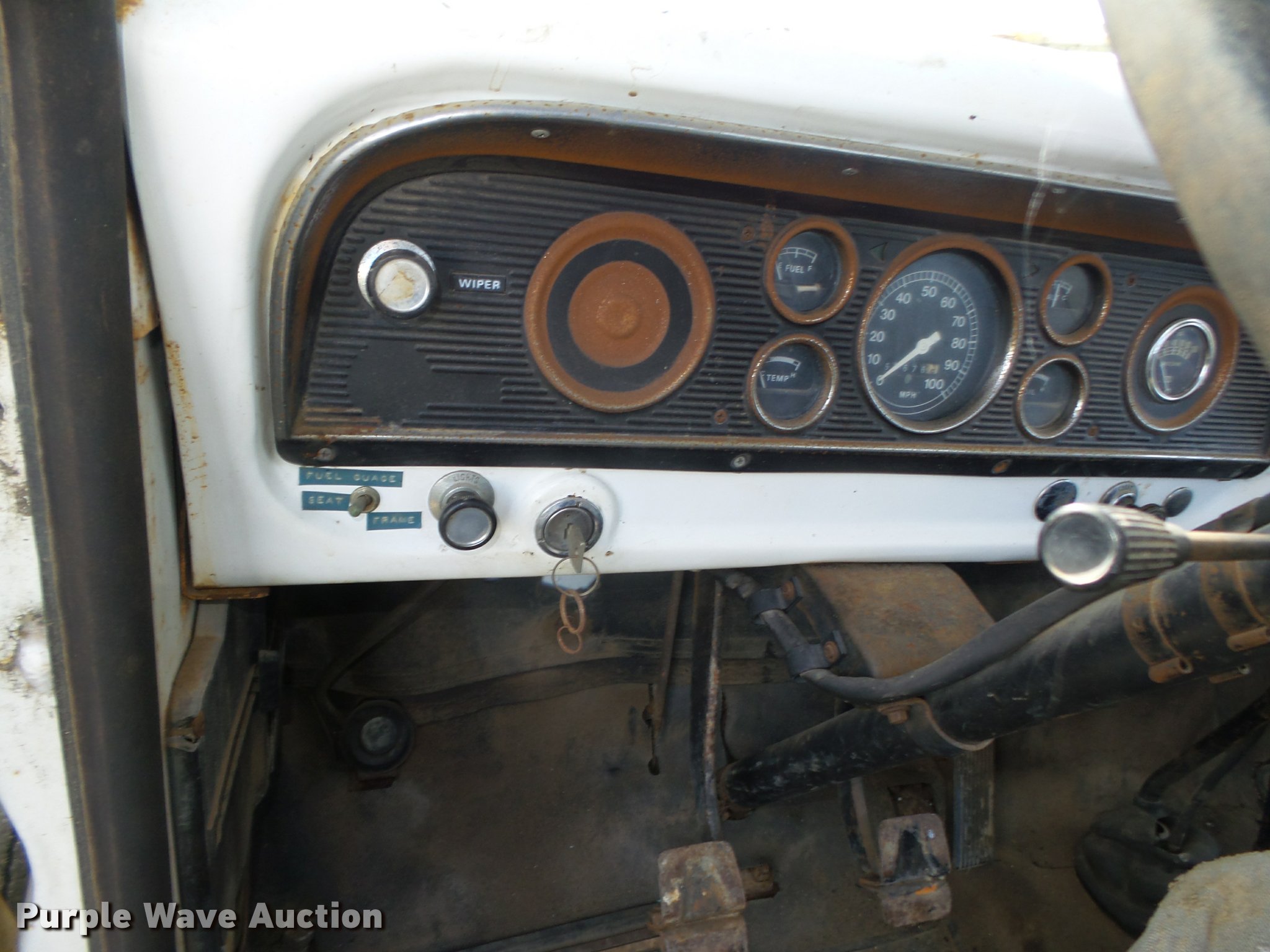 Purple Wave is selling a used Truck Chassis in Nebraska. This item is a 1977 Ford F600 truck cab and chassis with the following: 69,677 miles on odometer, Ford 361 C.I.D. eight cylinder gas engine, Four barrel carbeurator, Four speed manual transmission, Two speed rear end, Single axle, Heat, Spring suspension seat, Dual fuel tanks, Factory tank and 60 gallon saddle tank, 222" wheelbase, Spring suspension, Vacuum hydraulic brakes, 9.00R20 front tires tires, 9.00-20 rear tires, GVWR 24,000 lbs, FAWR 7,000 lbs, RAWR 17,000 lbs, Bed is not included and will be removed prior to auction