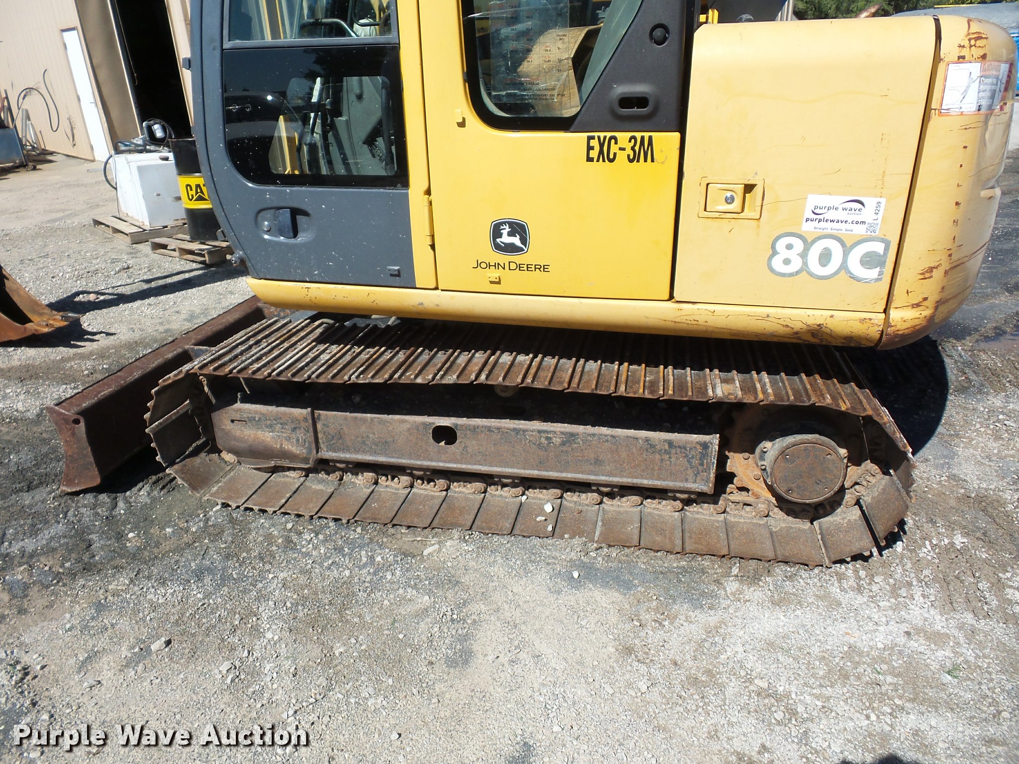 Purple Wave is selling a used Mini Excavator in Missouri. This item is a John Deere 80C compact excavator with the following: 8,157 hours on meter, Isuzu CC-4JG1 four cylinder diesel engine, Hydrostatic transmission, EROPS, Heat, AM/FM, 84" stick length, 12"W bucket, (3) teeth, 92"W backfill blade, 24"W steel tracks, Serial FF080CX011223
