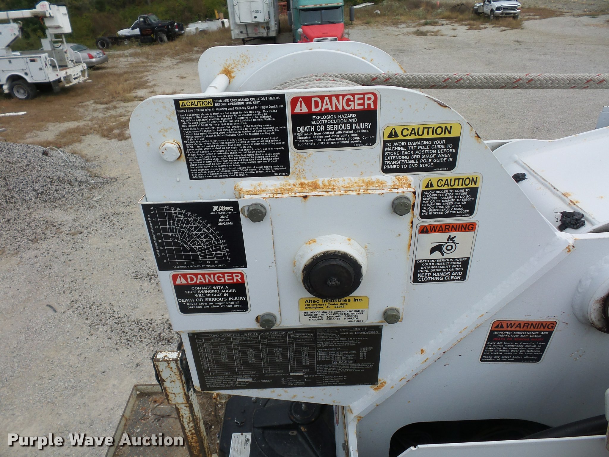 Purple Wave is selling a used Bucket Truck in Missouri. This item is a 2005 International DuraStar 4300 bucket truck with the following: 124,556 miles on odometer, International DT466 7.6L L6 turbo diesel engine, Eaton Fuller six speed manual transmission, Single axle, AC and heat, Cruise, AM/FM, PTO, Altec DM47TR boom, 37' boom length, 47' maximum lift height, Rope material handler, (4) outriggers, Serial 0604DV0586, Pintle hitch, Spring suspension, Air brakes, 11R22.5 tires, Fuel filter light is on, ABS light is on