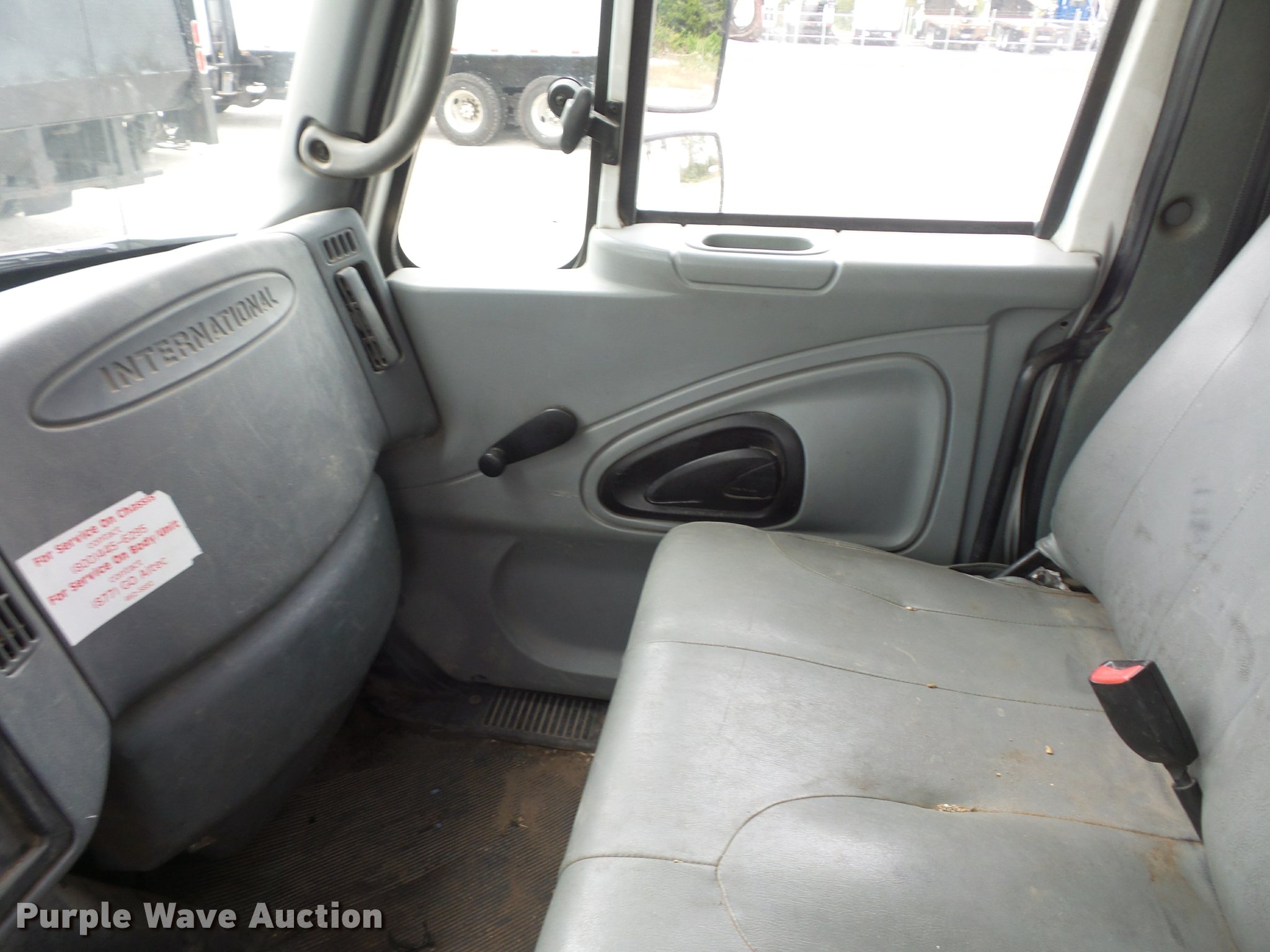 2005 International DuraStar 4300 bucket truck. 124,556 miles on odometer, International DT466 7.6L L6 turbo diesel engine, Eaton Fuller six speed manual transmission, Single axle, AC and heat, Cruise, AM/FM, PTO, Altec DM47TR boom 37' boom length, 47' maximum lift height, Rope material handler, (4) outriggers, Serial 0604DV0586, Pintle hitch, Spring suspension, Air brakes, 11R22.5 tires, Fuel filter light is on, ABS light is on. Missouri title. Seller is a Missouri licensed motor vehicle dealer. Title will be assigned and distributed by the dealer. Please contact the seller for distribution questions. 1HTMMAAN05H692858. Interstate 49 Truck Center. 15211 S. I49. Grandview, MO 64030