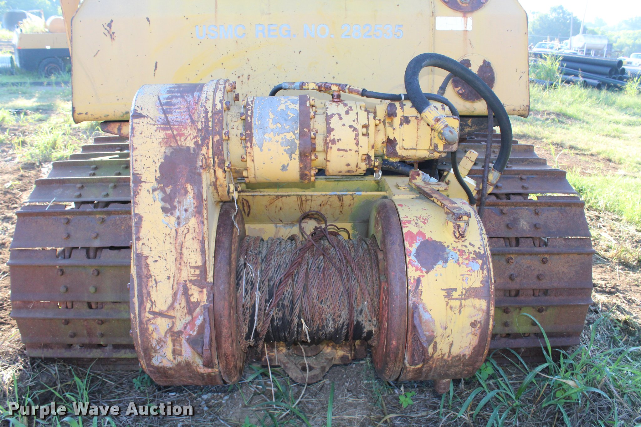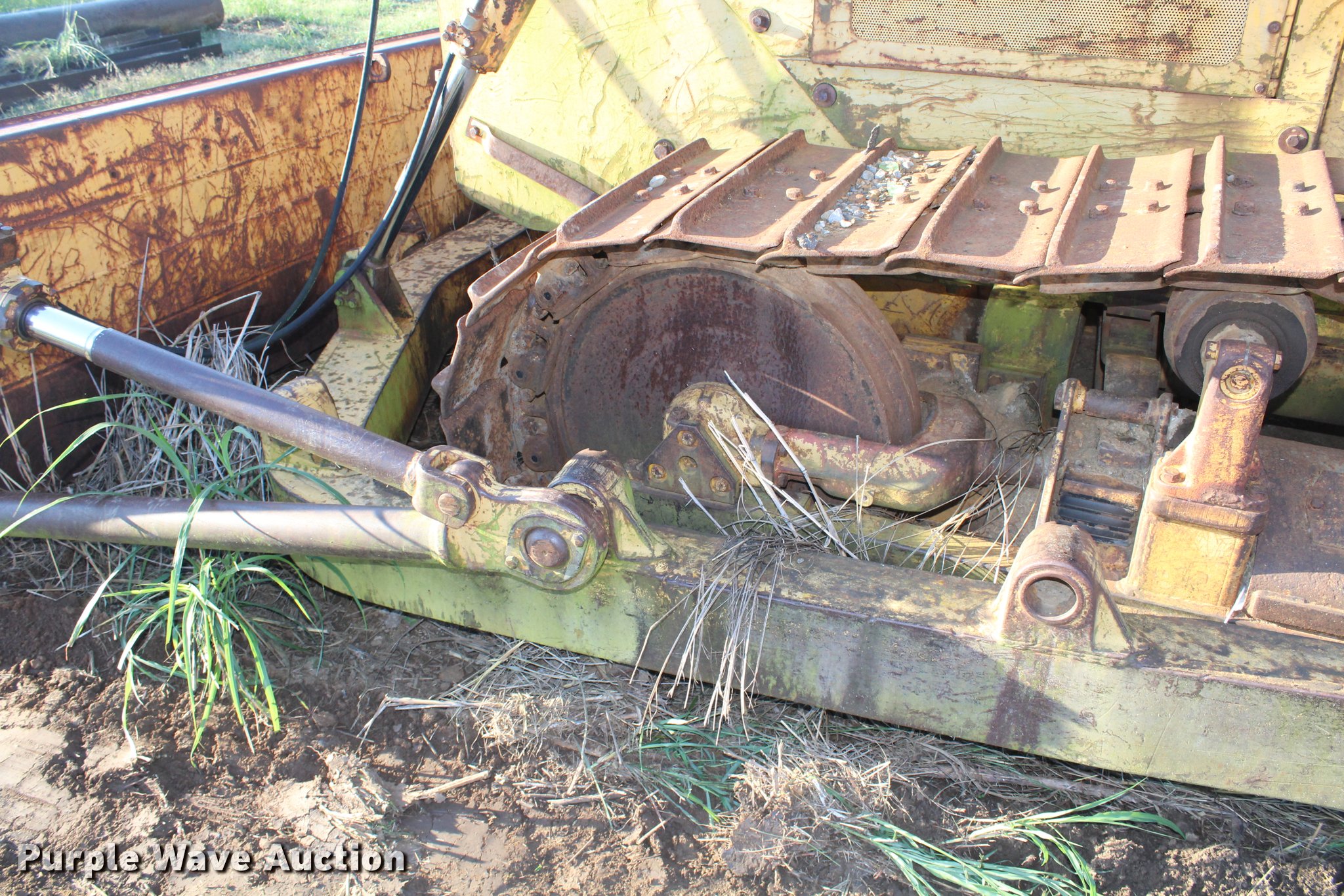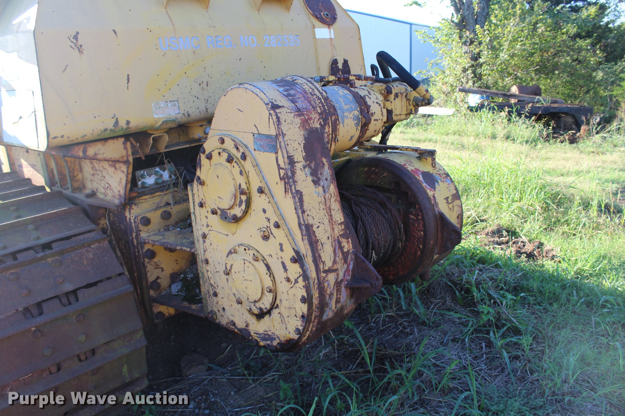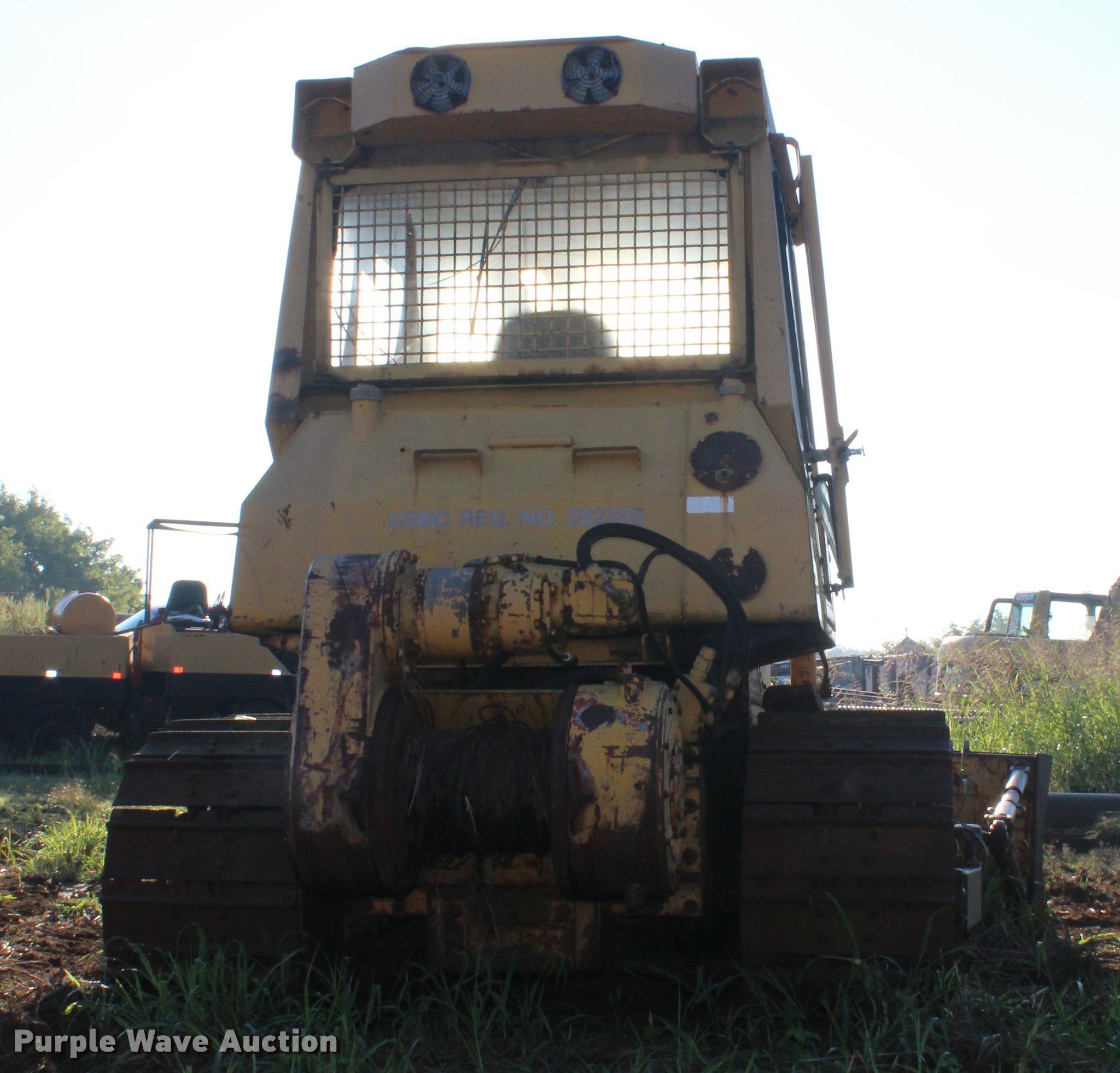 Purple Wave is selling a used Crawler Dozer in Oklahoma. This item is a 1987 Fiat-Allis 14C dozer with the following: 2,620 hours on meter, Six cylinder diesel engine, Three speed transmission, Clutch brake steering, Cab, AC and heat, Front and rear wipers, 12'W straight dozer blade, Boughton VH-55 winch, Six bottom rollers, 24"W single grouser track pads, Glass broken and missing, Unknown operating condition, Rust, Serial 052615, Unit# 323-0105