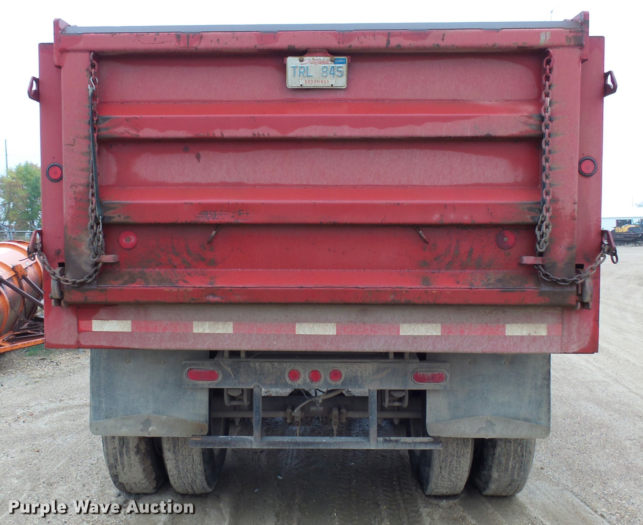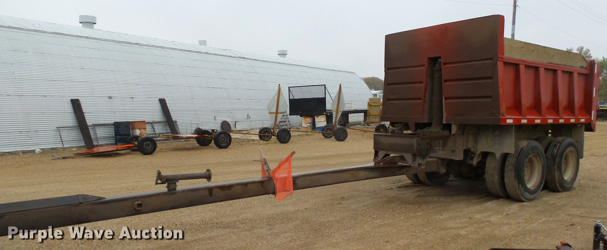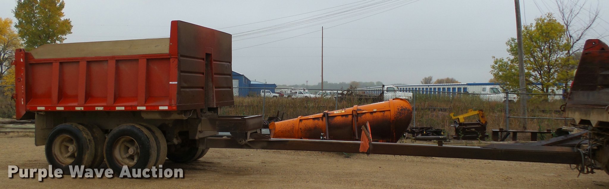 Purple Wave is selling a used End Dump Rock Trailer in South Dakota. This item is a 1989 Drake end dump pup trailer with the following: 12'L x 7'W, 3' side height, 12" side board height, 115"H overall, Single hydraulic cylinder, End gate, Poly liner, Trailer controls, Steel construction, Pintle hitch, Single leg landing gear, Spring suspension, Air brakes, Tandem axle, Steel wheels, Dunlop 11R22.5 tires, GVWR 8,600 lbs