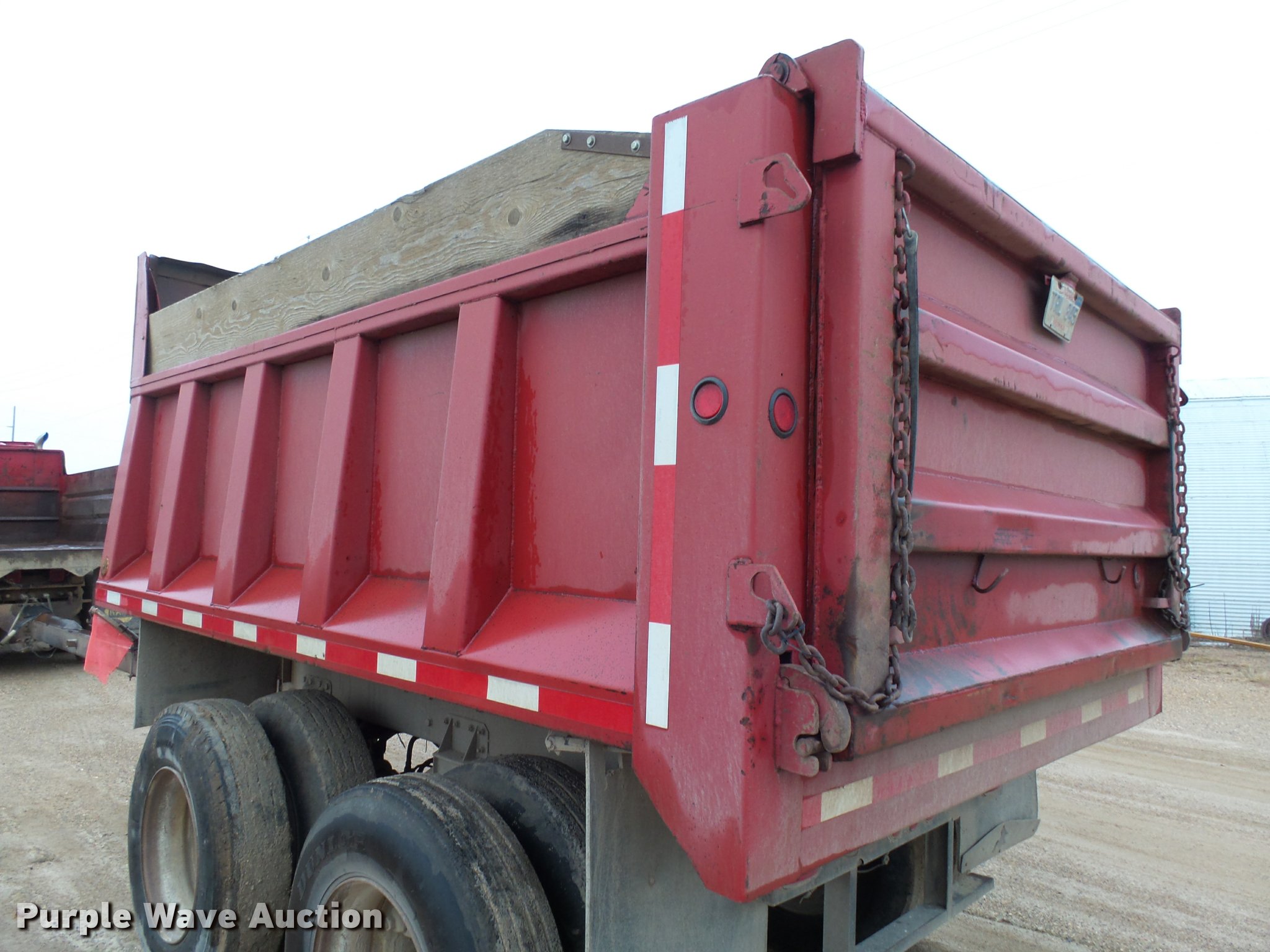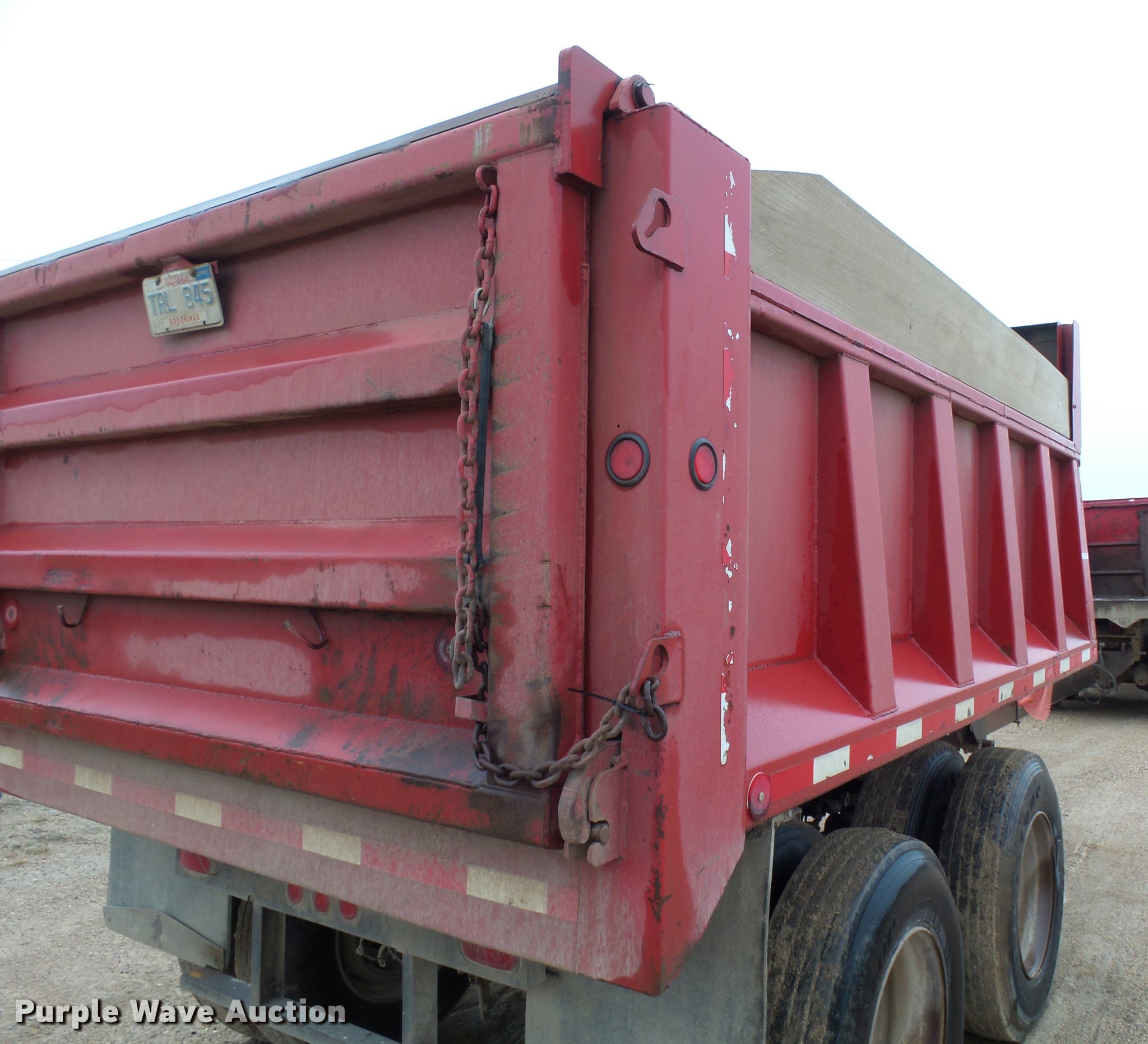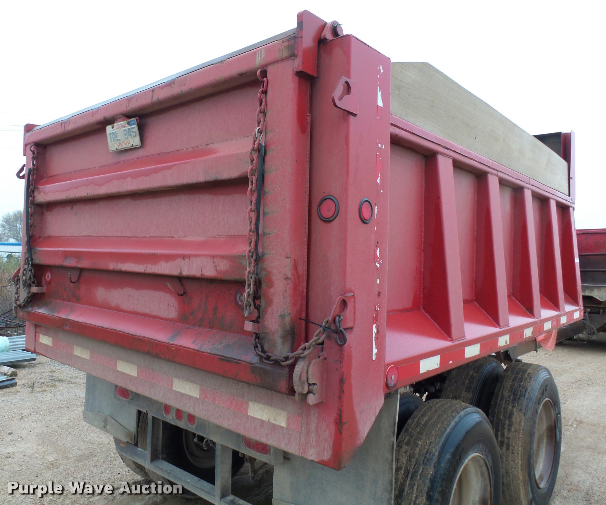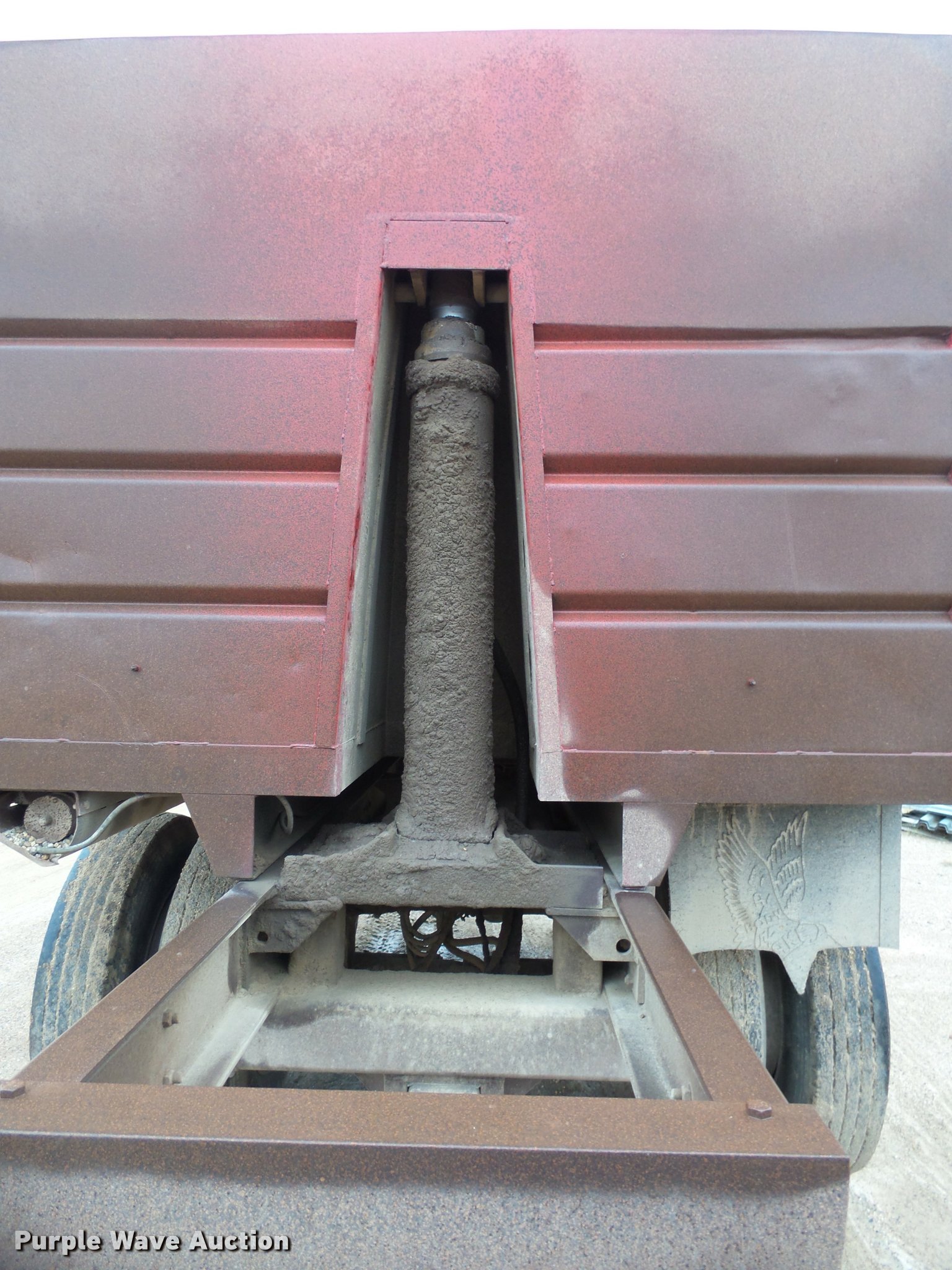 Purple Wave is selling a used End Dump Rock Trailer in South Dakota. This item is a 1989 Drake end dump pup trailer with the following: 12'L x 7'W, 3' side height, 12" side board height, 115"H overall, Single hydraulic cylinder, End gate, Poly liner, Trailer controls, Steel construction, Pintle hitch, Single leg landing gear, Spring suspension, Air brakes, Tandem axle, Steel wheels, Dunlop 11R22.5 tires, GVWR 8,600 lbs