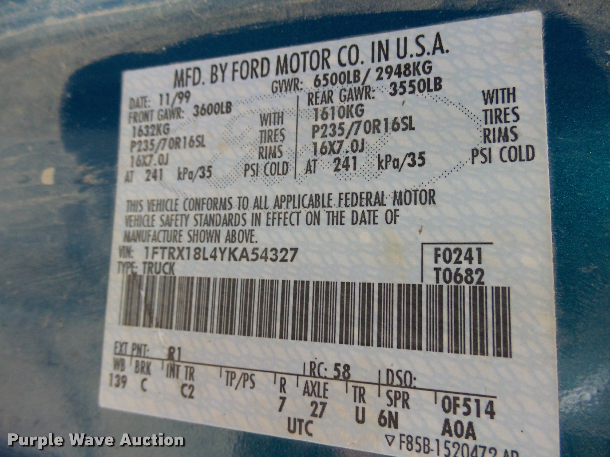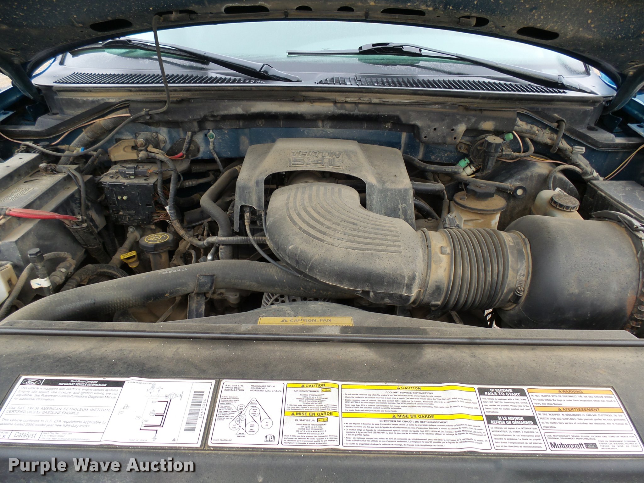 Purple Wave is selling a used 1/2 Ton Pickup or Van in South Dakota. This item is a 2000 Ford F150 SuperCab pickup truck with the following: 124,925 miles on odometer, 5.4L V8 SOHC 16V gas engine, Automatic transmission, Four wheel drive, AC and heat, Tilt, Cruise, AM/FM, Manual windows and locks, Cloth interior, Running boards, Receiver hitch, LT245/75R16 tires, Engine leaks fluid, Battery may need to be replaced, will not charge