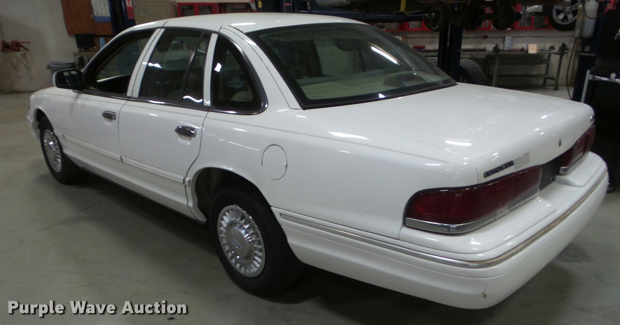Purple Wave is selling a used Passenger Vehicle in Kansas. This item is a 1996 Ford Crown Victoria Police Interceptor with the following: 183,269 miles on odometer, 4.6L V8 SOHC 16V gas engine, Automatic transmission, AC and heat, Tilt, Cruise, AM/FM/CD, Power windows, locks, and mirrors, Cloth interior, 225/70R15 tires