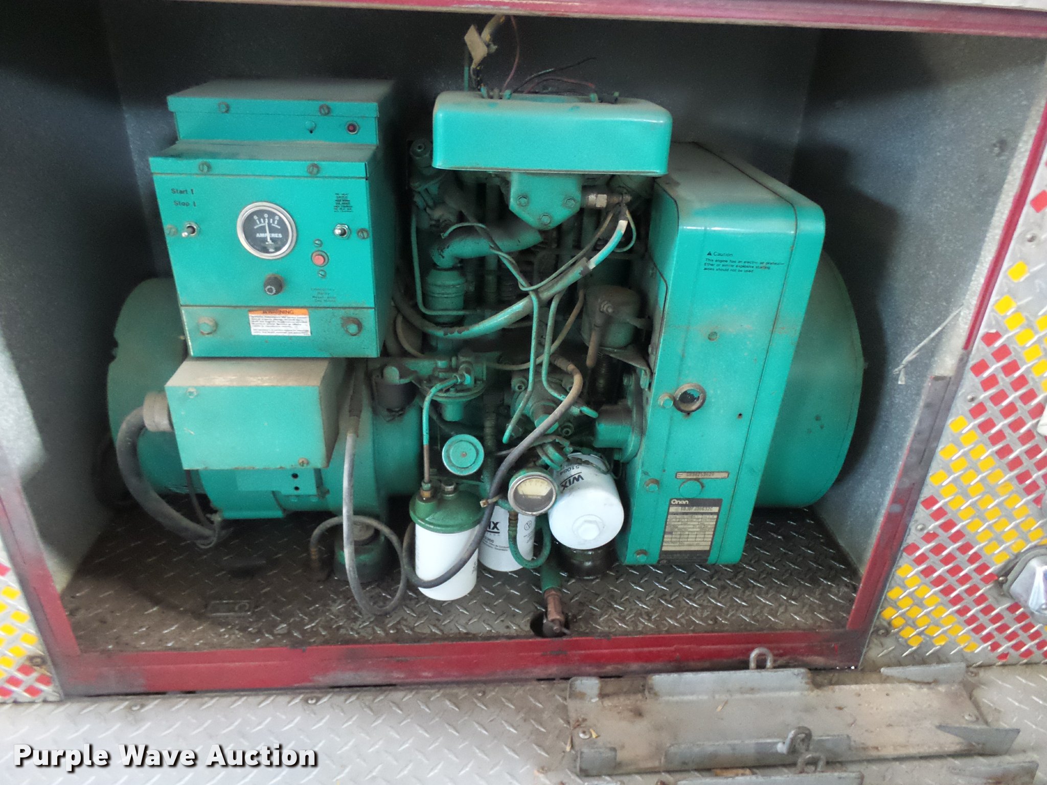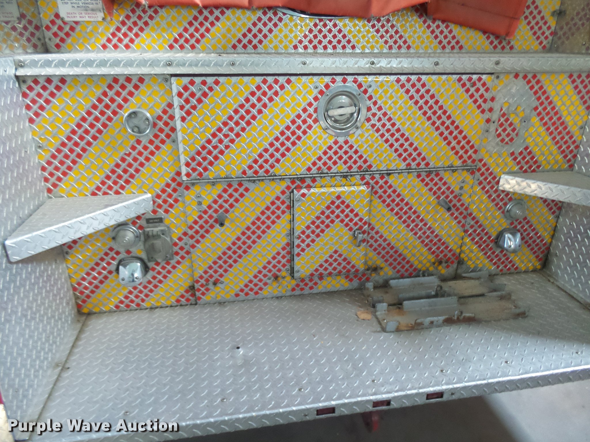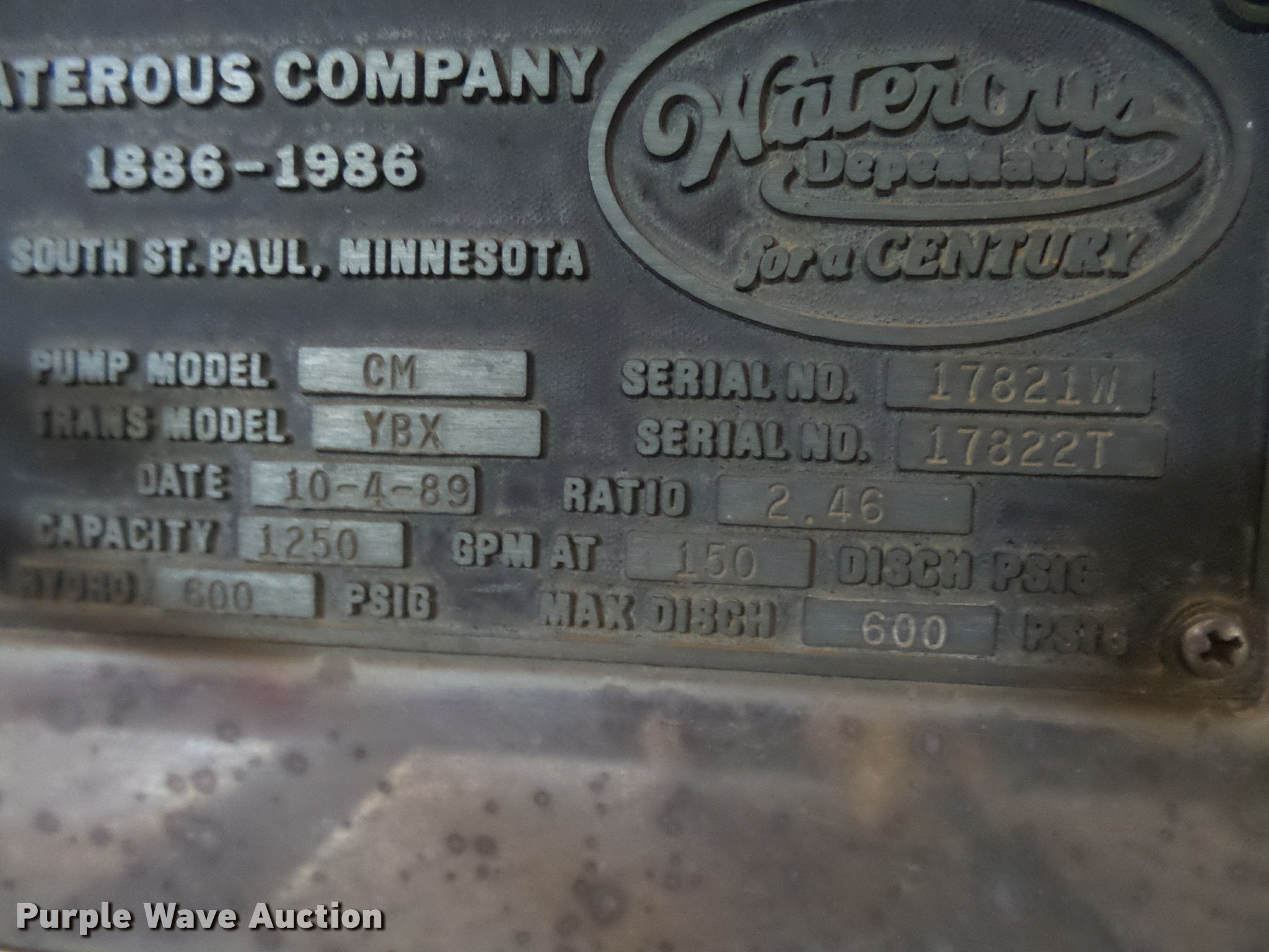 Purple Wave is selling a used Fire Truck or Emergency Vehicle in Kansas. This item is a 1990 Mack Pierce fire truck with the following: 3,909 miles on odometer, 2,938 hours on meter, Mack E6 11.0L L6 diesel engine, Automatic transmission, Manual windows and locks, Waterous pump, Model CM, 1,250 gpm, 600 max psi, Onan generator, Model 6DJBFJ30632C, 120/240V, Single phase, 6 kW, 11.00R20 tires