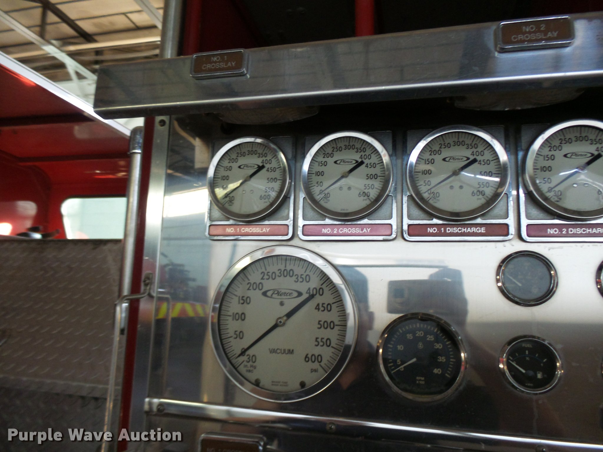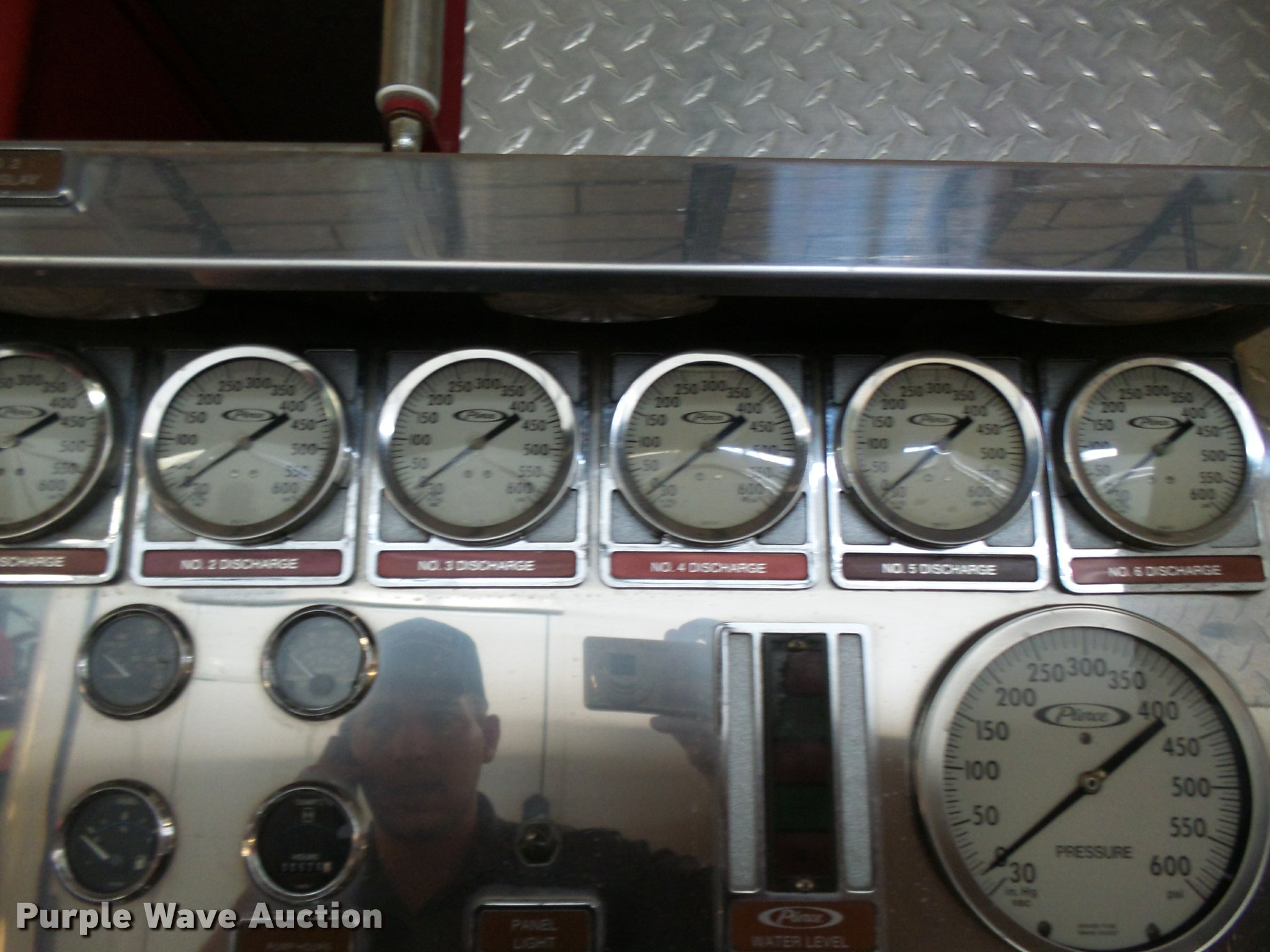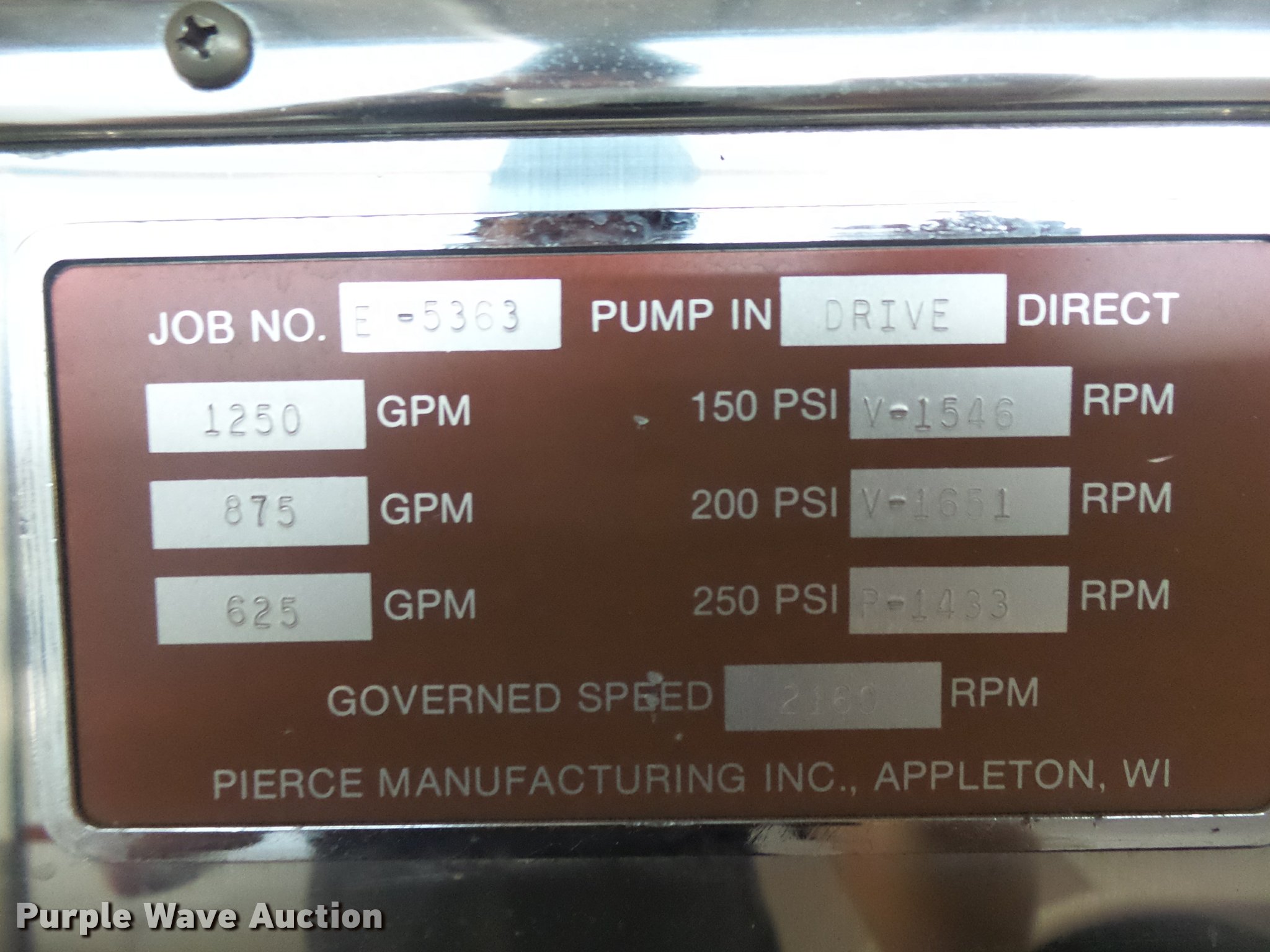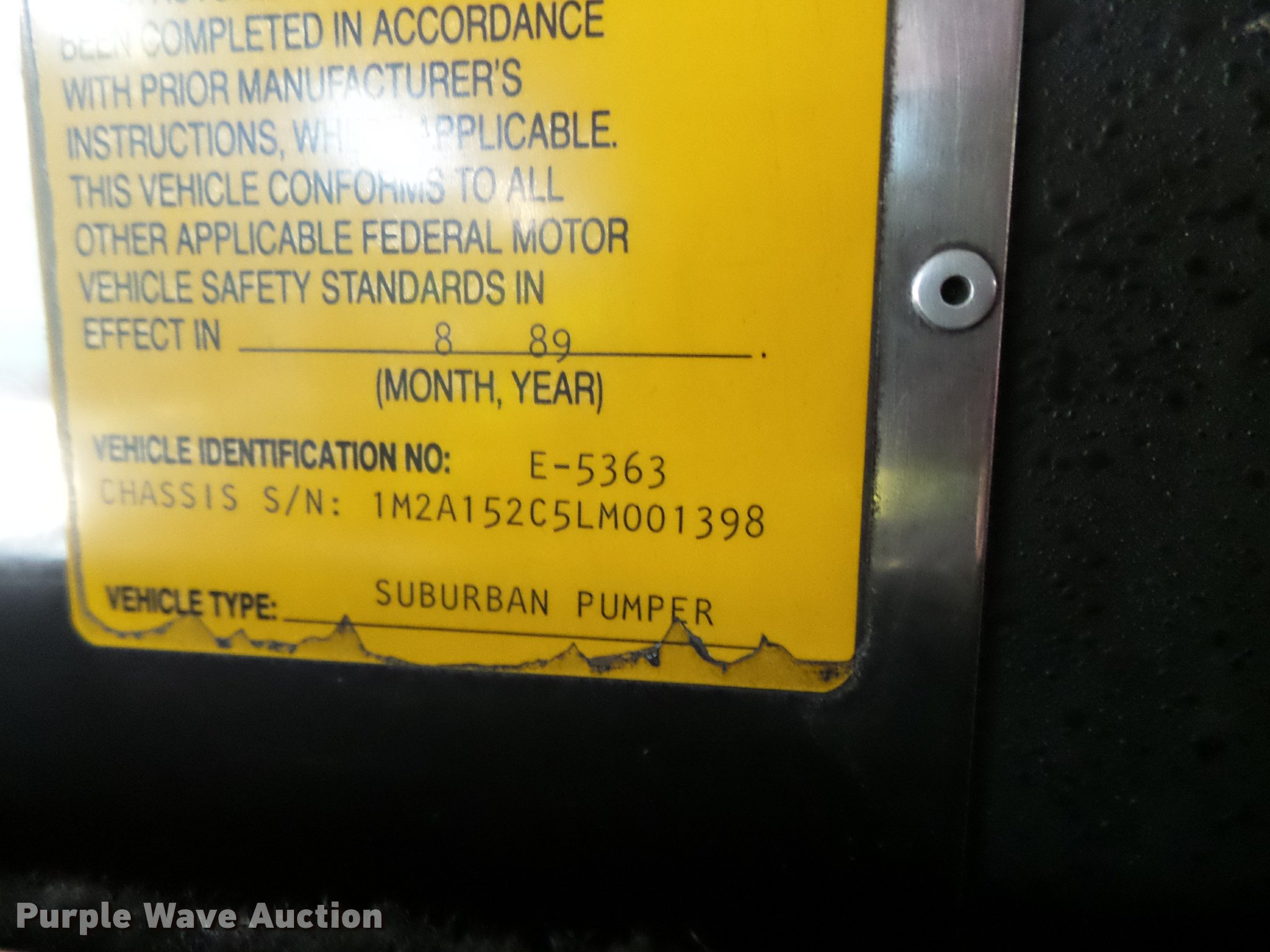 Purple Wave is selling a used Fire Truck or Emergency Vehicle in Kansas. This item is a 1990 Mack Pierce fire truck with the following: 3,909 miles on odometer, 2,938 hours on meter, Mack E6 11.0L L6 diesel engine, Automatic transmission, Manual windows and locks, Waterous pump, Model CM, 1,250 gpm, 600 max psi, Onan generator, Model 6DJBFJ30632C, 120/240V, Single phase, 6 kW, 11.00R20 tires