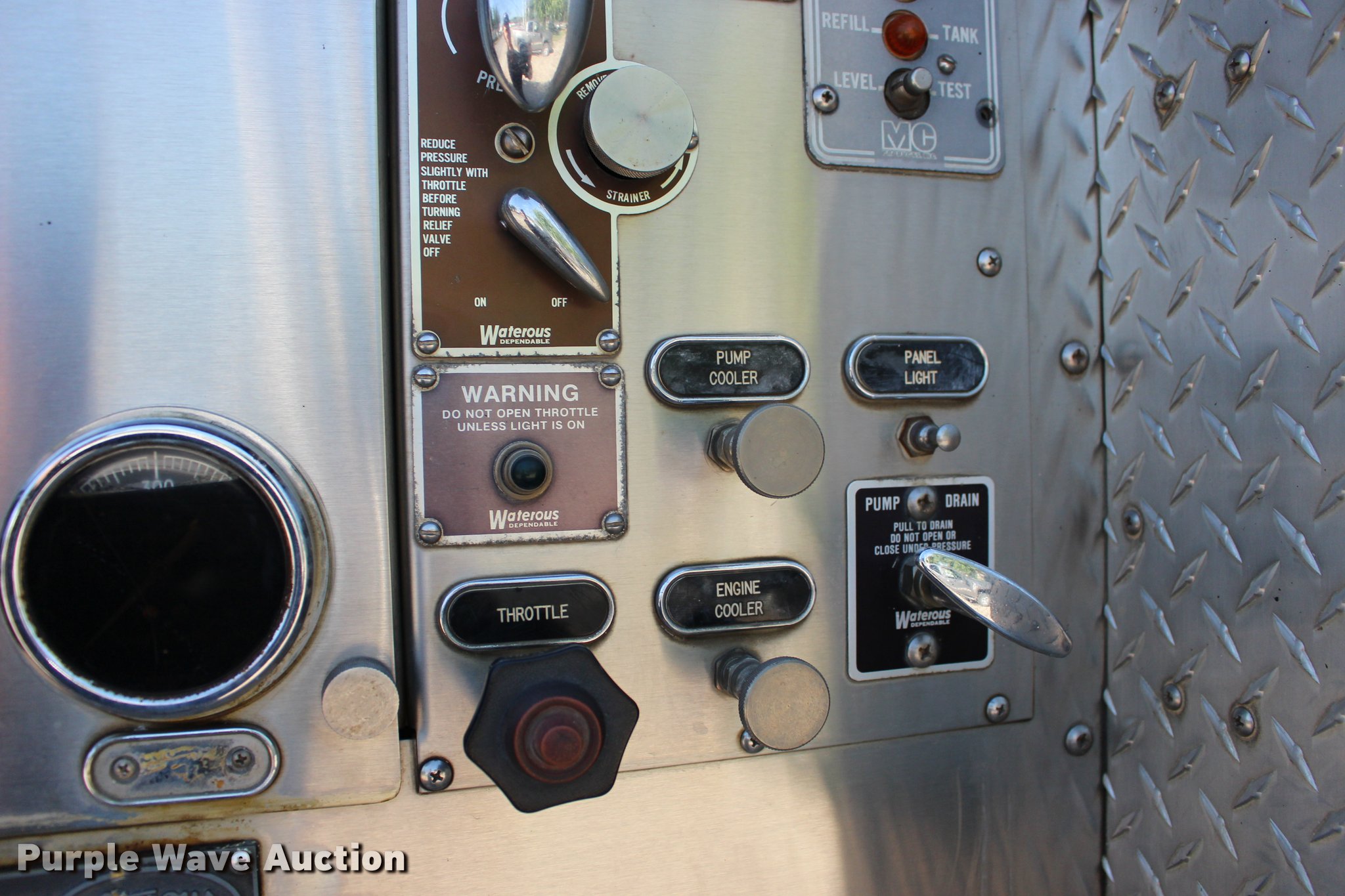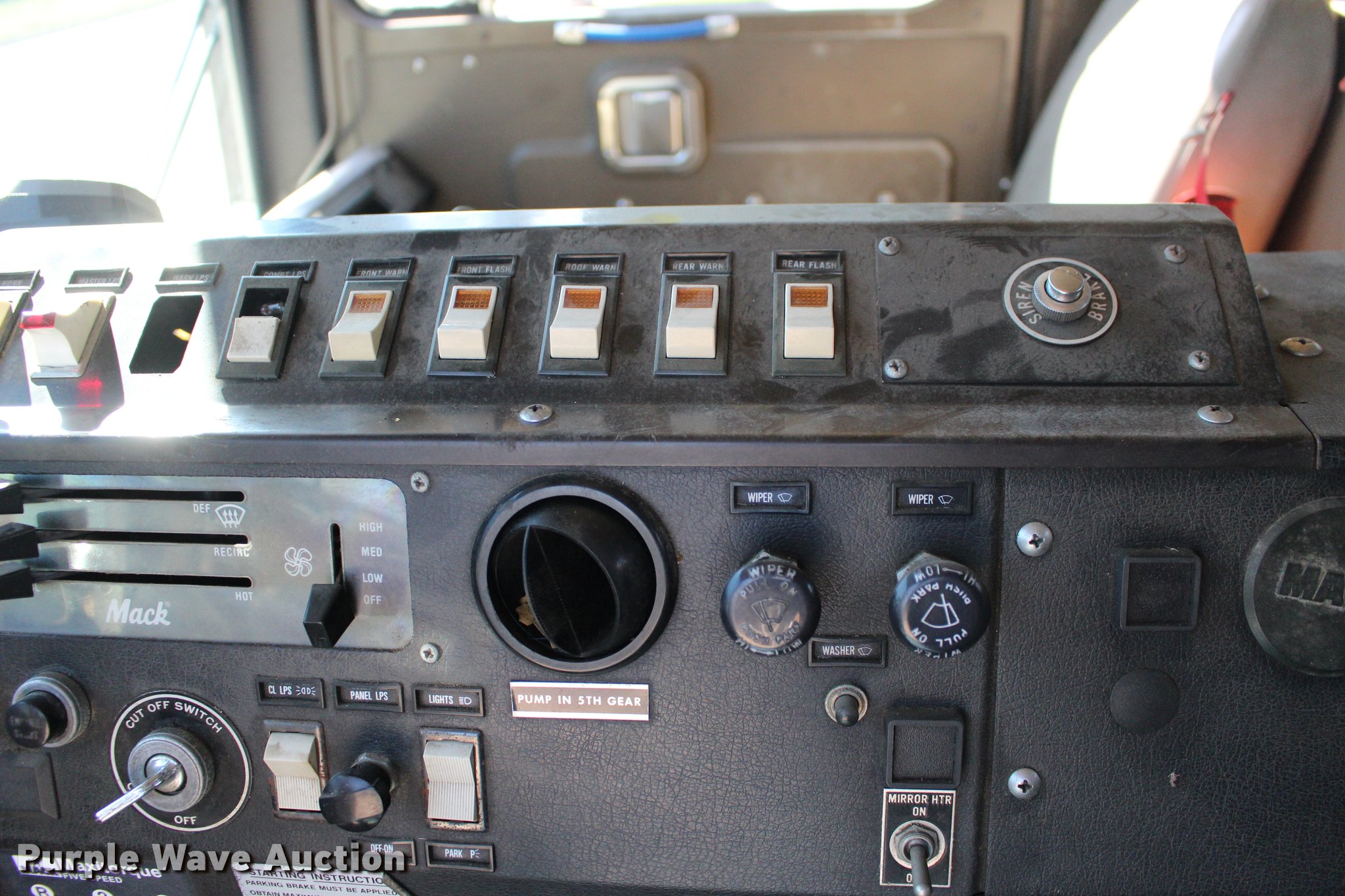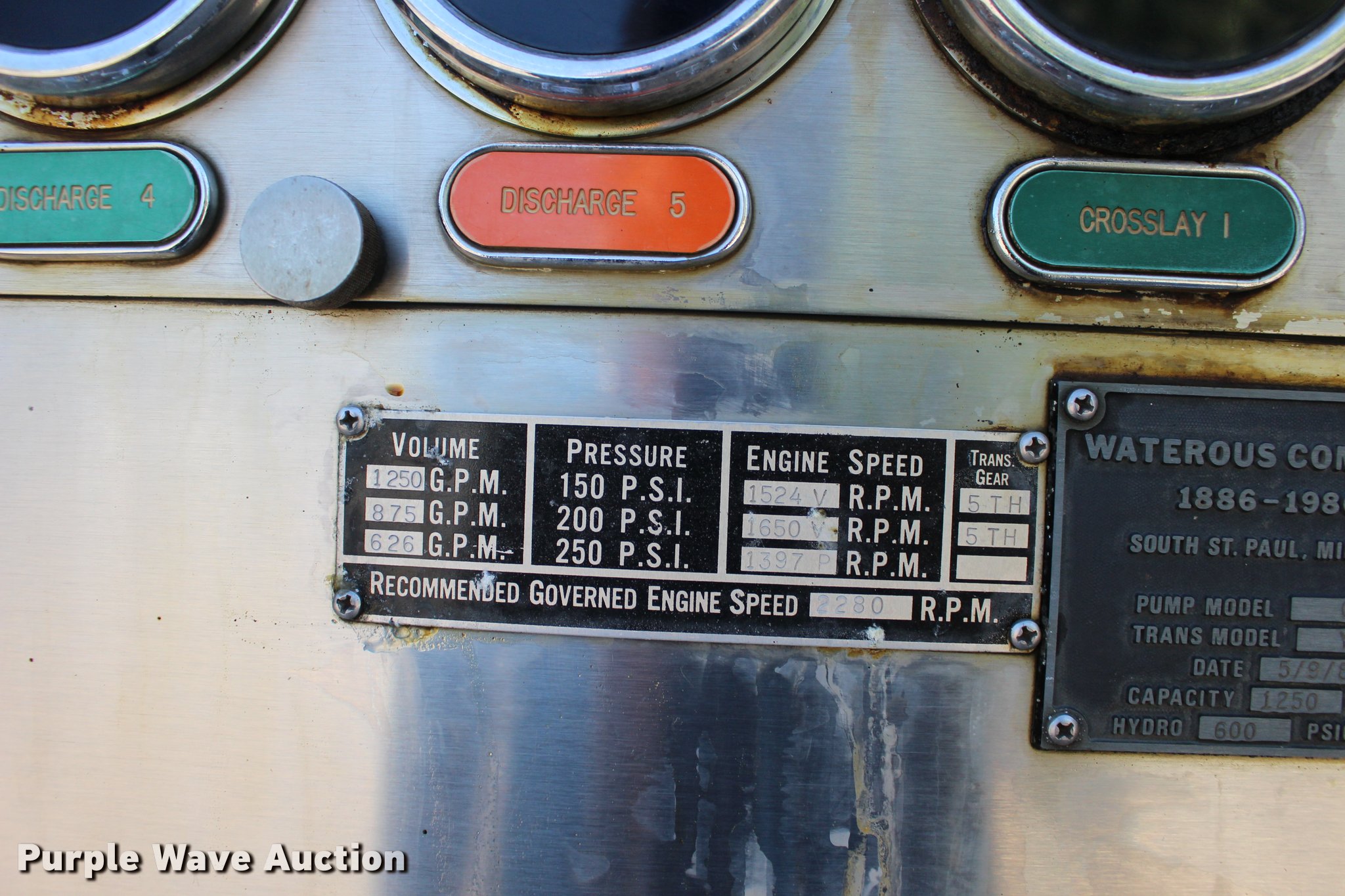 Purple Wave is selling a used Fire Truck or Emergency Vehicle in Kansas. This item is a 1987 Mack FC600 Firecat fire engine with the following: 4,310 miles on odometer, Mack E6 11.0L L6 diesel engine, Maxitorque five speed manual transmission, Manual windows and locks, Waterous pump, Model CM, 2:73 ratio, 1,250 gpm, 600 max psi, Dynamic power inverter, Air brakes, 11.00R20 tires, Dead battery