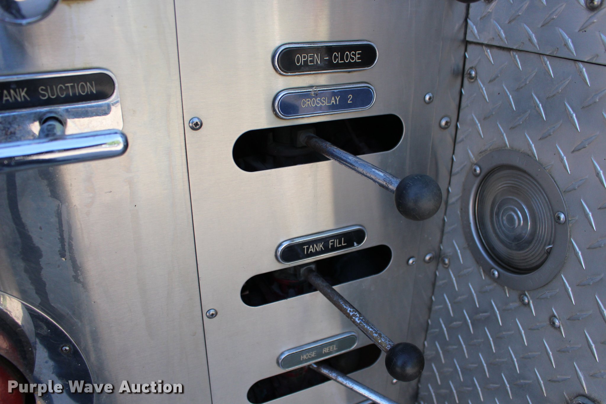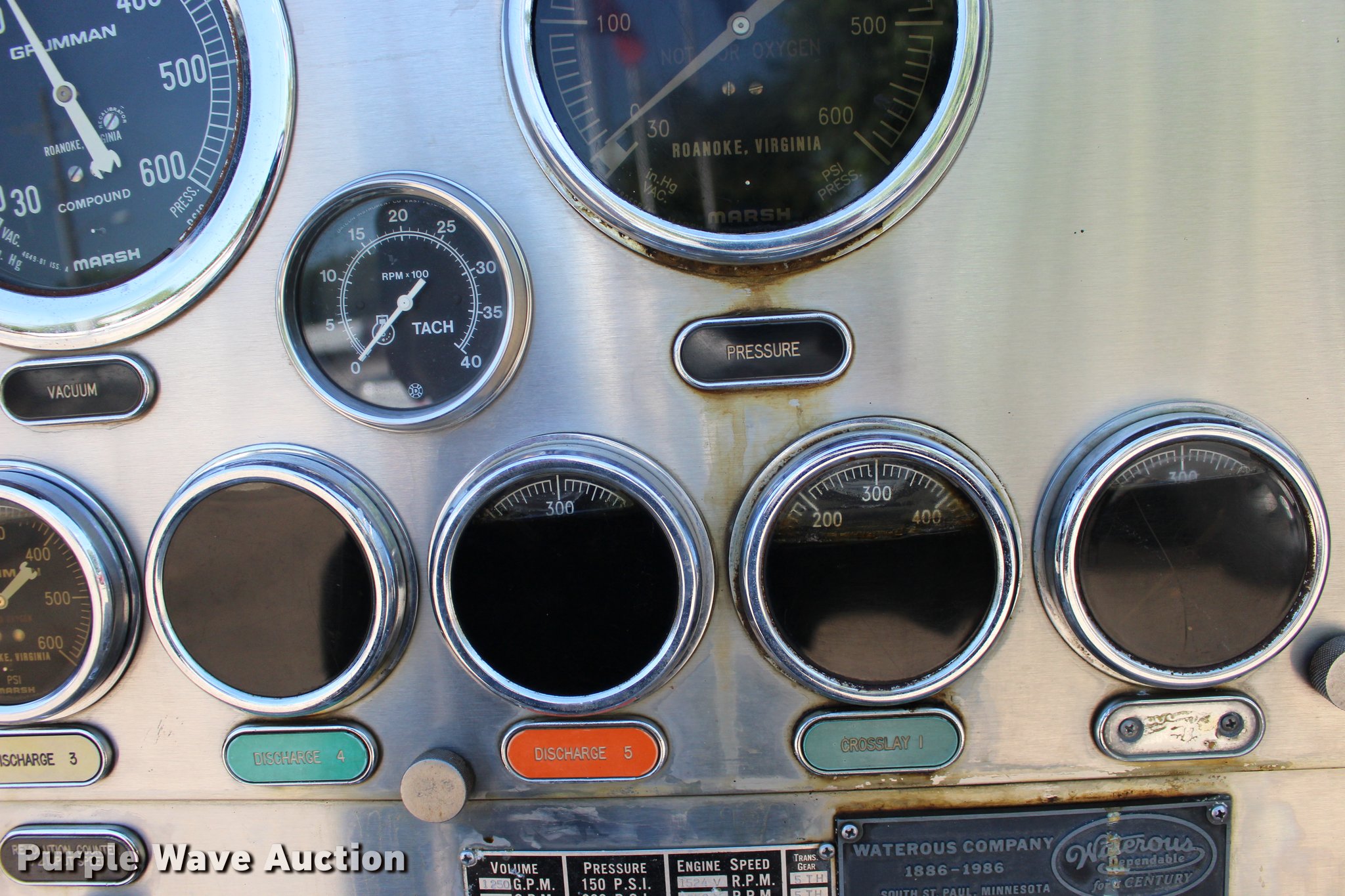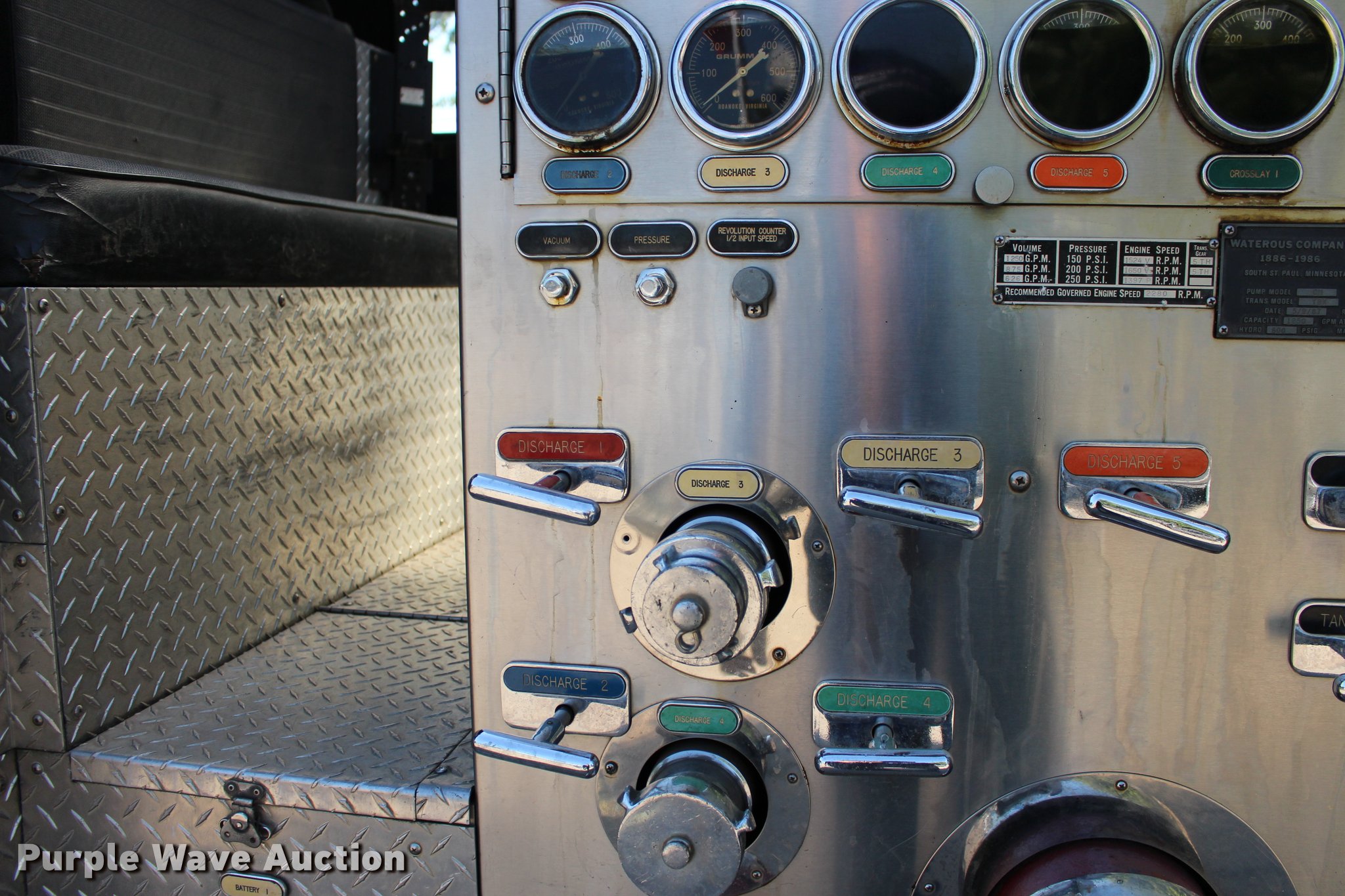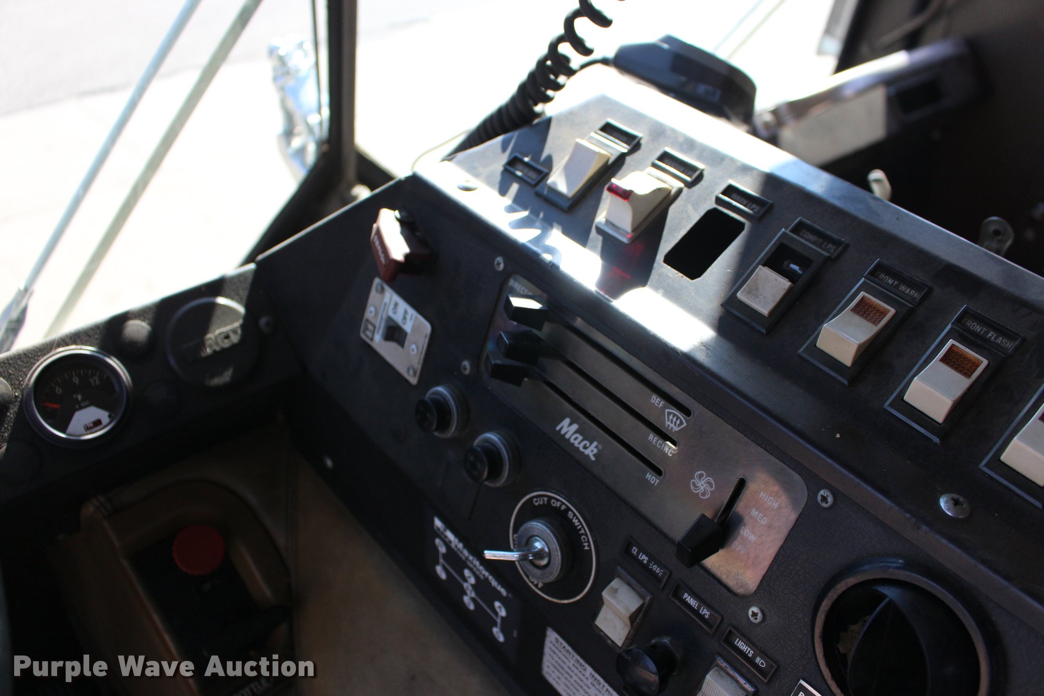 Purple Wave is selling a used Fire Truck or Emergency Vehicle in Kansas. This item is a 1987 Mack FC600 Firecat fire engine with the following: 4,310 miles on odometer, Mack E6 11.0L L6 diesel engine, Maxitorque five speed manual transmission, Manual windows and locks, Waterous pump, Model CM, 2:73 ratio, 1,250 gpm, 600 max psi, Dynamic power inverter, Air brakes, 11.00R20 tires, Dead battery