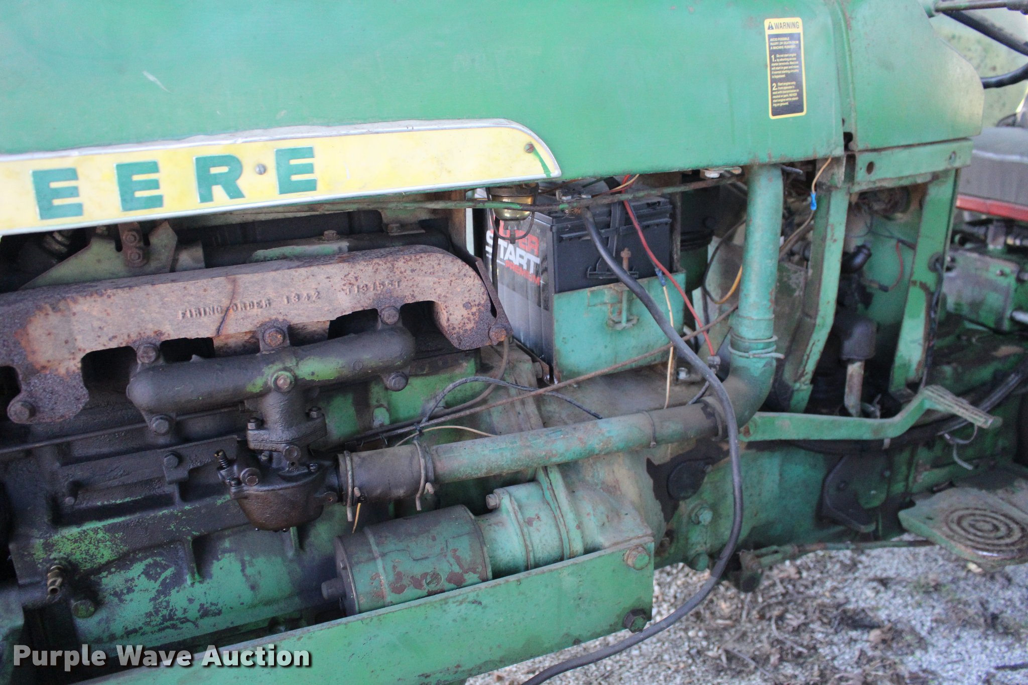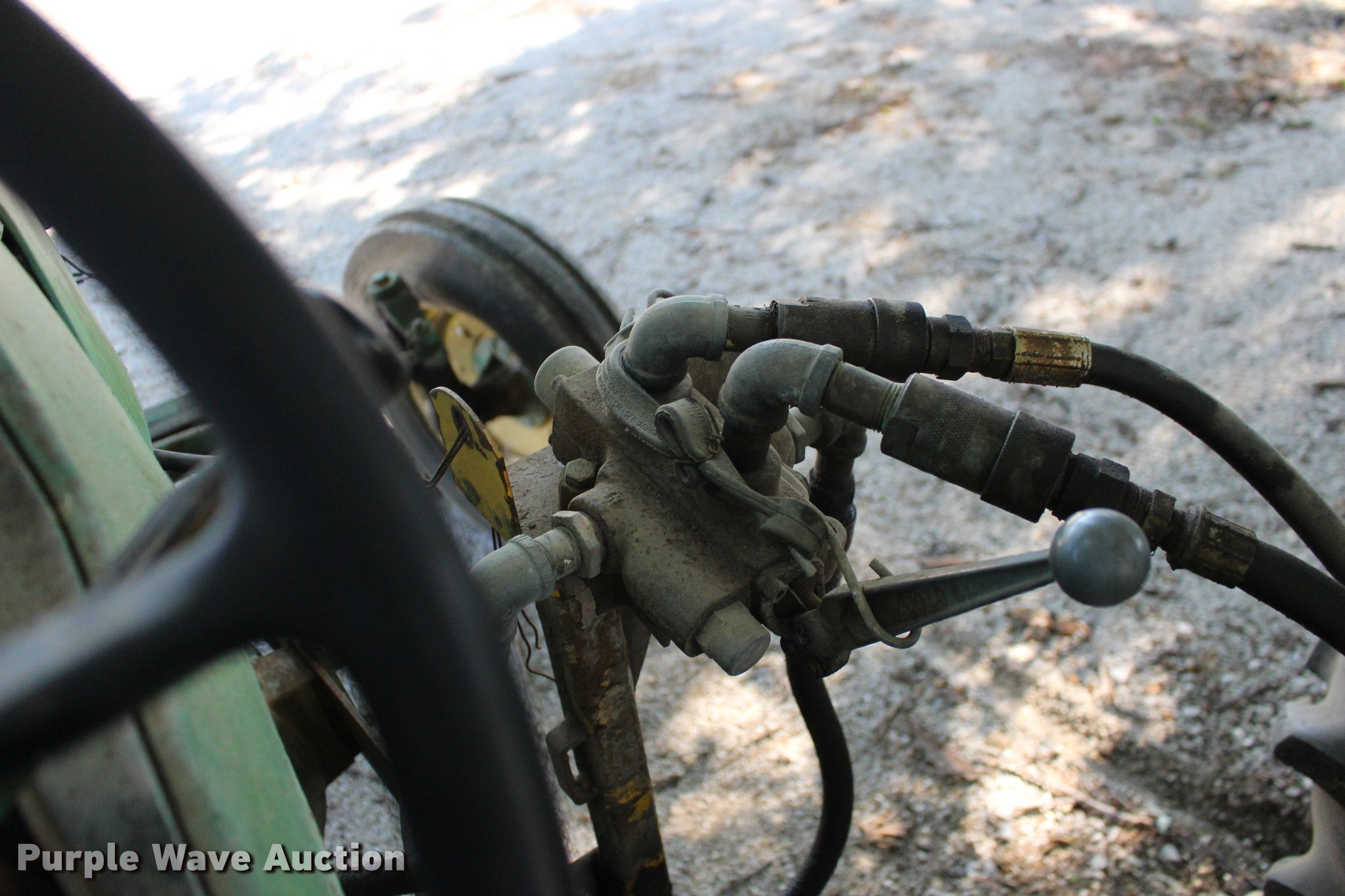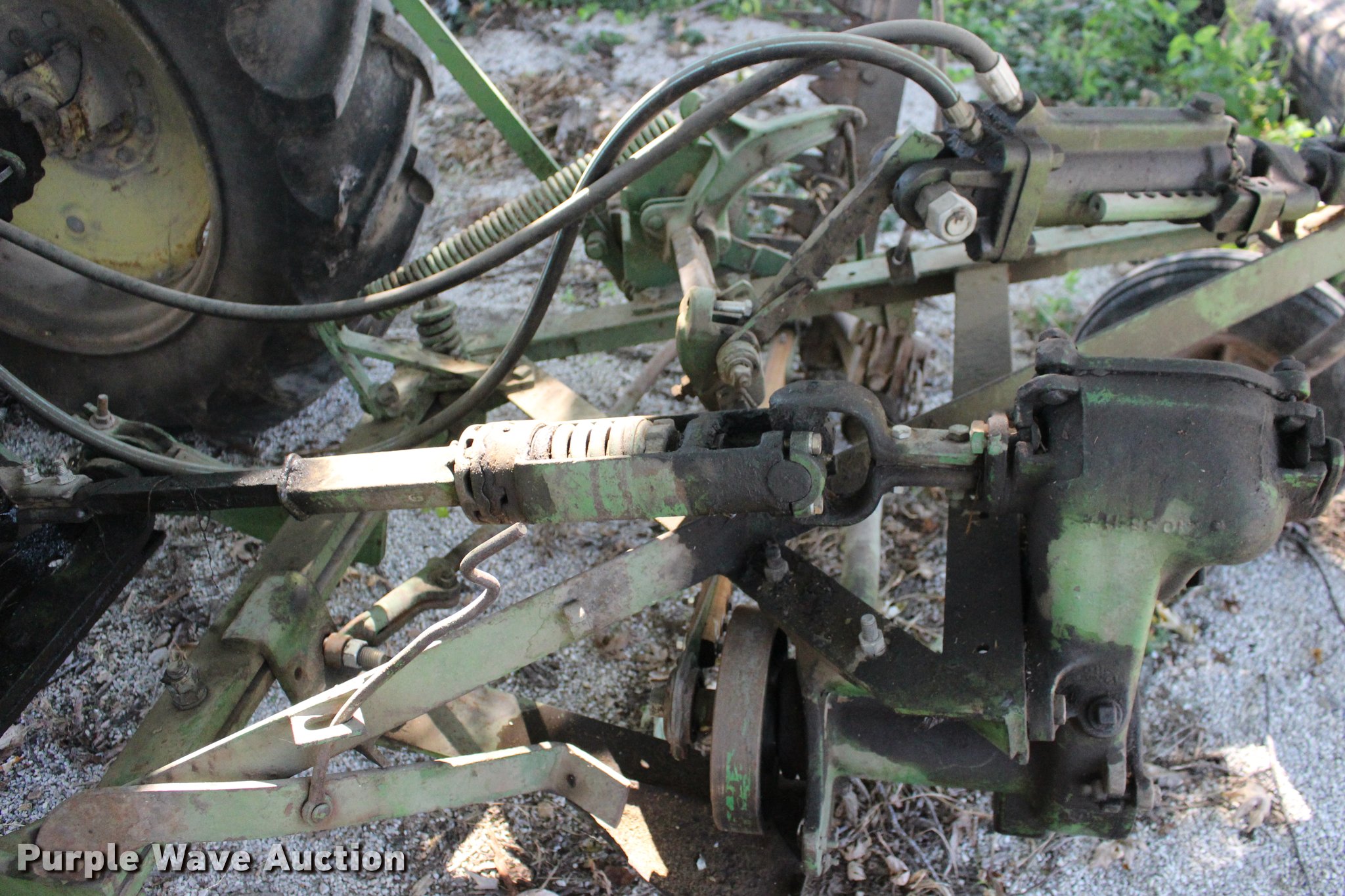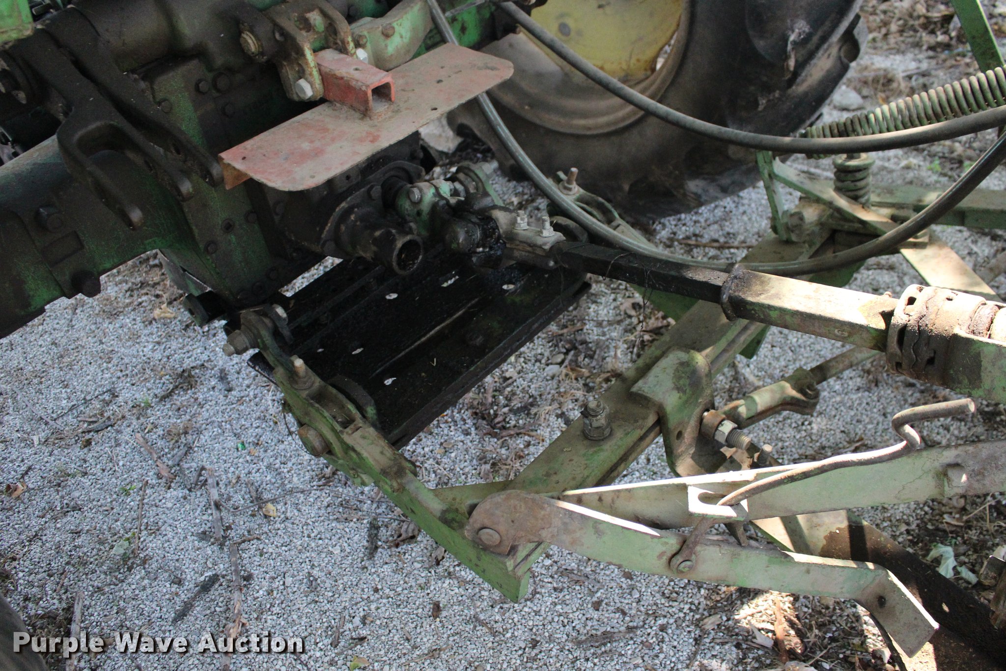 Purple Wave is selling a used Tractor in Kansas. This item is a John Deere 1010 tractor with the following: 2,794 hours on meter, Four cylinder gas engine, Four speed manual transmission, Sickle mower, 540 PTO, 6.00-16 front tires, 13.6-28 rear tires, Rear lift arms leak down, Serial 1010RU17124