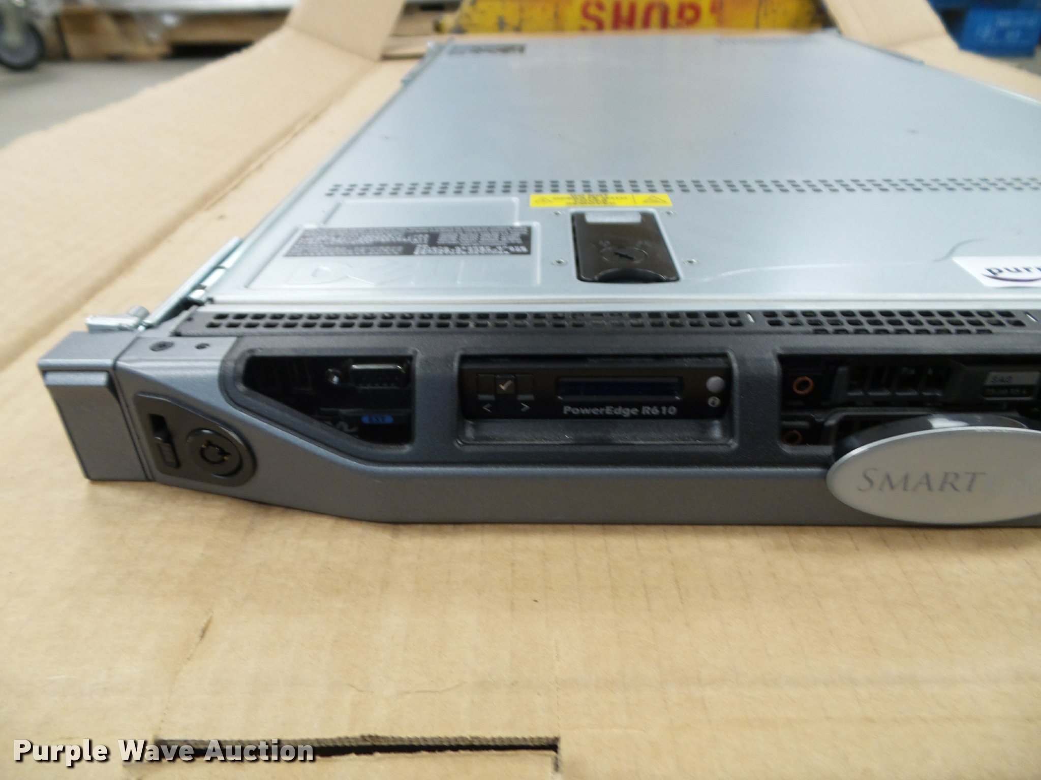 Purple Wave is selling a used Electronics in Kansas. This item is a Dell PowerEdge R610 server with the following: Intel 2.4 GHz processor, 3 GB memory, (2) 73 GB 15k hard drives, Dual power supplies, Rack rails