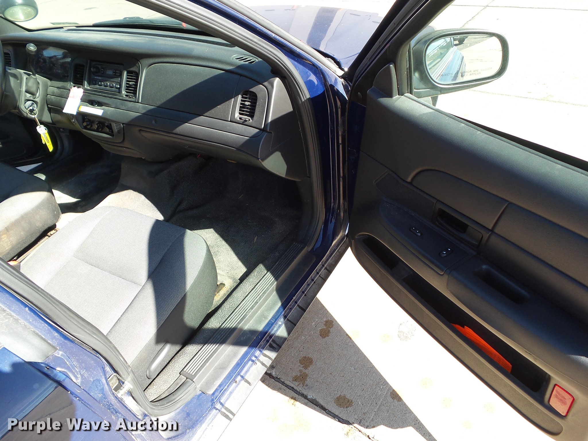 Purple Wave is selling a used Passenger Vehicle in Iowa. This item is a 2006 Ford Crown Victoria Police Interceptor with the following: Approx. 75,034 miles, 4.6L V8 SOHC 16V gas engine, Automatic transmission, AC and heat, Tilt, AM/FM, Power windows, locks, mirrors, and seat, Cloth interior, 235/55R17 tires, Dash light inoperable