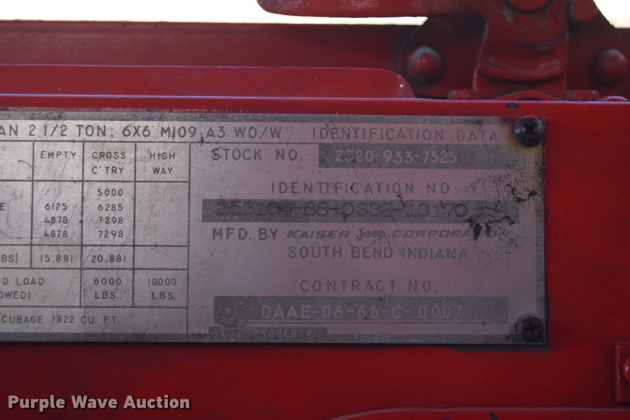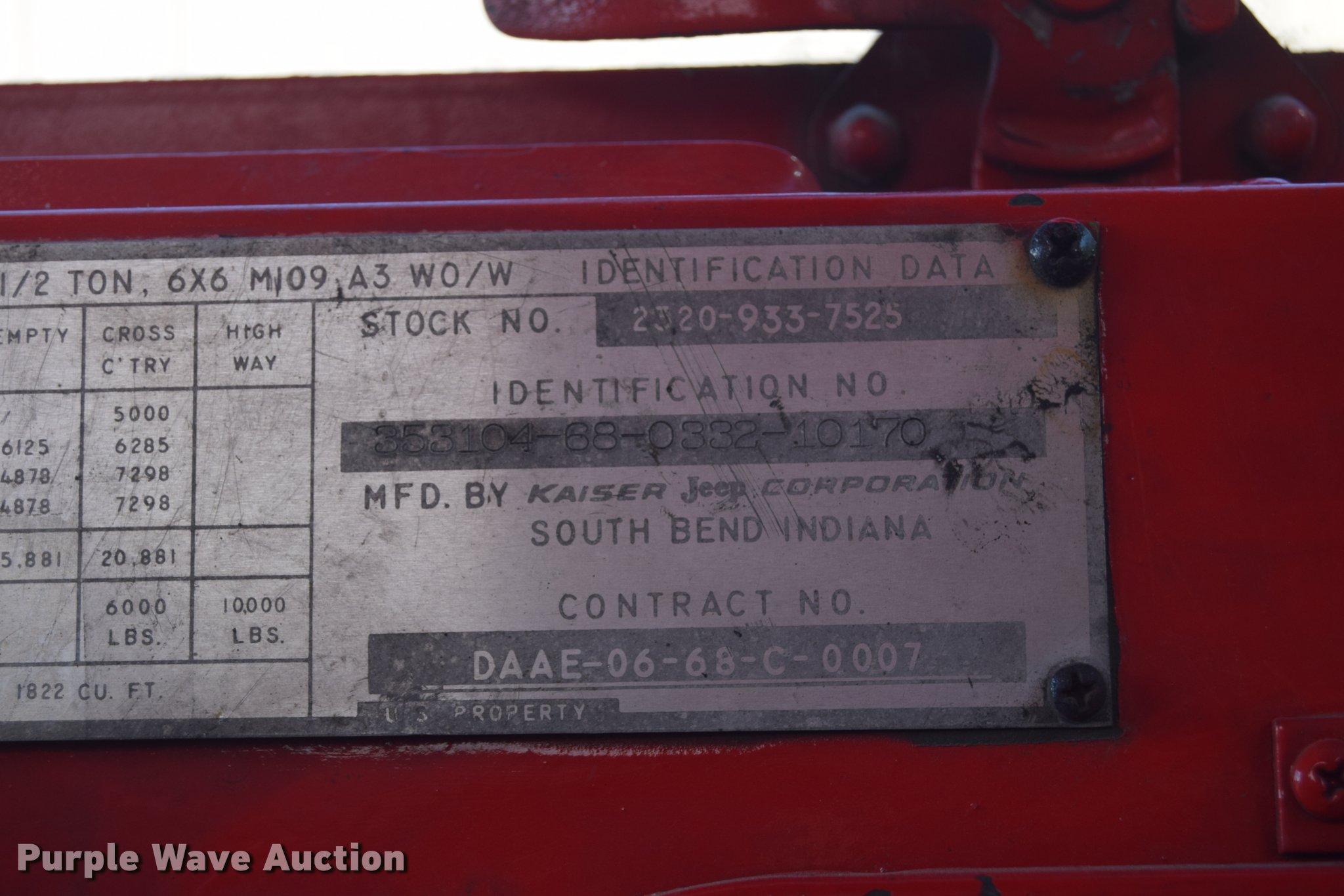 Take a look at this used 1968 Kaiser Jeep M35 flatbed truck being sold on November 1st, 2016 in the SOLD! November 1 Government Auction made by Kaiser Jeep. Take a look at all of the item information below or take a look at similar auctions for Trucks.