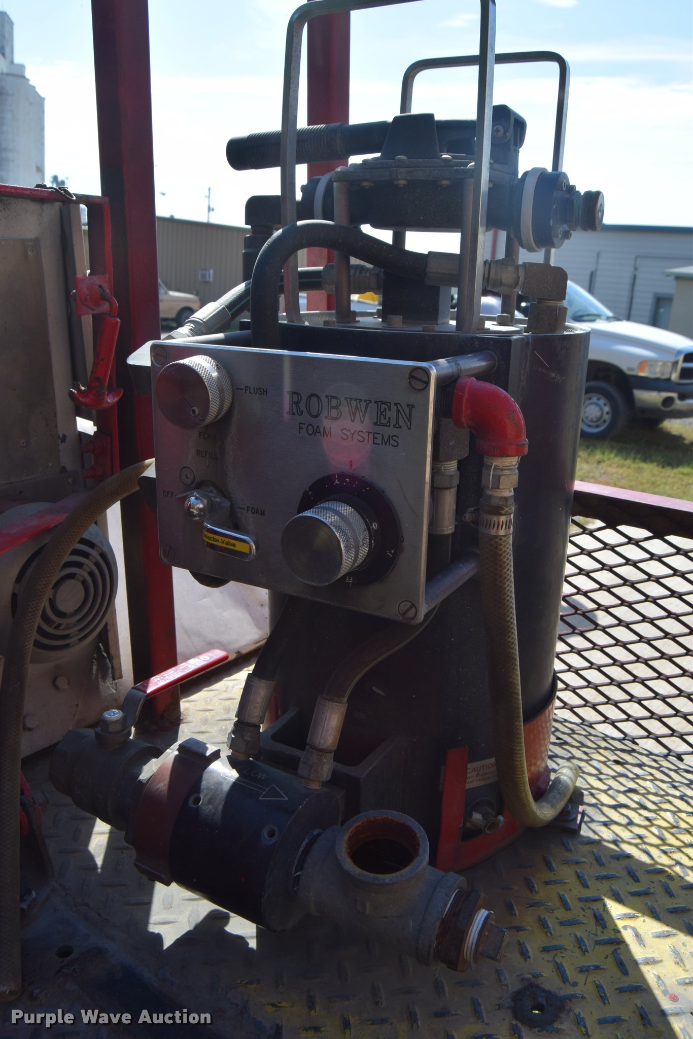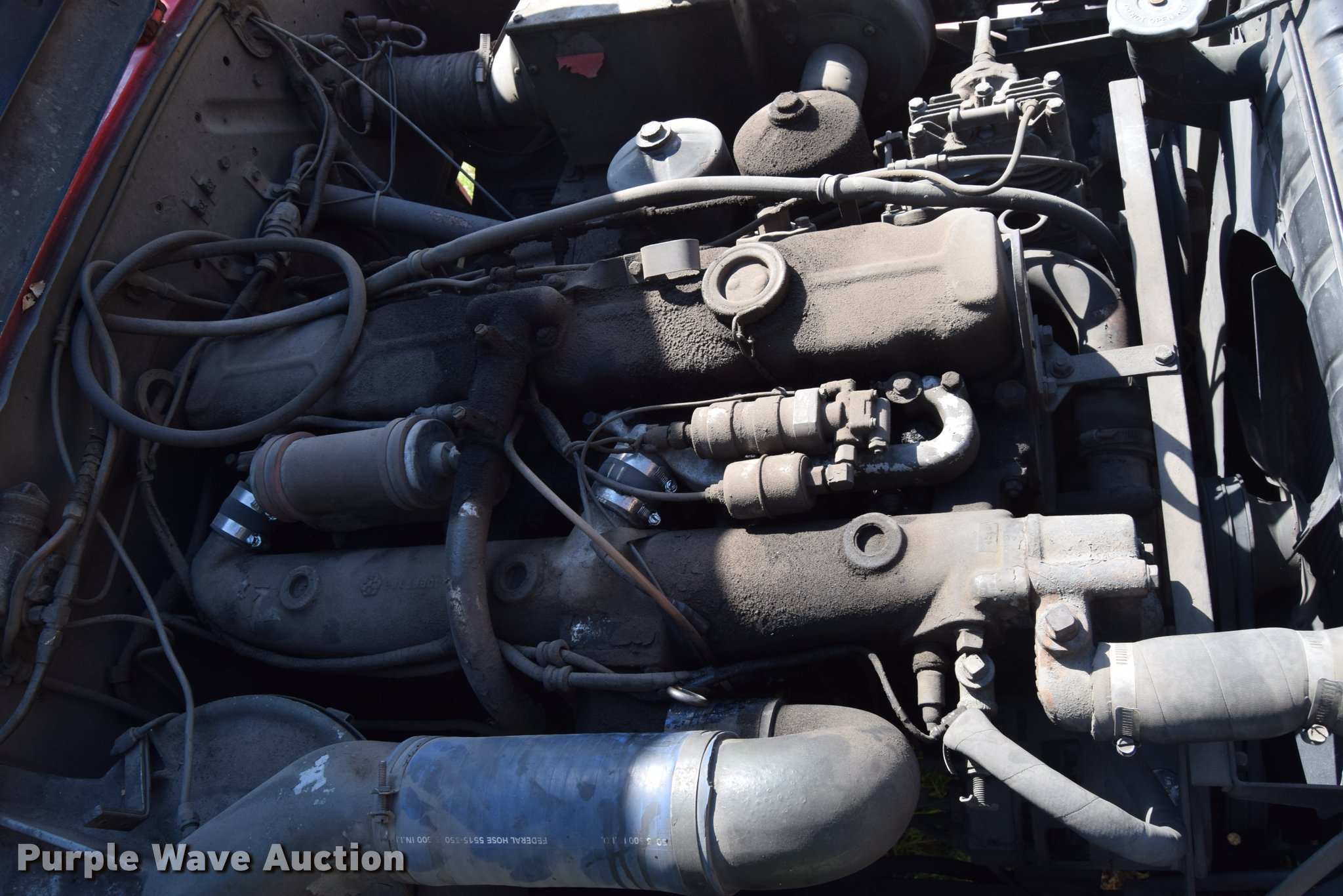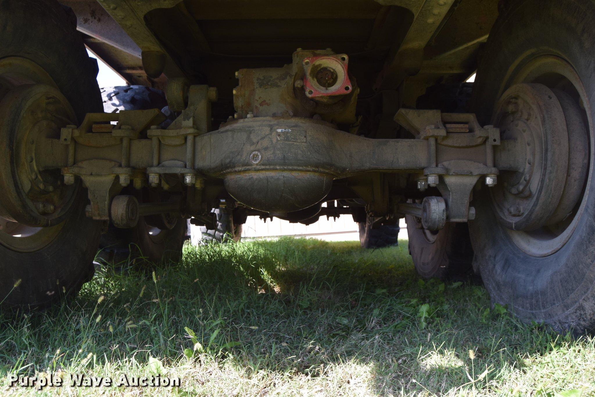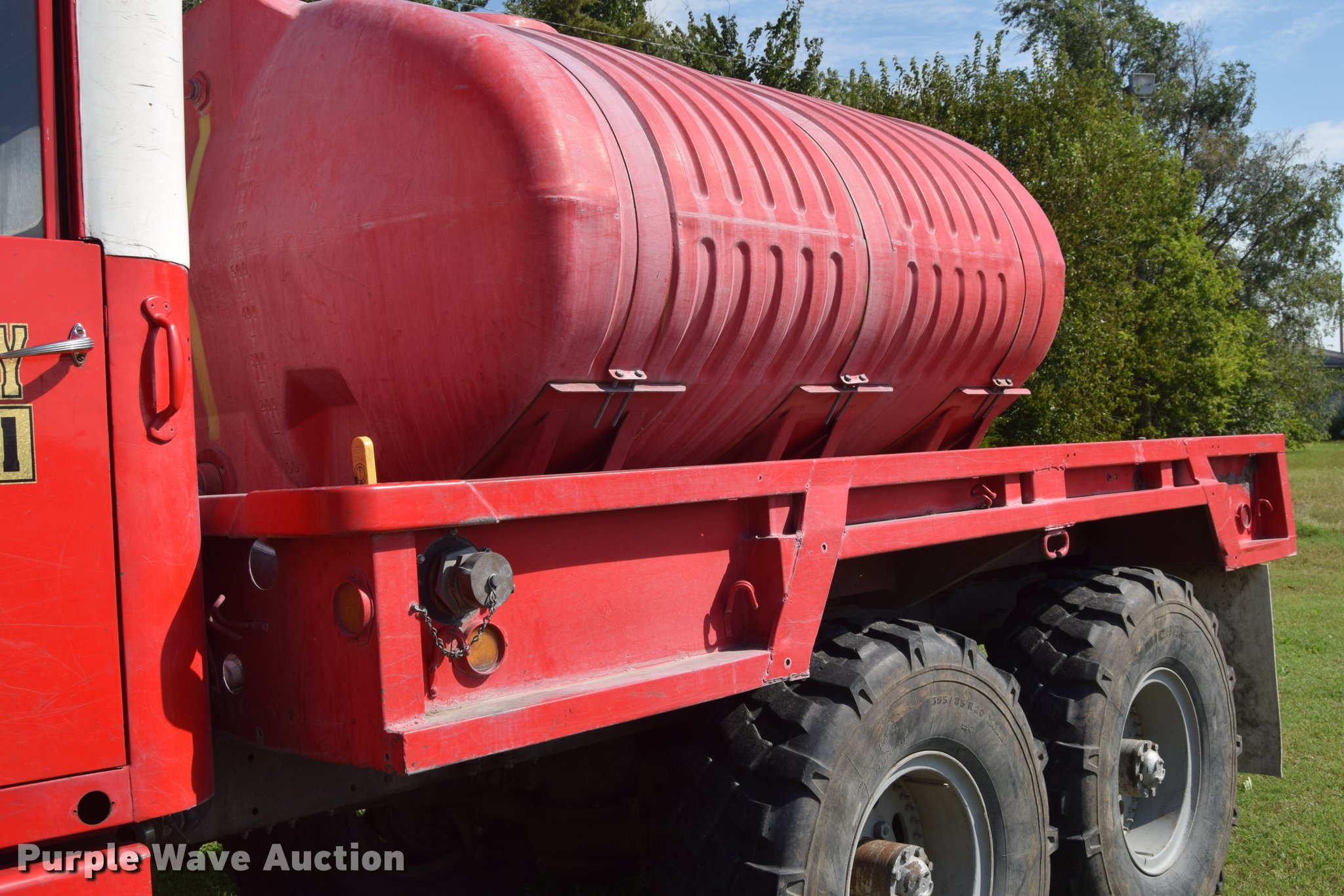 Purple Wave is selling a used Flat Bed Truck in Kansas. This item is a 1968 Kaiser Jeep M35 flatbed truck with the following: 7,177 miles on odometer, 1,119 hours on meter, Six cylinder multi-fuel engine, Five speed manual transmission, Two speed rear end, Six wheel drive, Lights, 147"L x 7'W bed, 1,000 gallon poly tank, Foam inducer, 5,000 lbs max payload capacity, 50 gallon fuel tank, Spring suspesion, 160" wheelbase, Selectable front end, Custom wheels, 395/85R20 tires, Passenger window broken