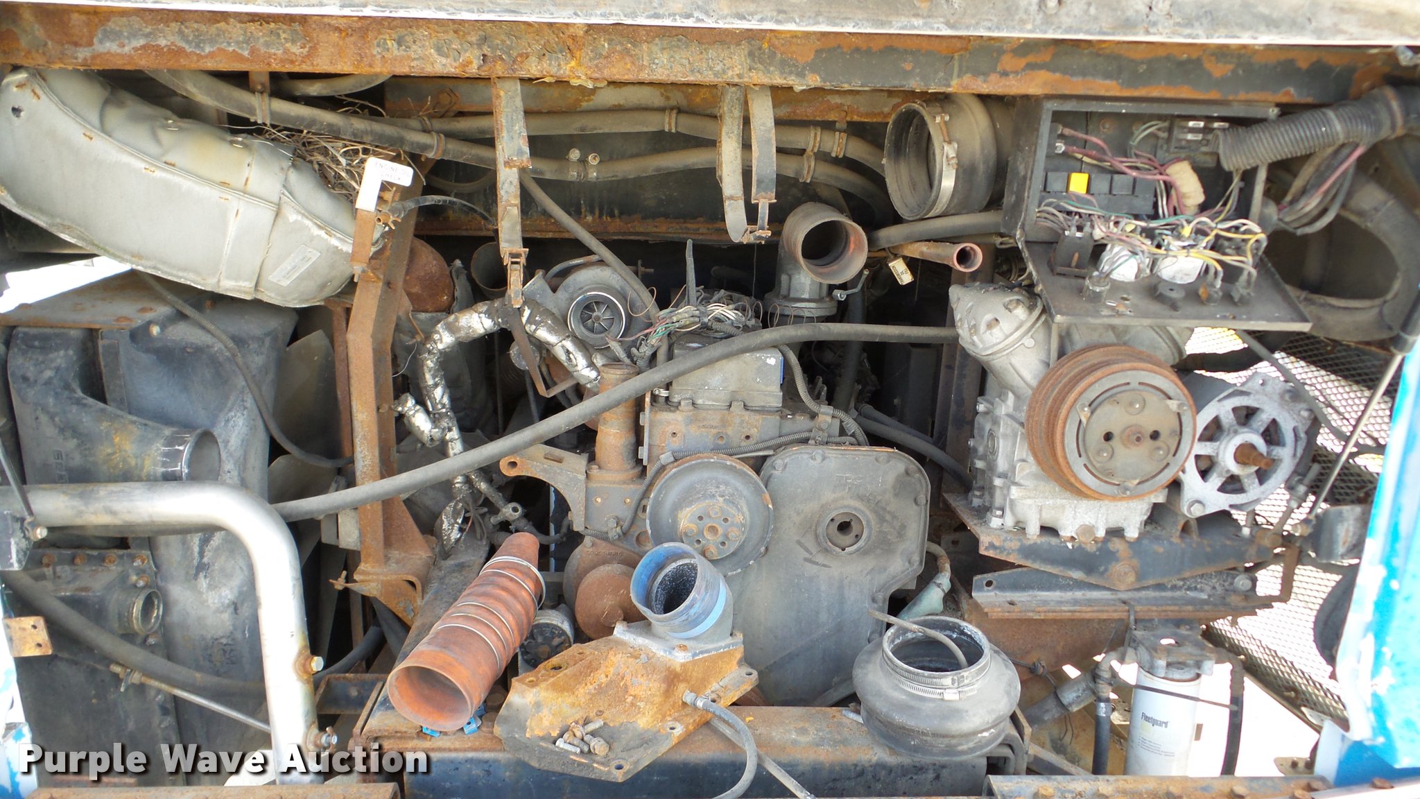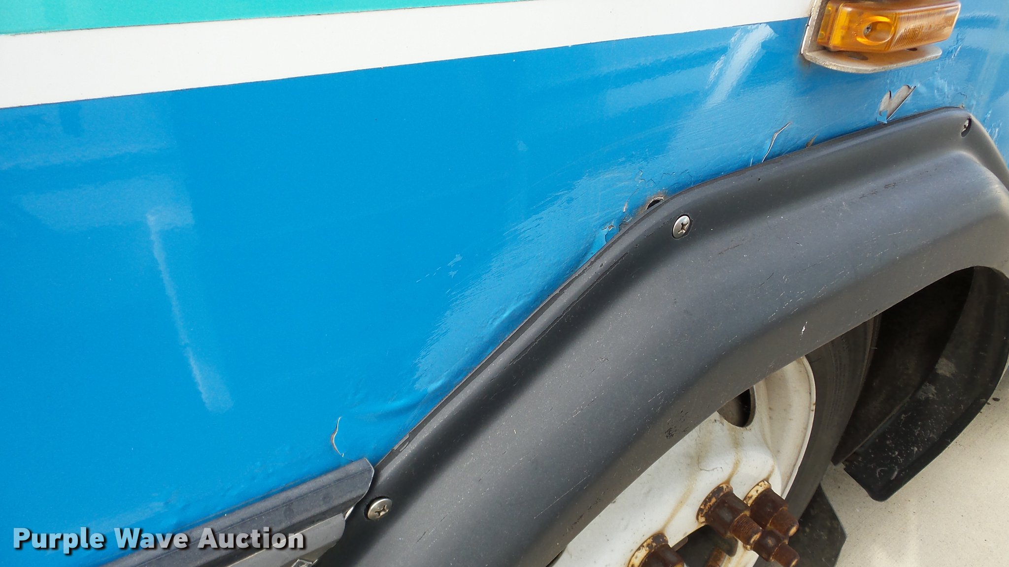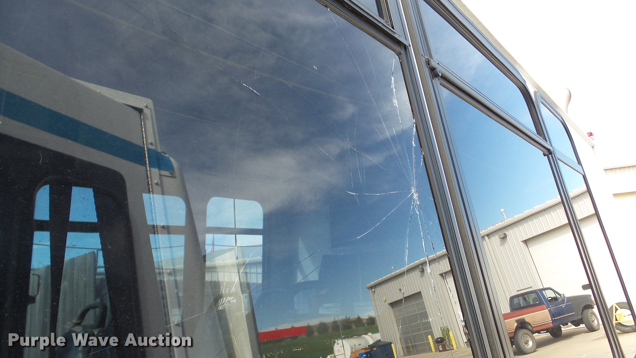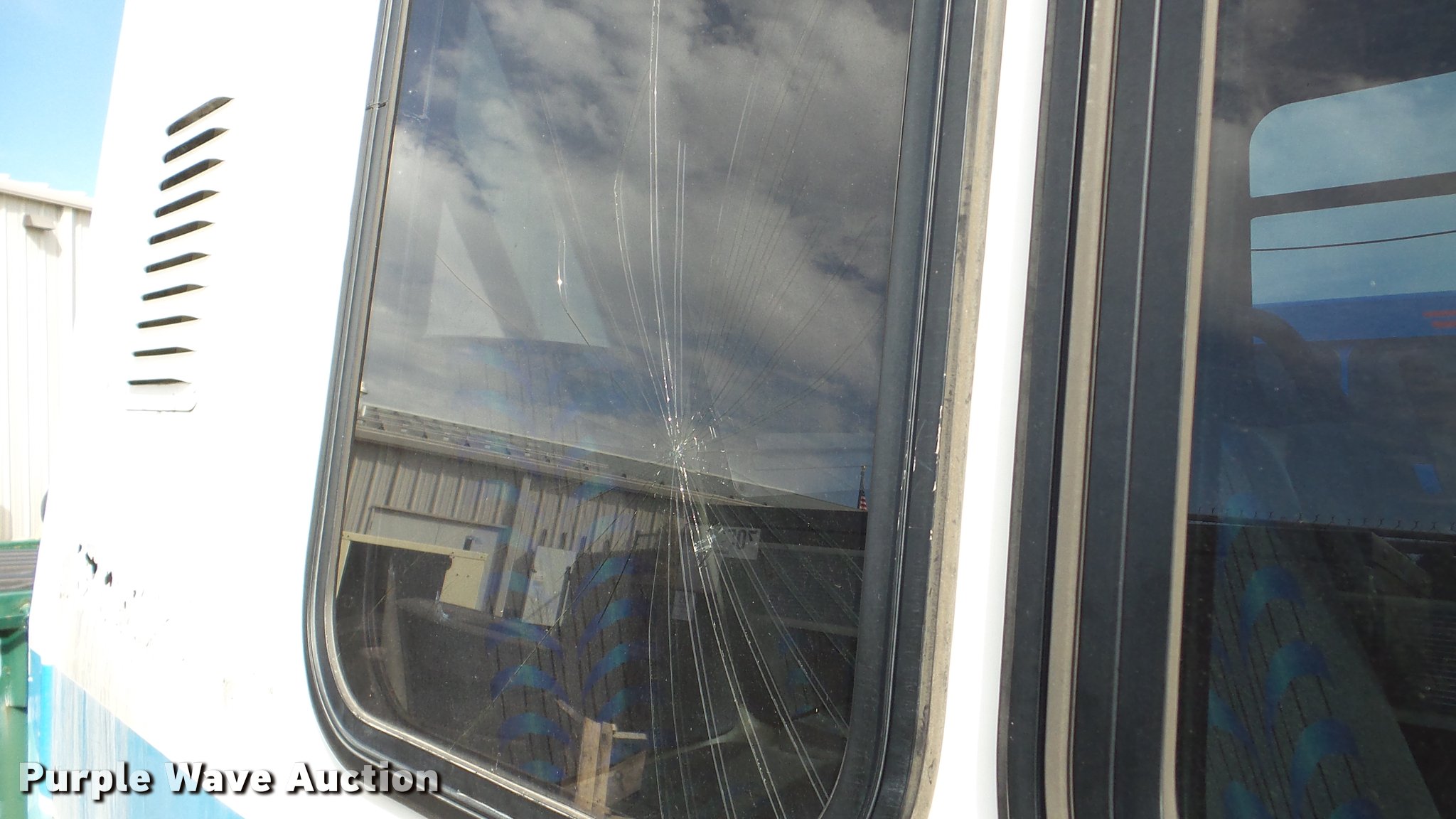 Purple Wave is selling a used Bus in Kansas. This item is a 2002 Neoplan Eldorado National shuttle bus with the following: 30,479 miles on odometer, Actual mileage unknown, 22,595 miles on hubodometer, 2,607 hours on meter, Cummins 5.9L L6 diesel engine, Automatic transmission, Single axle, AC and heat, Air suspension seat, Ceiling handrail, 25 passenger capacity, Ceiling, rear, and side emergency egress, Air suspension, Air brakes, 138" wheelbase, 255/70R22.5 tires, GVWR 29,800 lbs, Non-operational unit, parts missing