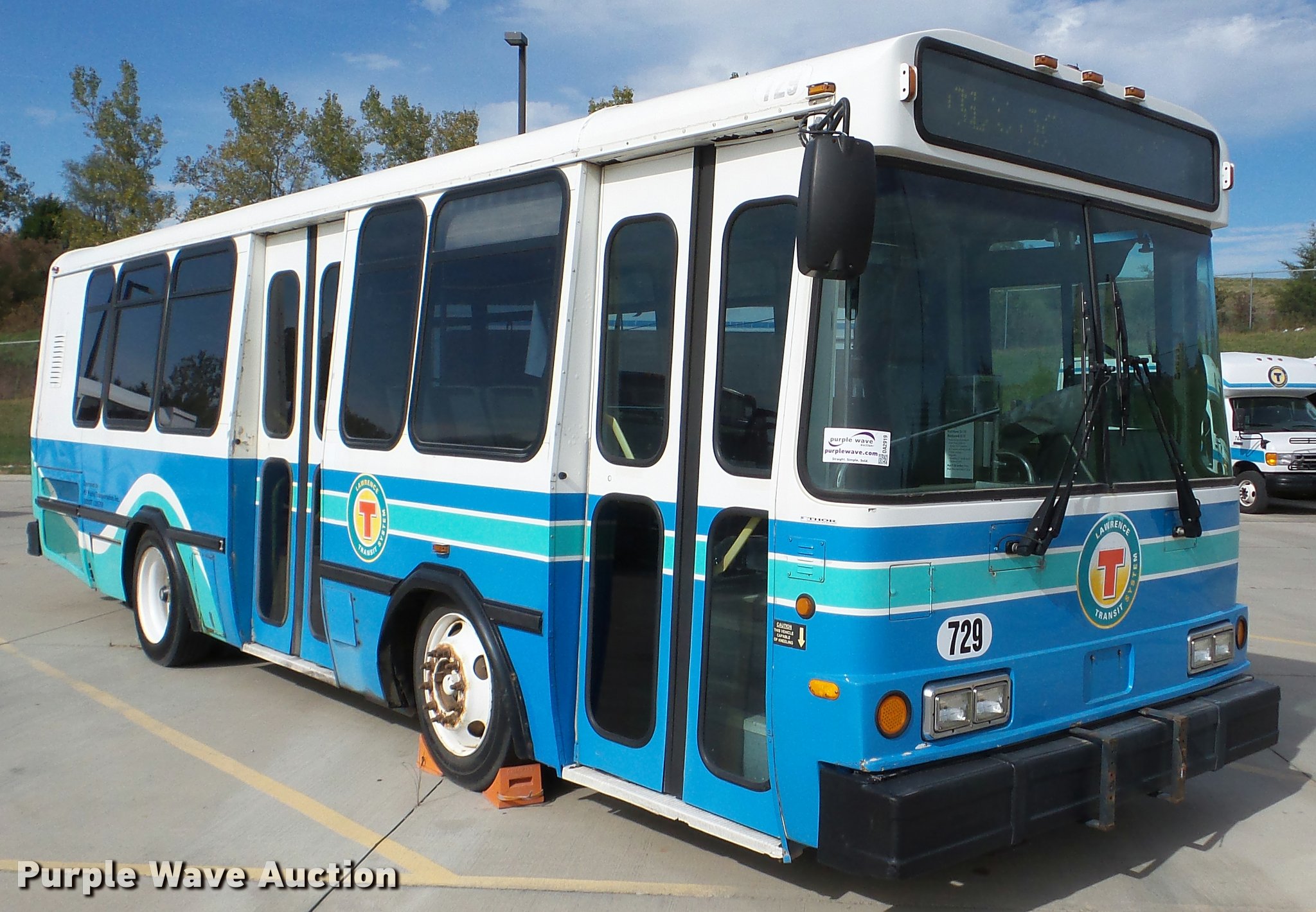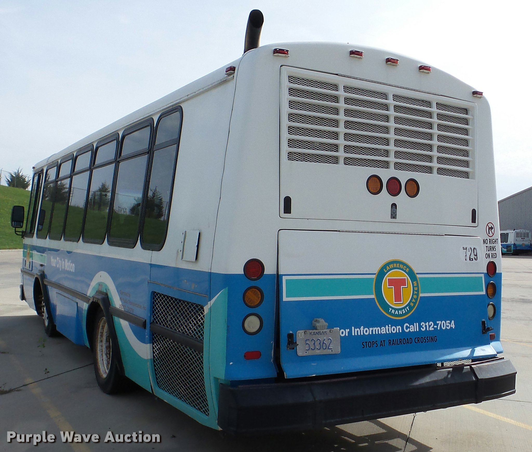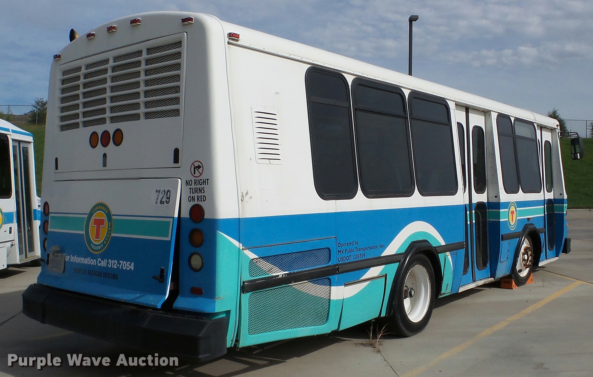 2002 Neoplan Eldorado National shuttle bus. 354 miles on odometer, 110,544 miles on hubodometer, 45,451 hours on meter, Cummins 5.9L L6 diesel engine, Automatic transmission, Single axle, AC and heat, Air suspension seat, Ceiling handrail, 25 passenger capacity, Ceiling, rear, and side emergency egress, Air suspension, Air brakes, 138" wheelbase, 255/70R22.5 tires, GVWR 29,800 lbs, Non-operational unit, parts missing. Kansas title. Seller is a government entity who will be assigning and distributing the title. Please contact the seller for distribution questions. 1N9TBAC872C084012. 1260 Timberedge Rd. Lawrence, KS 66046