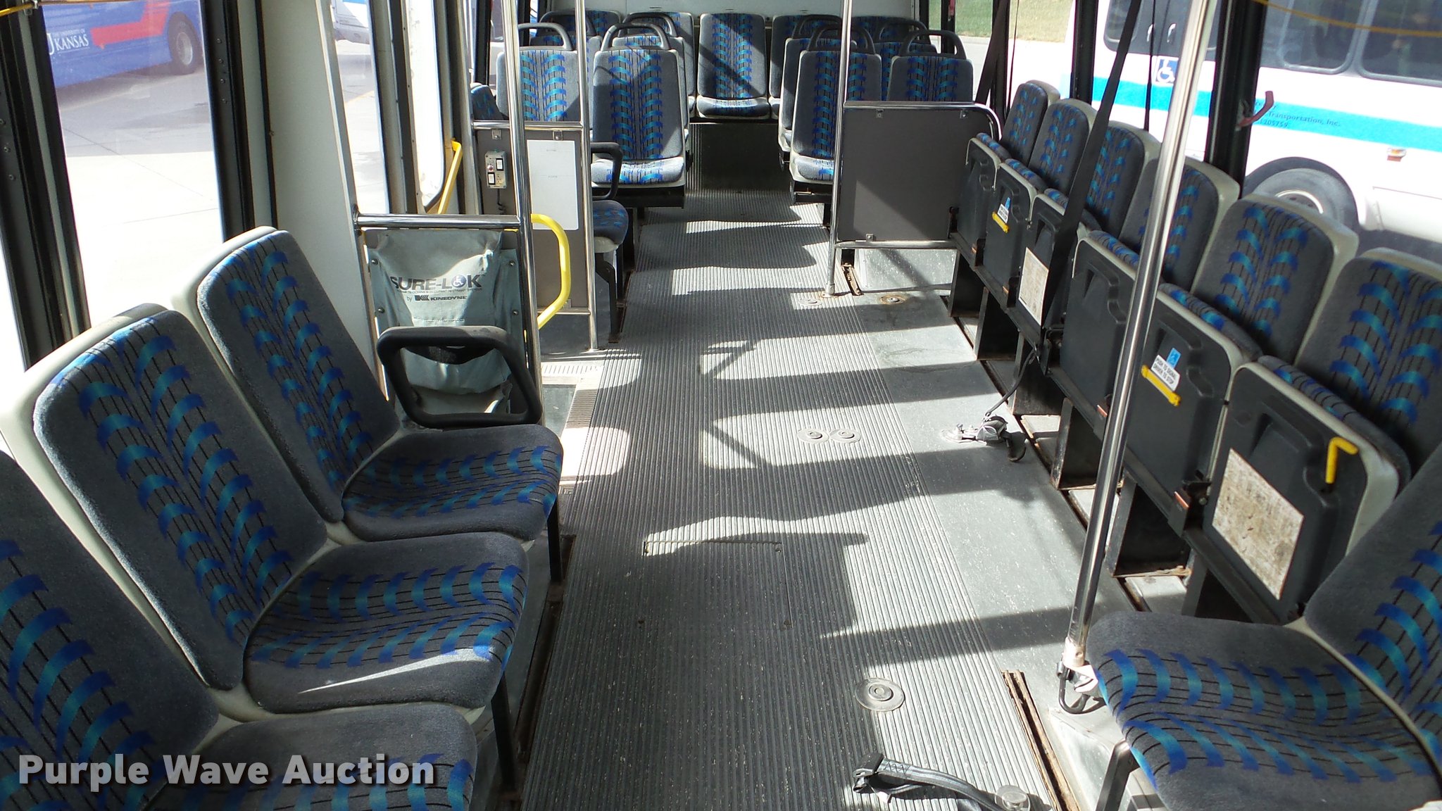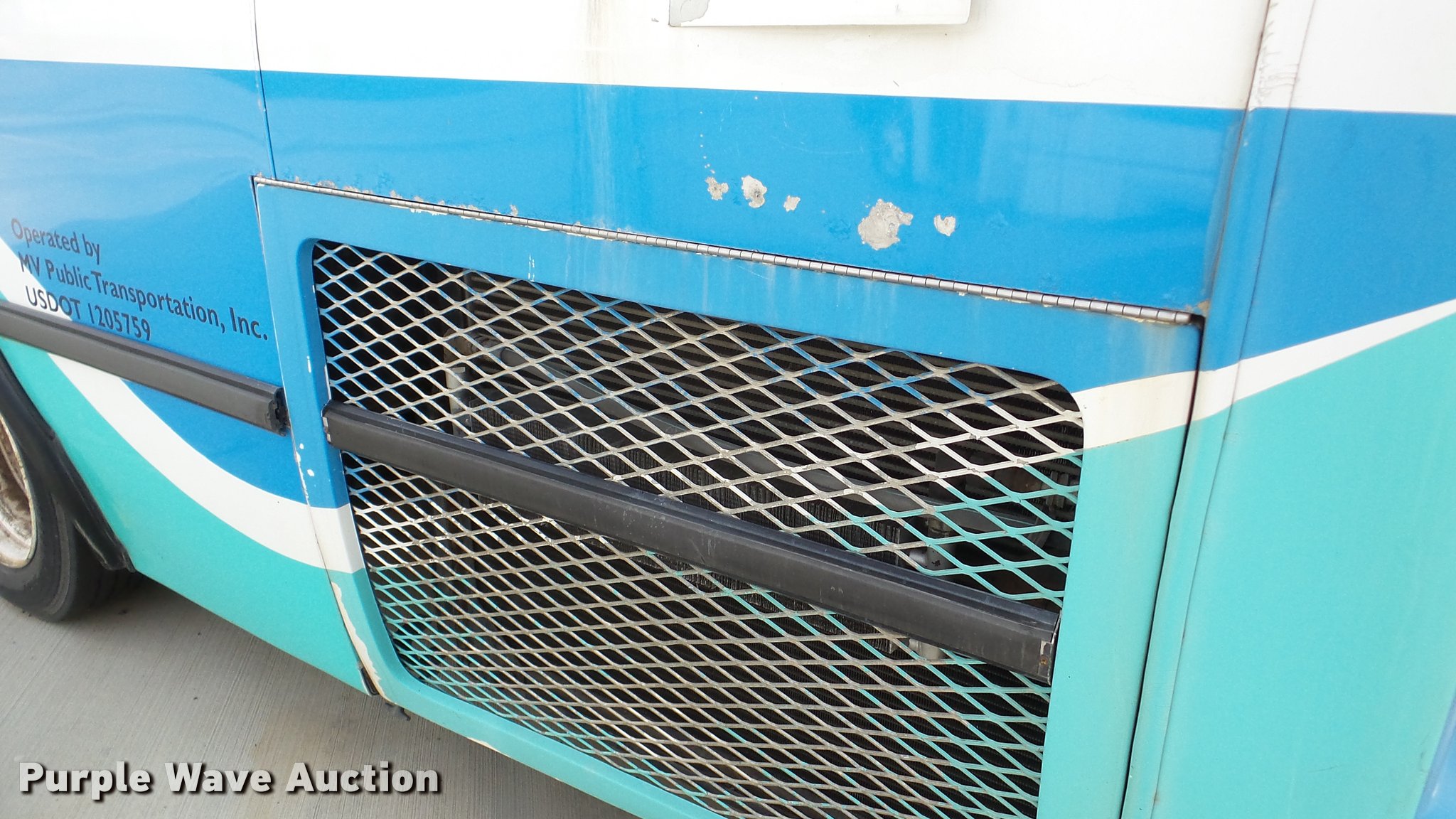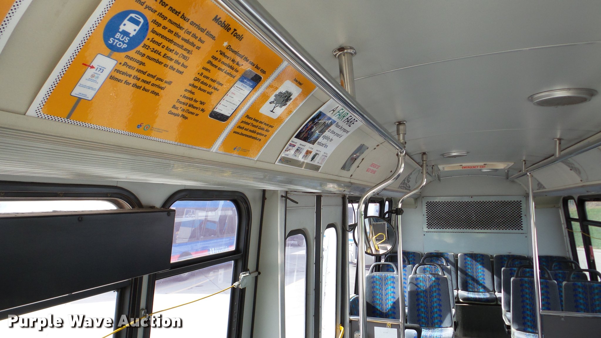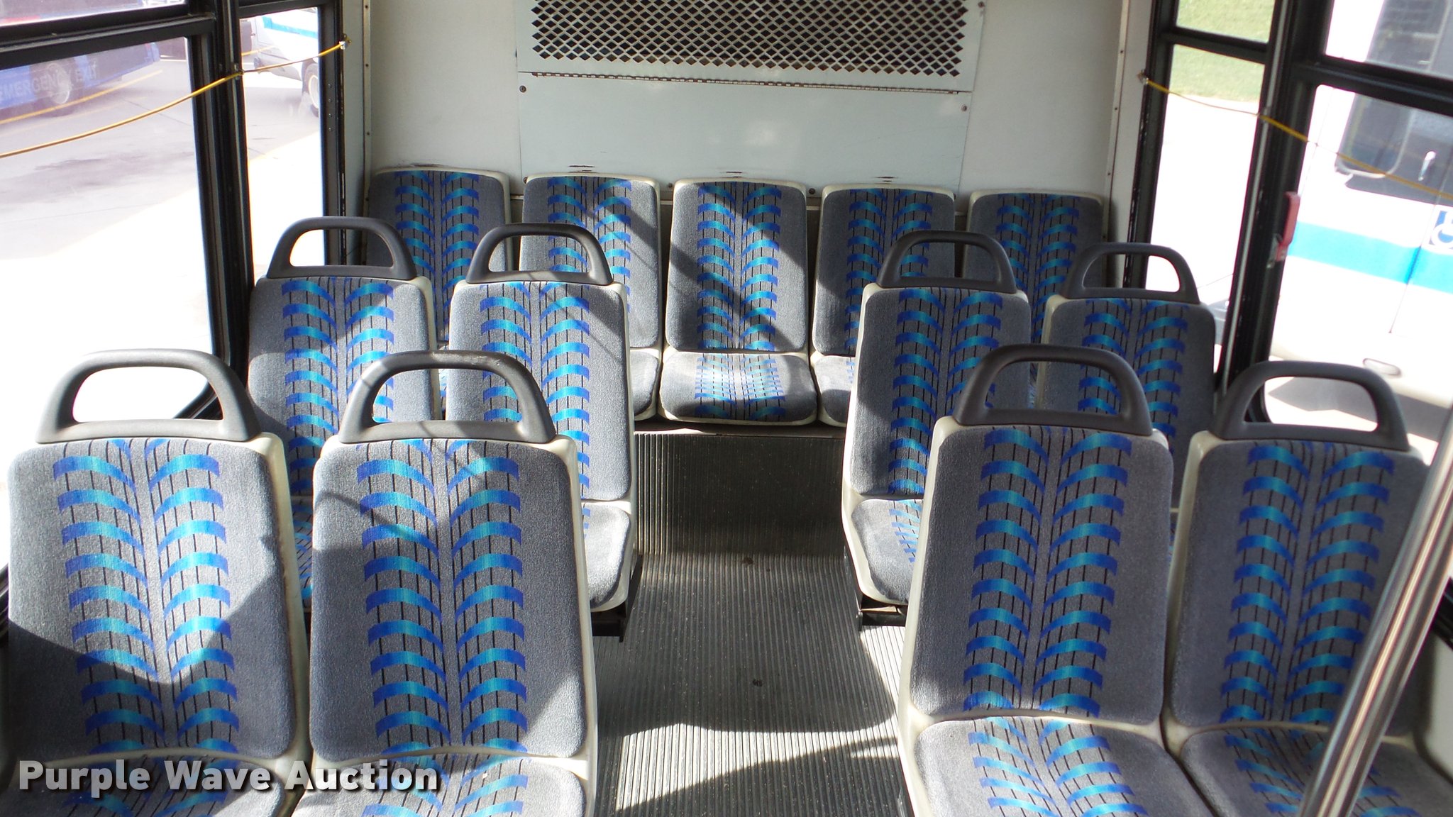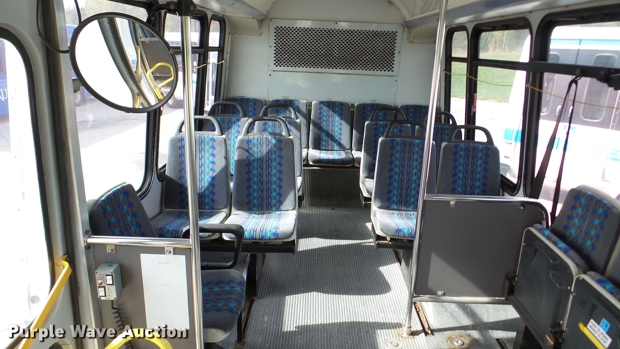 Purple Wave is selling a used Bus in Kansas. This item is a 2002 Neoplan Eldorado National shuttle bus with the following: 354 miles on odometer, 110,544 miles on hubodometer, 45,451 hours on meter, Cummins 5.9L L6 diesel engine, Automatic transmission, Single axle, AC and heat, Air suspension seat, Ceiling handrail, 25 passenger capacity, Ceiling, rear, and side emergency egress, Air suspension, Air brakes, 138" wheelbase, 255/70R22.5 tires, GVWR 29,800 lbs, Non-operational unit, parts missing