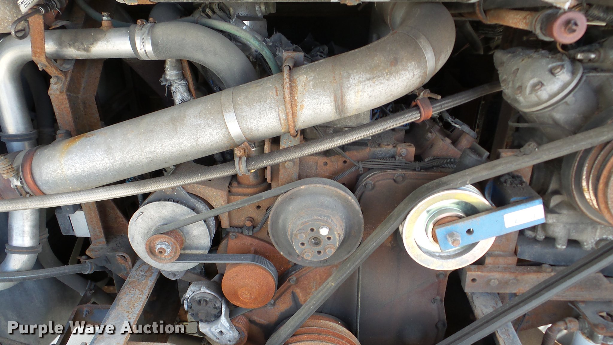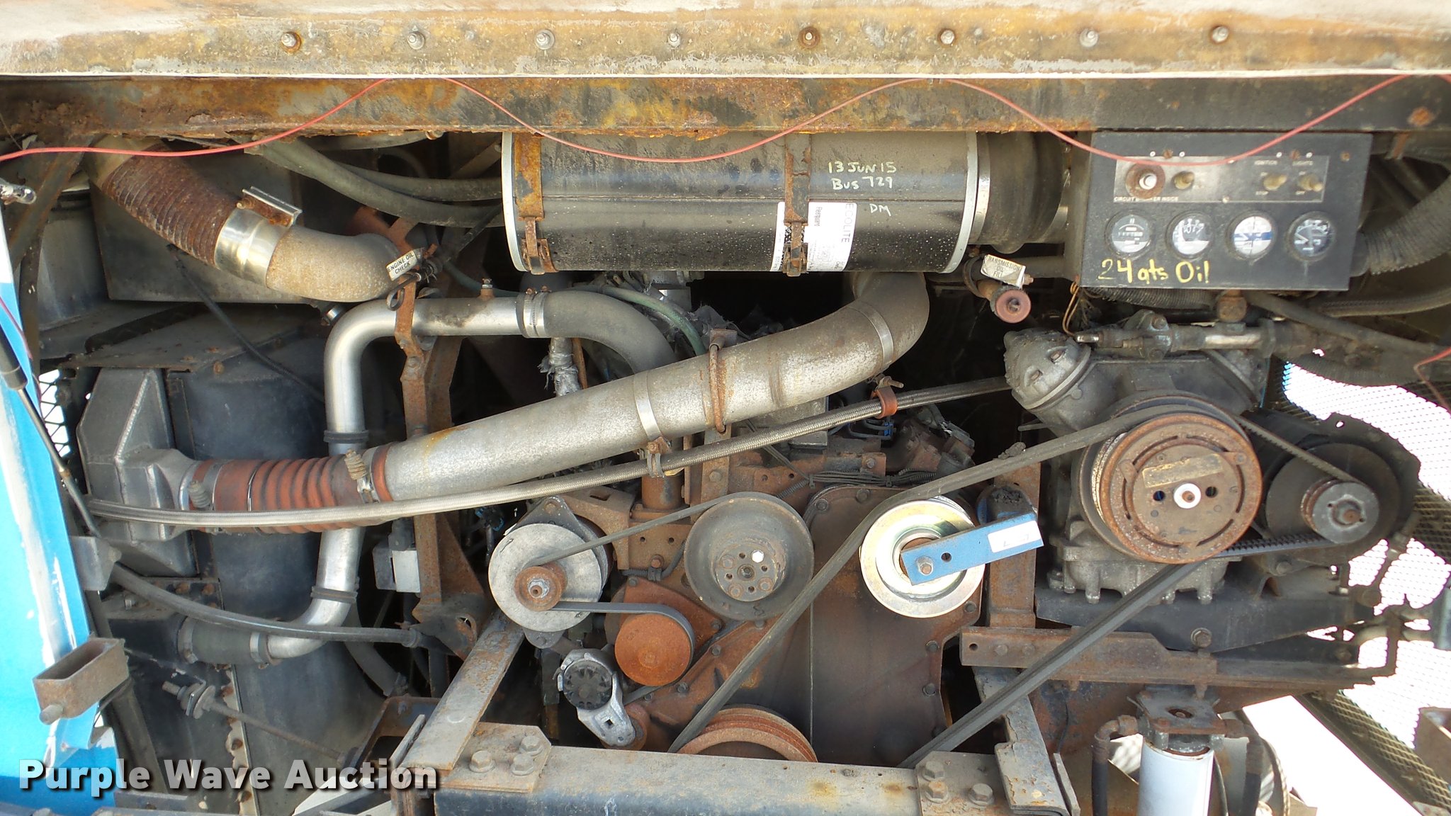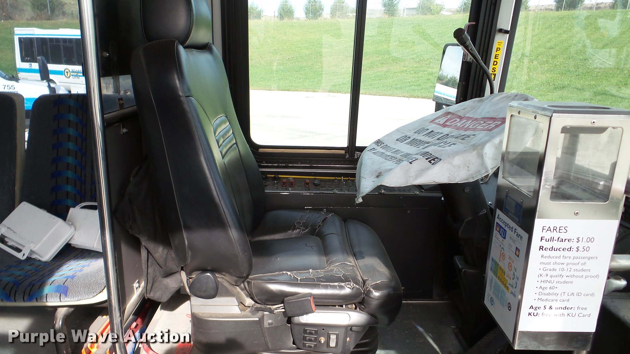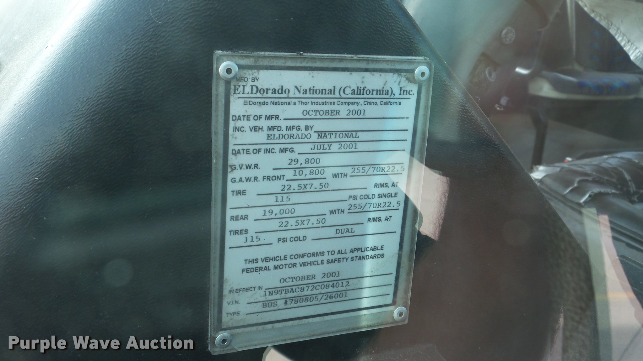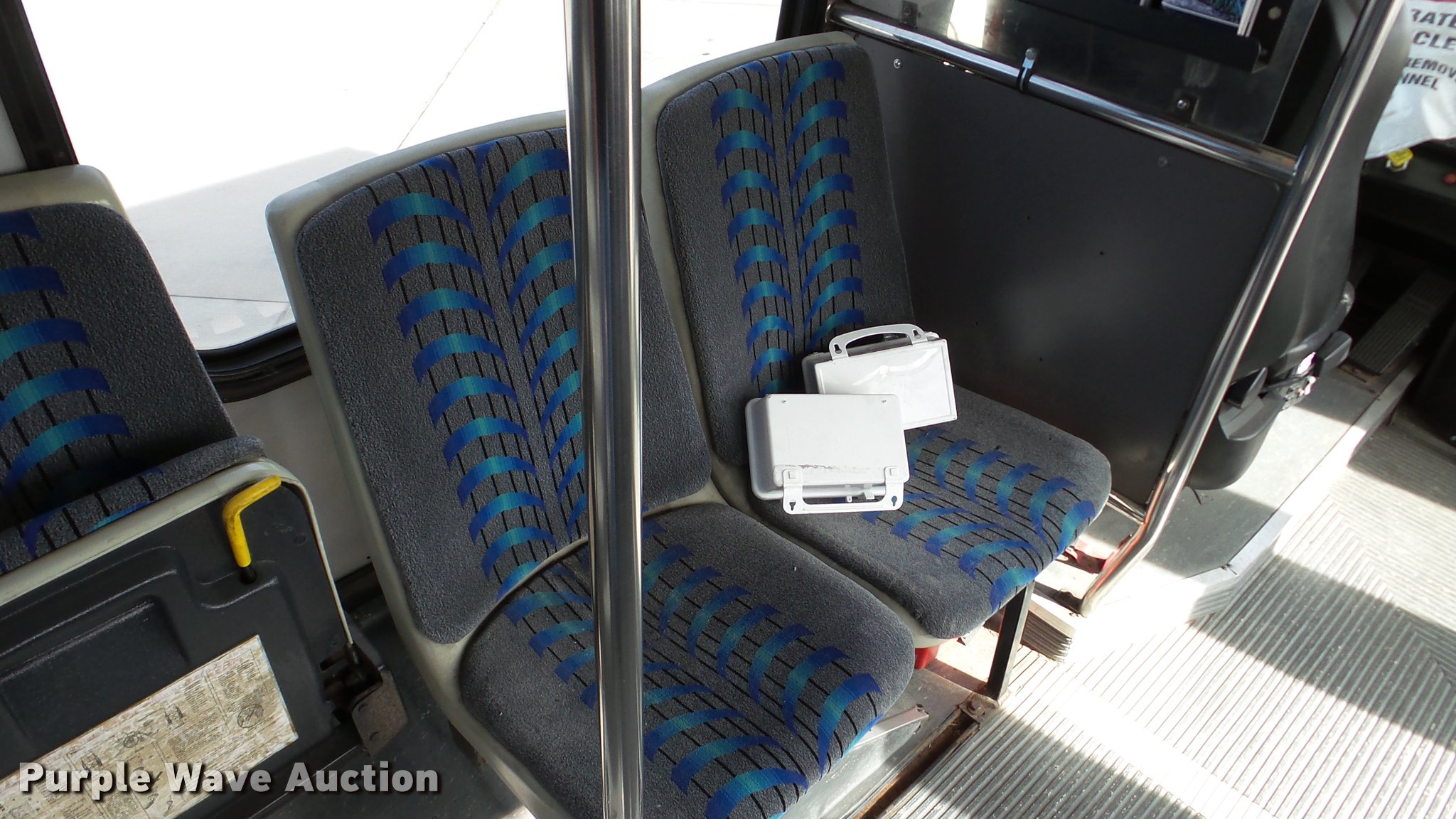 Purple Wave is selling a used Bus in Kansas. This item is a 2002 Neoplan Eldorado National shuttle bus with the following: 354 miles on odometer, 110,544 miles on hubodometer, 45,451 hours on meter, Cummins 5.9L L6 diesel engine, Automatic transmission, Single axle, AC and heat, Air suspension seat, Ceiling handrail, 25 passenger capacity, Ceiling, rear, and side emergency egress, Air suspension, Air brakes, 138" wheelbase, 255/70R22.5 tires, GVWR 29,800 lbs, Non-operational unit, parts missing