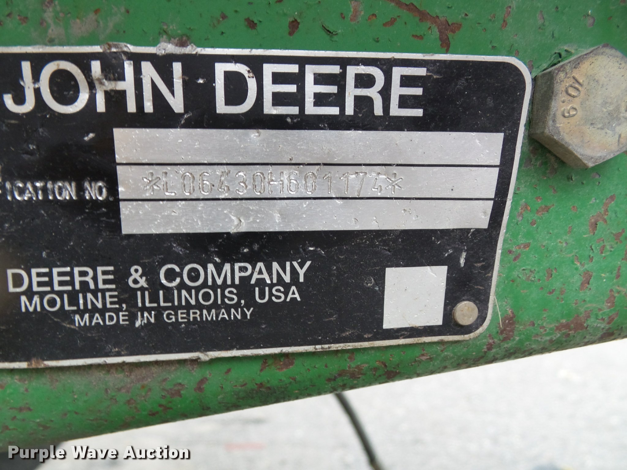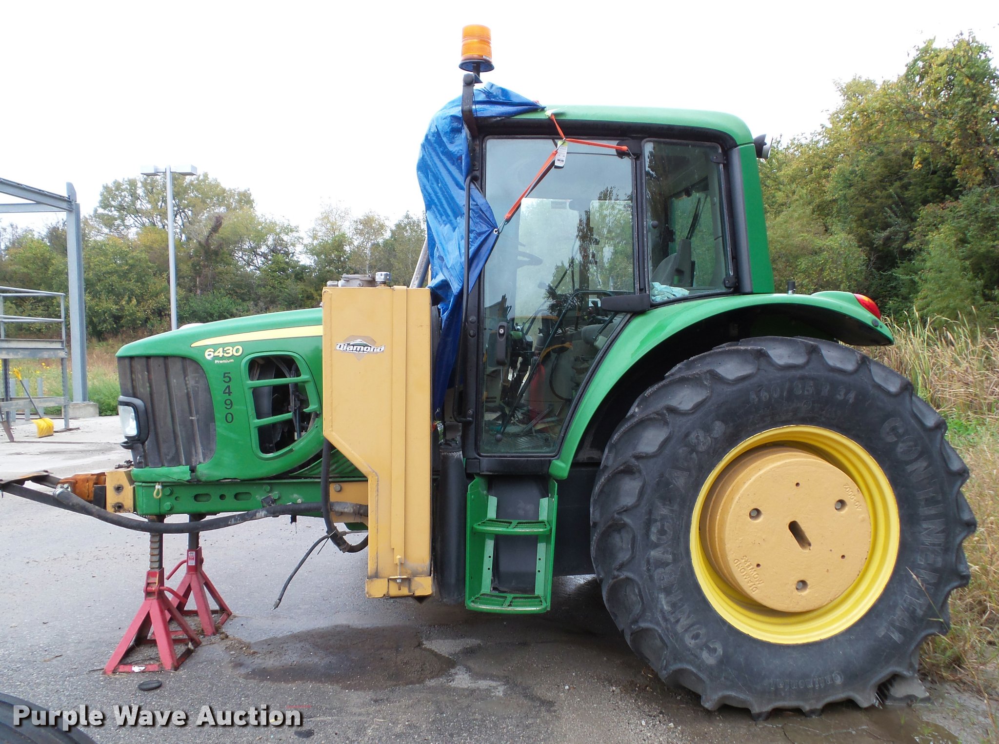 Purple Wave is selling a used Tractor in Kansas. This item is a 2009 John Deere 6430 tractor with the following: 2,608 hours on meter, John Deere diesel engine, Left-hand reverser, AC and heat, Tilt steering wheel, AM/FM, Suspension seat, Diamond boom mower, 5'W, Joystick controls, Three point, 540 PTO, (2) rear hydraulic remote sets, 10.00-16 front tires, 460/85R34 rear tires, Unknown operating condition of engine, Windshield broken, Business radio not included, Unattached front axle included, Serial L06430H601174, Unit# PWK5490