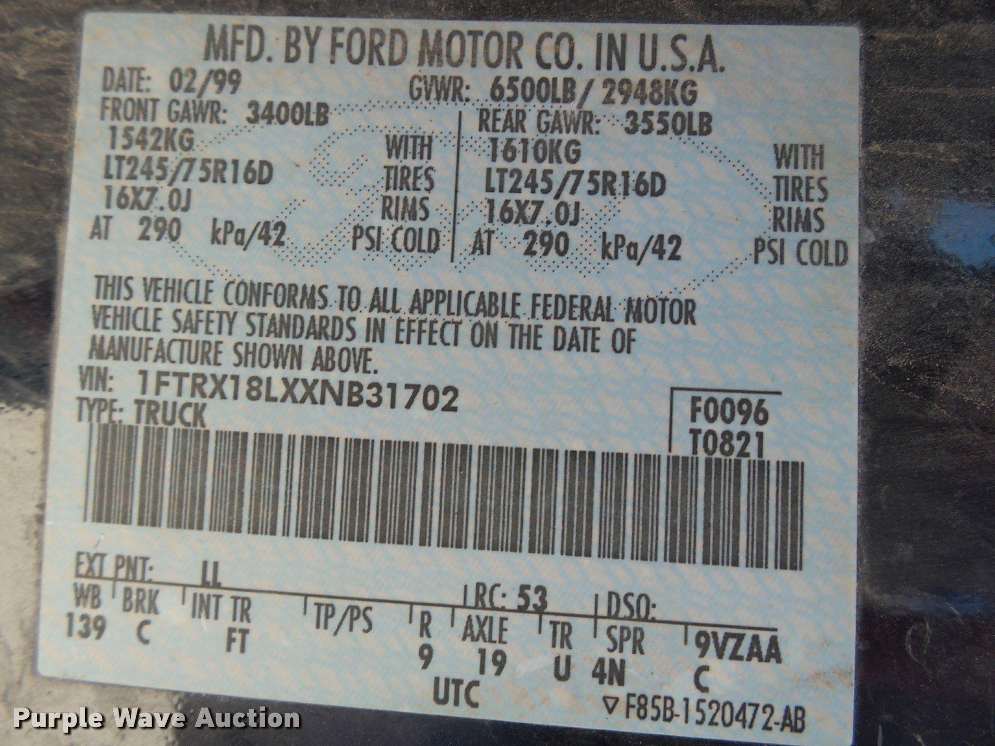 Purple Wave is selling a used 1/2 Ton Pickup or Van in Kansas. This item is a 1999 Ford F150 XLT SuperCab pickup truck with the following: 183,005 miles on odometer, 5.4L V8 SOHC 16V gas engine, Automatic transmission, Four wheel drive, AC and heat, Tilt, Cruise, AM/FM/cassette, Power windows, locks, and mirrors, Cloth interior, Fog lights, Front tow hooks, Running boards, LT245/75R16 tires, Two-way radio, fuel tank, and contents in bed not included, Will be removed prior to auction, Unit# 130