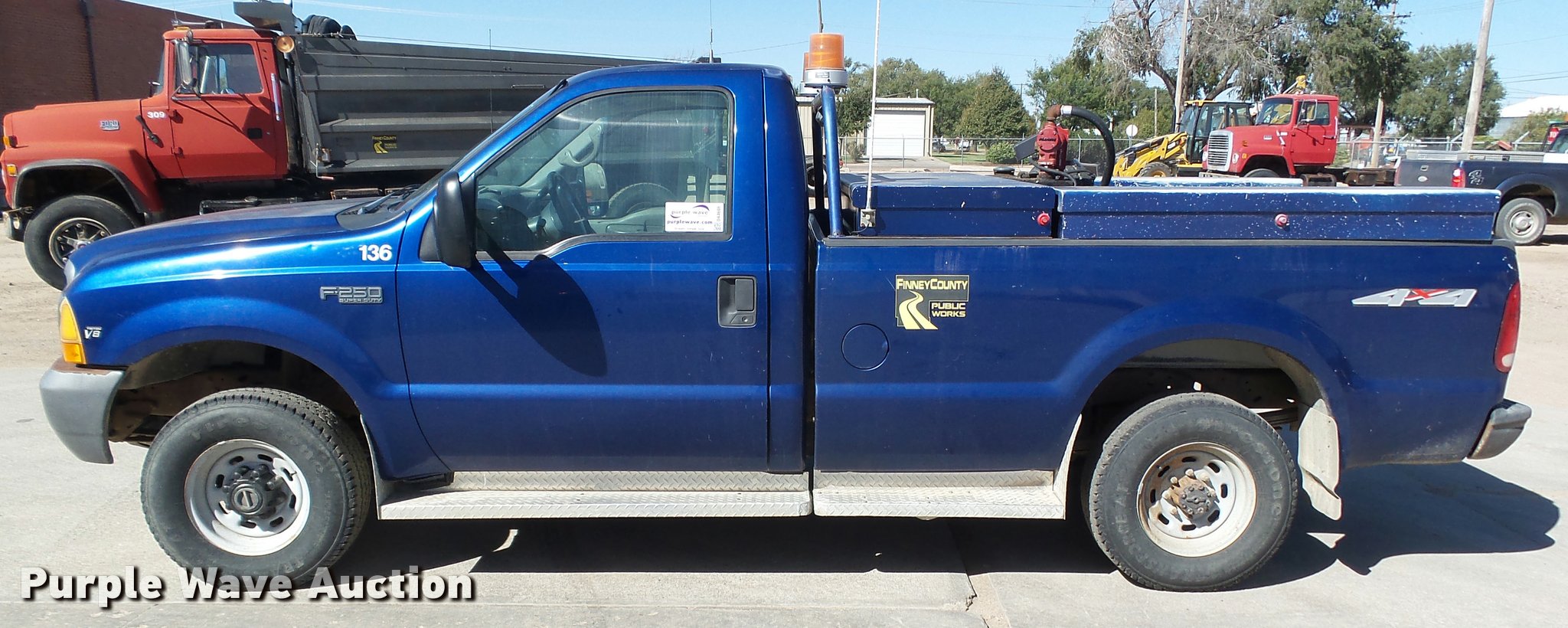 Purple Wave is selling a used 3/4 or 1 Ton Pickup or Van in Kansas. This item is a 1999 Ford F250 Super Duty pickup truck with the following: 152,833 miles on odometer, 5.4L V8 SOHC 16V gas engine, Automatic transmission, Four wheel drive, AC and heat, AM/FM, Manual windows and locks, Cloth interior, Front tow hooks, Running boards, Toolboxes, Receiver hitch, LT245/75R16 tires, Hail damage, Two-way radio, speakers, fuel tank, beacon lights, and tools not included, Will be removed prior to auction, Unit# 136