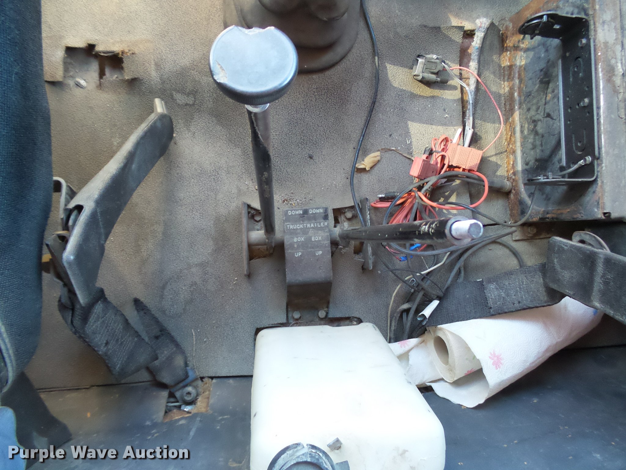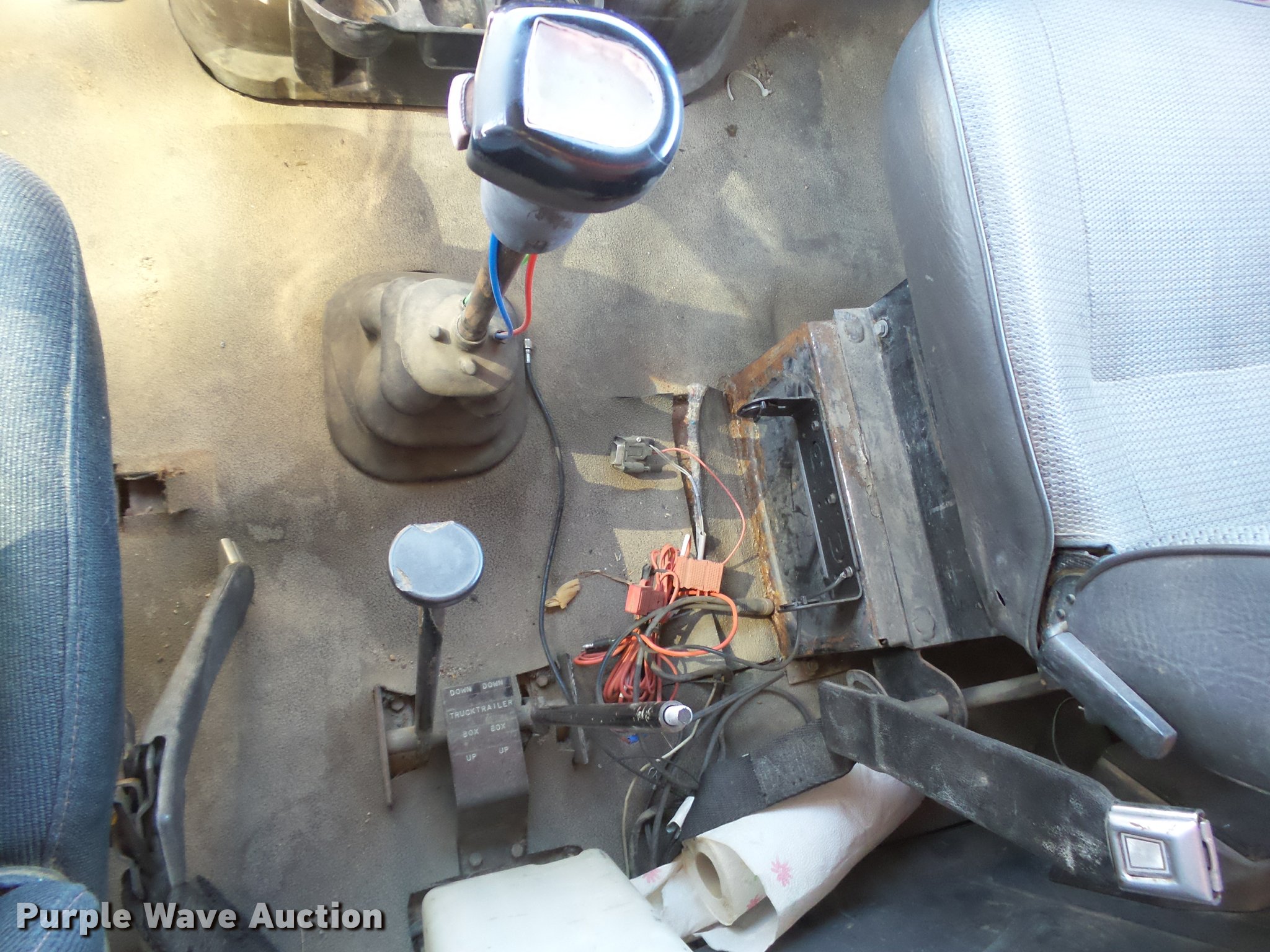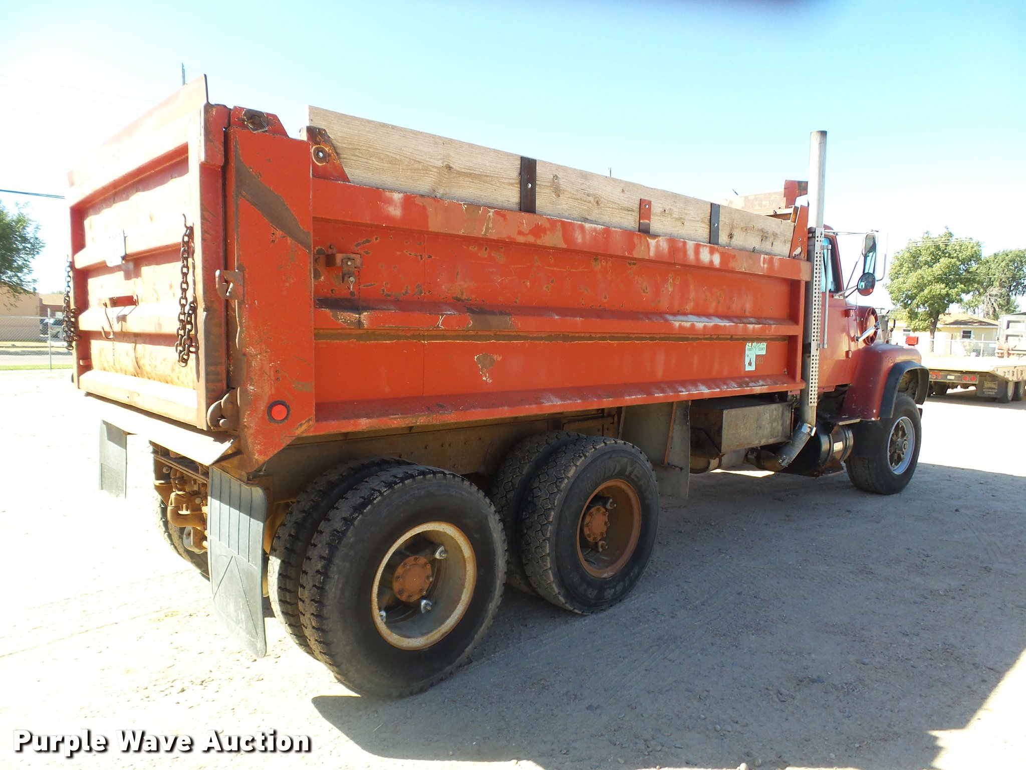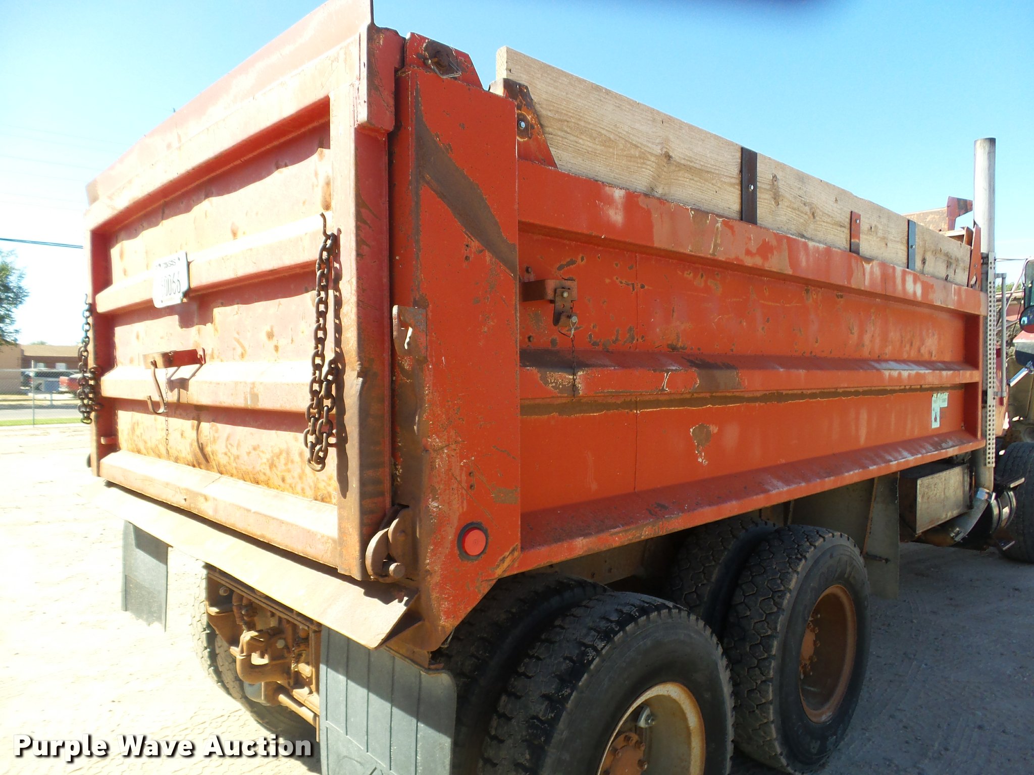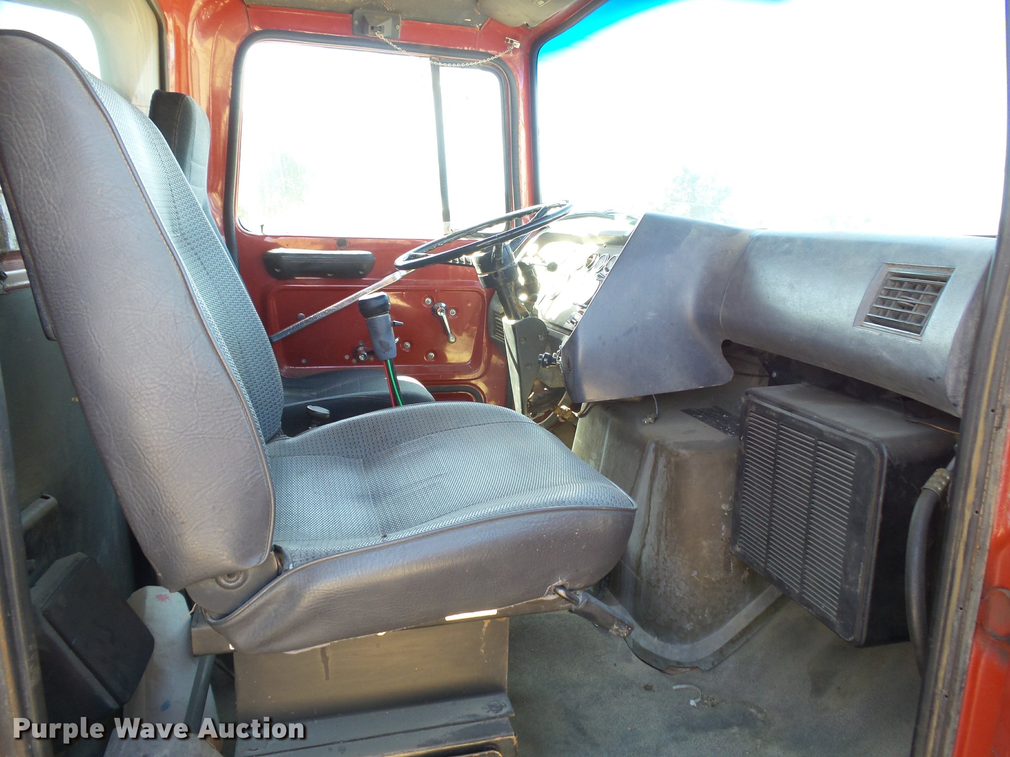 Purple Wave is selling a used Construction Dump Truck in Kansas. This item is a 1987 Ford L9000 dump truck with the following: 147,234 miles on odometer, 2,171 hours on meter, Caterpillar 3406 14.6L L6 turbo diesel engine, Eaton Fuller eight speed manual transmission, Tandem axle, Heat, AM/FM, Air suspension seat, Block heater, PTO, 15'L x 96"W steel dump bed, Model 15KCSP, 36" side height, 12" side board height, Manual end gate, Single ram hoist, Dual fuel tanks, Pintle hitch, Trailer wiring, Air suspension, Air brakes, 204" wheelbase, 385/65R22.5 front tires, 10.00R20 rear tires, GVWR 55,000 lbs, Unit# 311