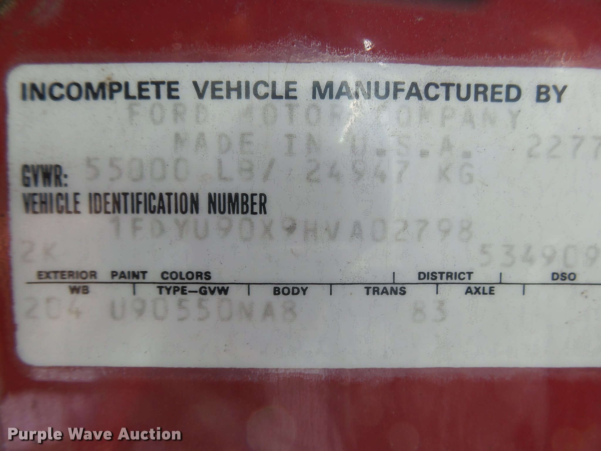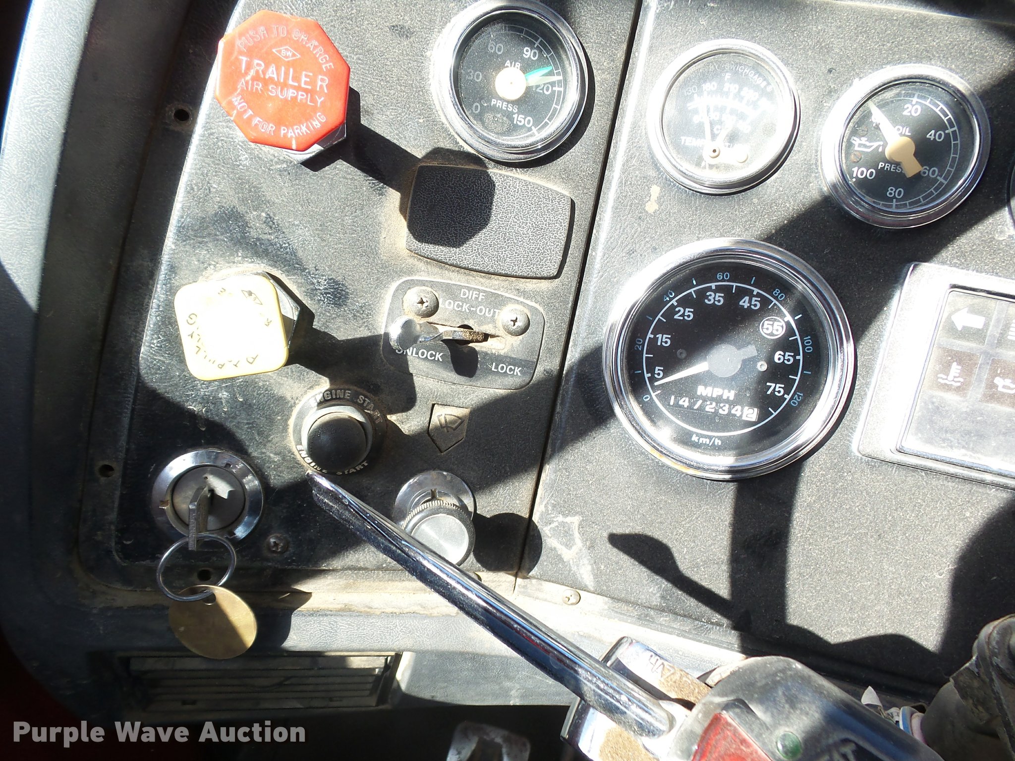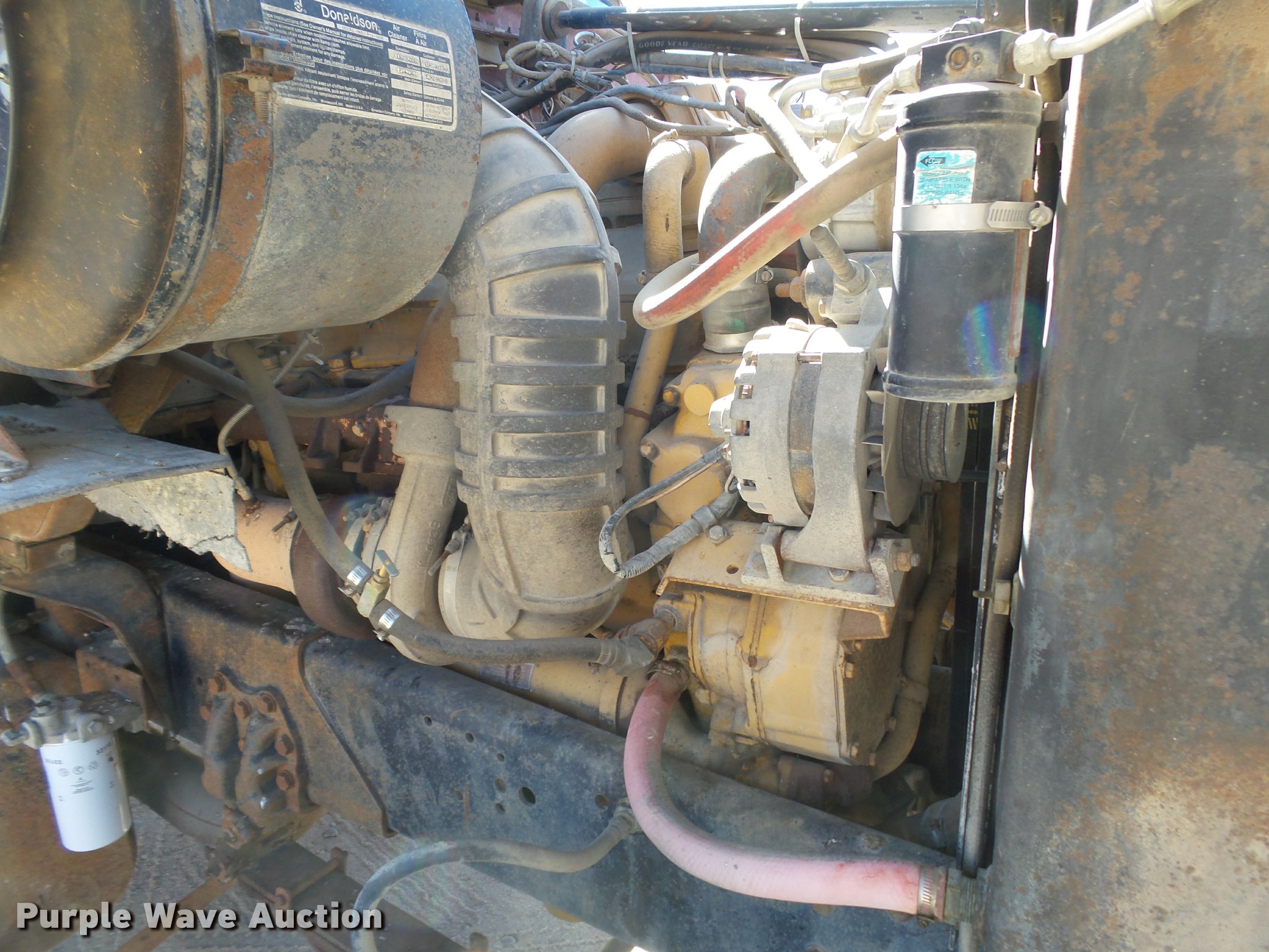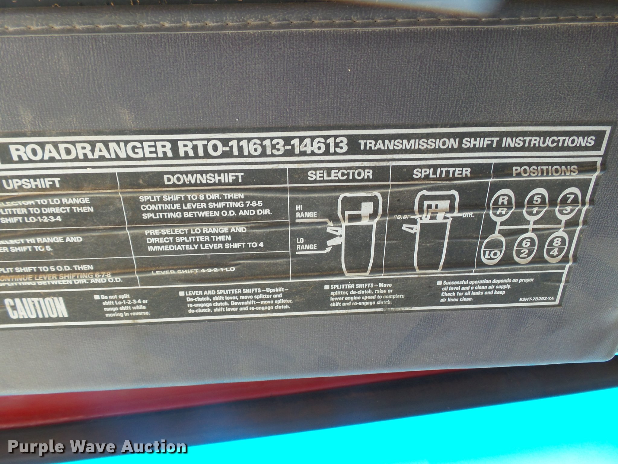 Purple Wave is selling a used Construction Dump Truck in Kansas. This item is a 1987 Ford L9000 dump truck with the following: 147,234 miles on odometer, 2,171 hours on meter, Caterpillar 3406 14.6L L6 turbo diesel engine, Eaton Fuller eight speed manual transmission, Tandem axle, Heat, AM/FM, Air suspension seat, Block heater, PTO, 15'L x 96"W steel dump bed, Model 15KCSP, 36" side height, 12" side board height, Manual end gate, Single ram hoist, Dual fuel tanks, Pintle hitch, Trailer wiring, Air suspension, Air brakes, 204" wheelbase, 385/65R22.5 front tires, 10.00R20 rear tires, GVWR 55,000 lbs, Unit# 311