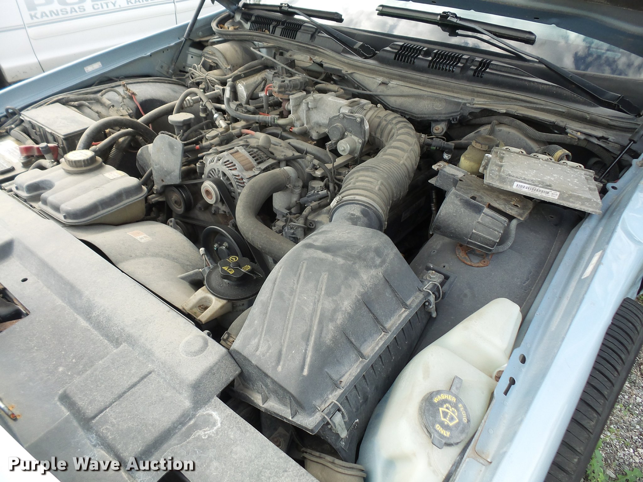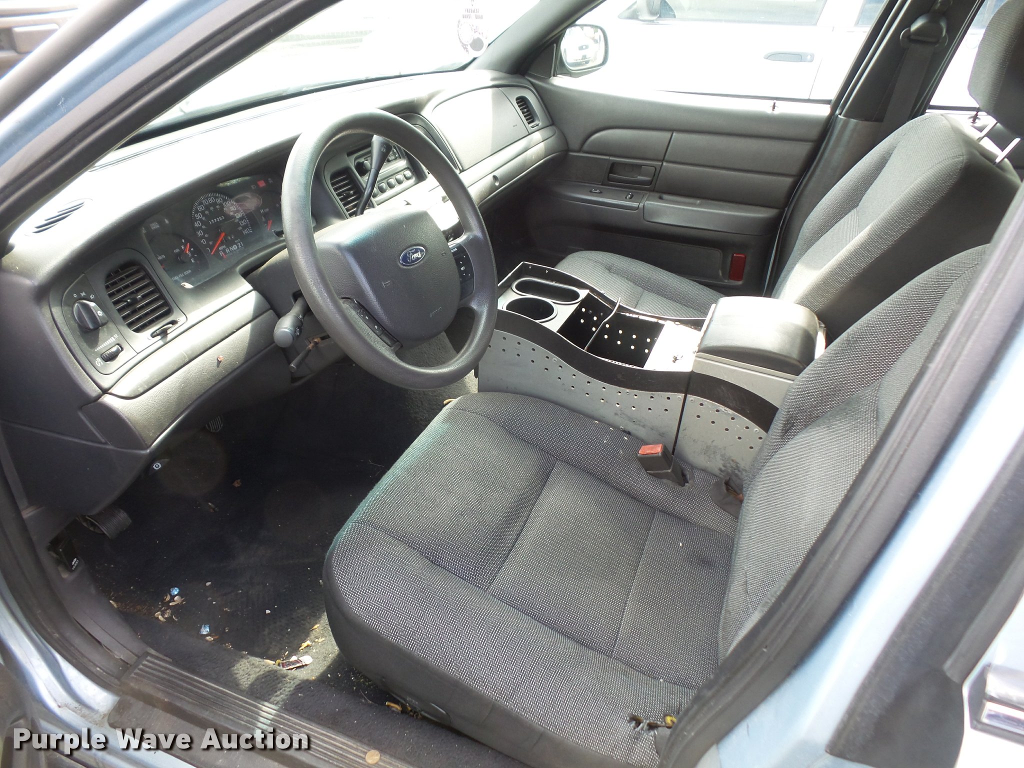 Purple Wave is selling a used Passenger Vehicle in Kansas. This item is a 2005 Ford Crown Victoria Police Interceptor with the following: 177,253 miles on odometer, 4.6L V8 SOHC 16V gas engine, Automatic transmission, AC and heat, Tilt, Cruise, AM/FM, Power windows, locks, and mirrors, Cloth interior, P225/60R16 tires, Brake light on, Wrecked, body damage on left side, Unit# 15-241