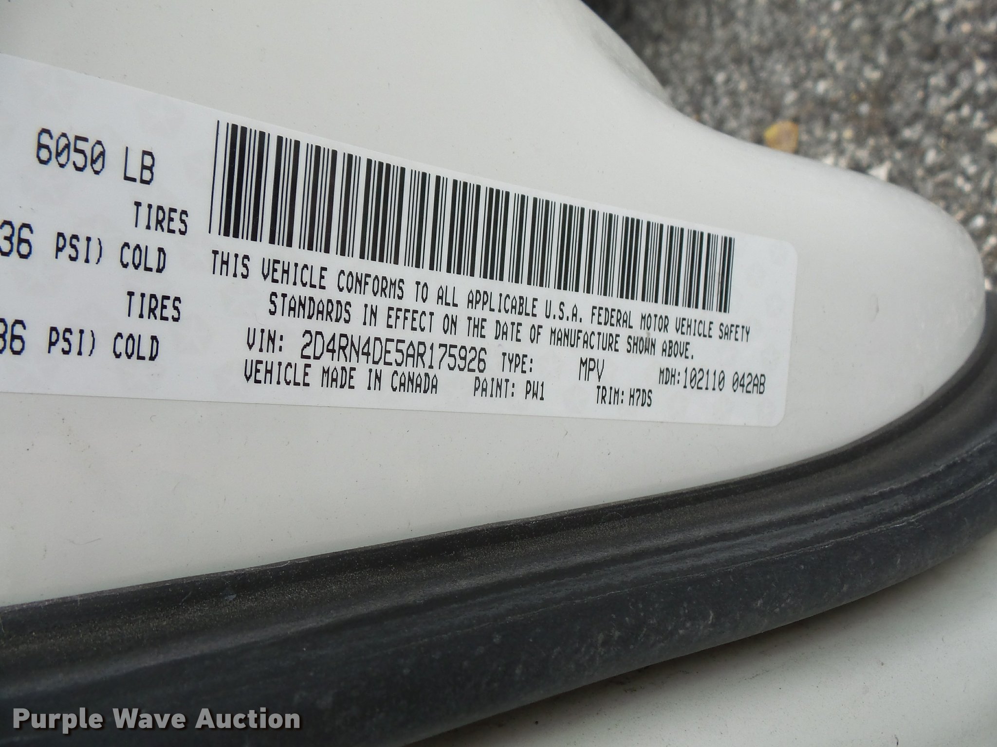Purple Wave is selling a used Passenger Vehicle in Kansas. This item is a 2010 Dodge Grand Caravan SE van with the following: 229,734 miles on odometer, 3.3L V6 OHV 12V gas engine, Automatic transmission, AC and heat, Tilt, Cruise, AM/FM, Power windows, locks, and mirrors, Cloth interior, 225/65R16 tires, Unit# 14-5926