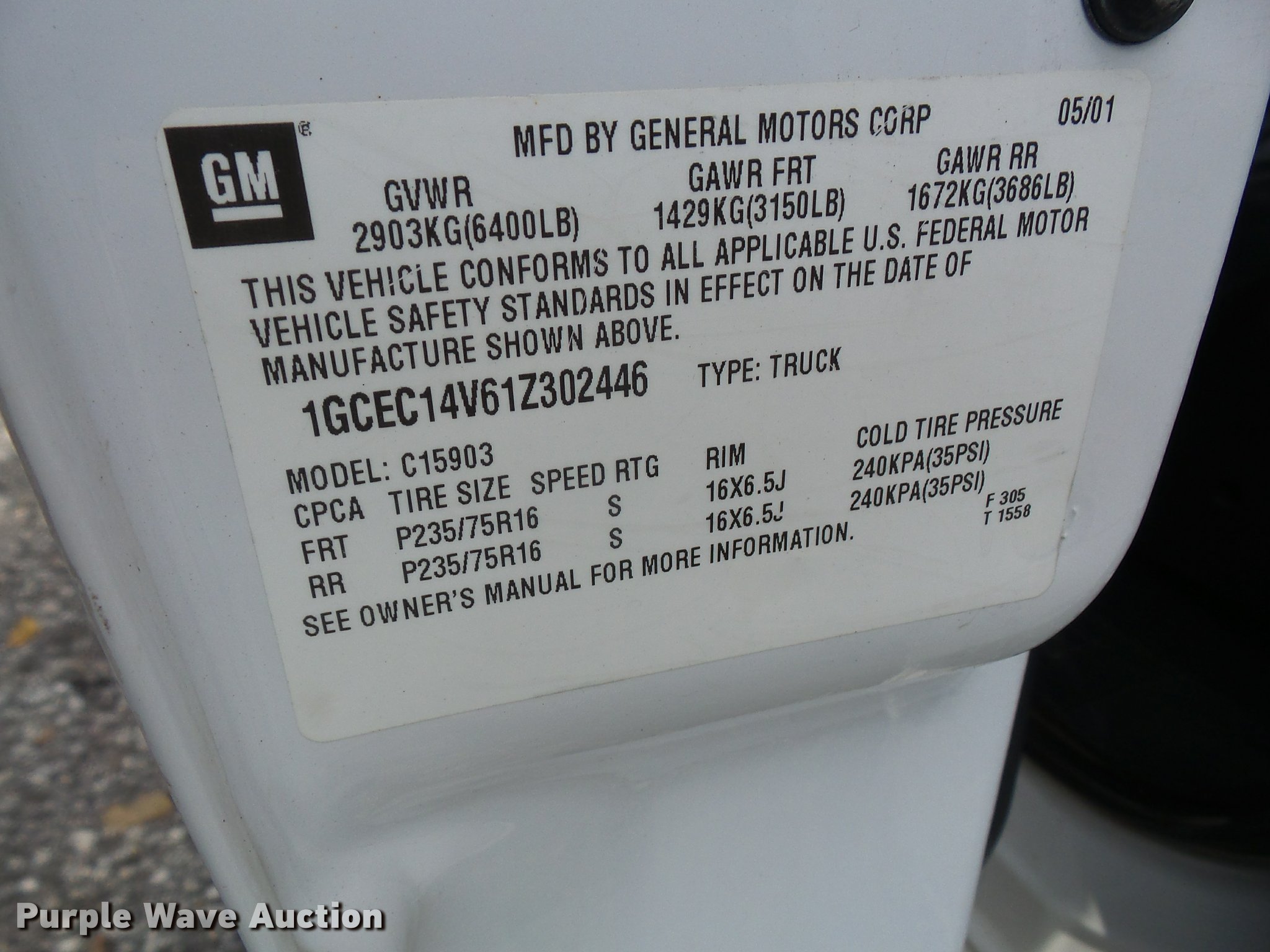 Purple Wave is selling a used 1/2 Ton Pickup or Van in Kansas. This item is a 2001 Chevrolet Silverado 1500 pickup truck with the following: 177,582 miles on odometer, 4.8L V8 OHV 16V gas engine, Automatic transmission, AC and heat, Tilt, AM/FM, Non-operational, Manual windows and locks, Vinyl interior, Long bed, P235/75R16 tires, Rust, Seat torn, Unit# 30-1003