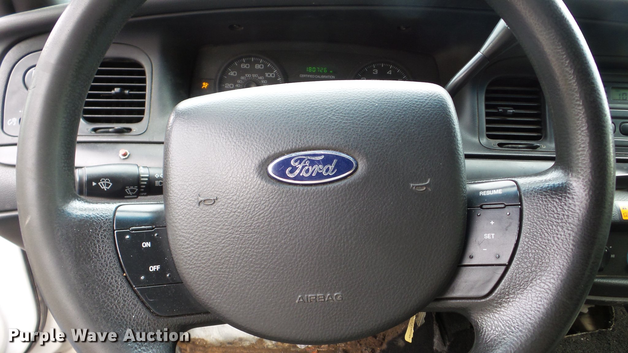 Purple Wave is selling a used Passenger Vehicle in Kansas. This item is a 2011 Ford Crown Victoria Police Interceptor with the following: 180,726 miles on odometer, 4.6L V8 SOHC 16V FFV gas engine, Automatic transmission, AC and heat, Tilt, Cruise, AM/FM, Power windows, locks, mirrors, and seat, Cloth interior, P235/55R17 tires, Check engine light on, Air bag light on, TMPS light on, Unit# 15-151