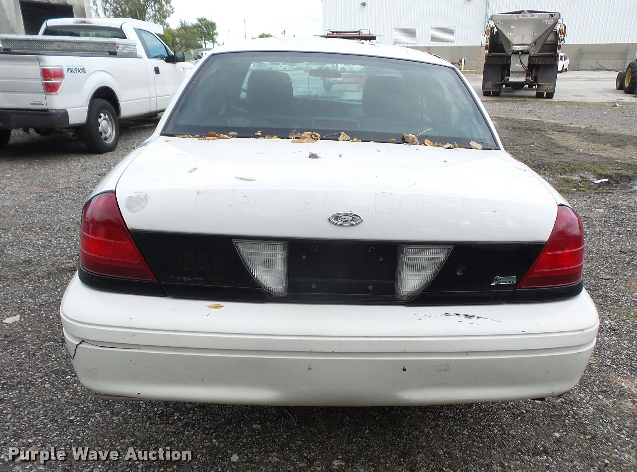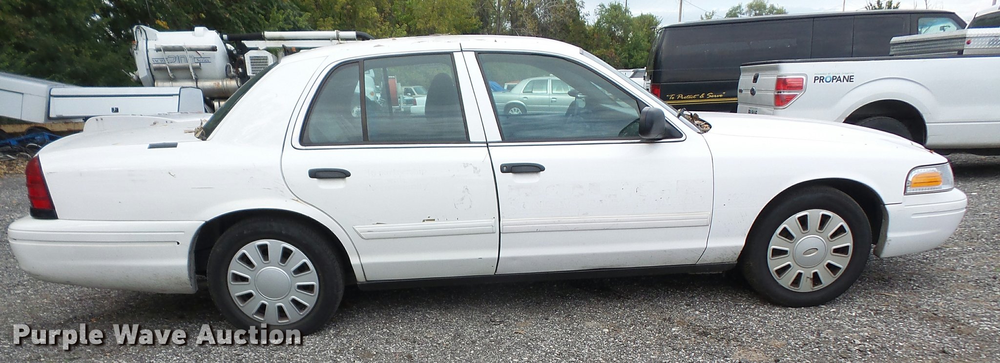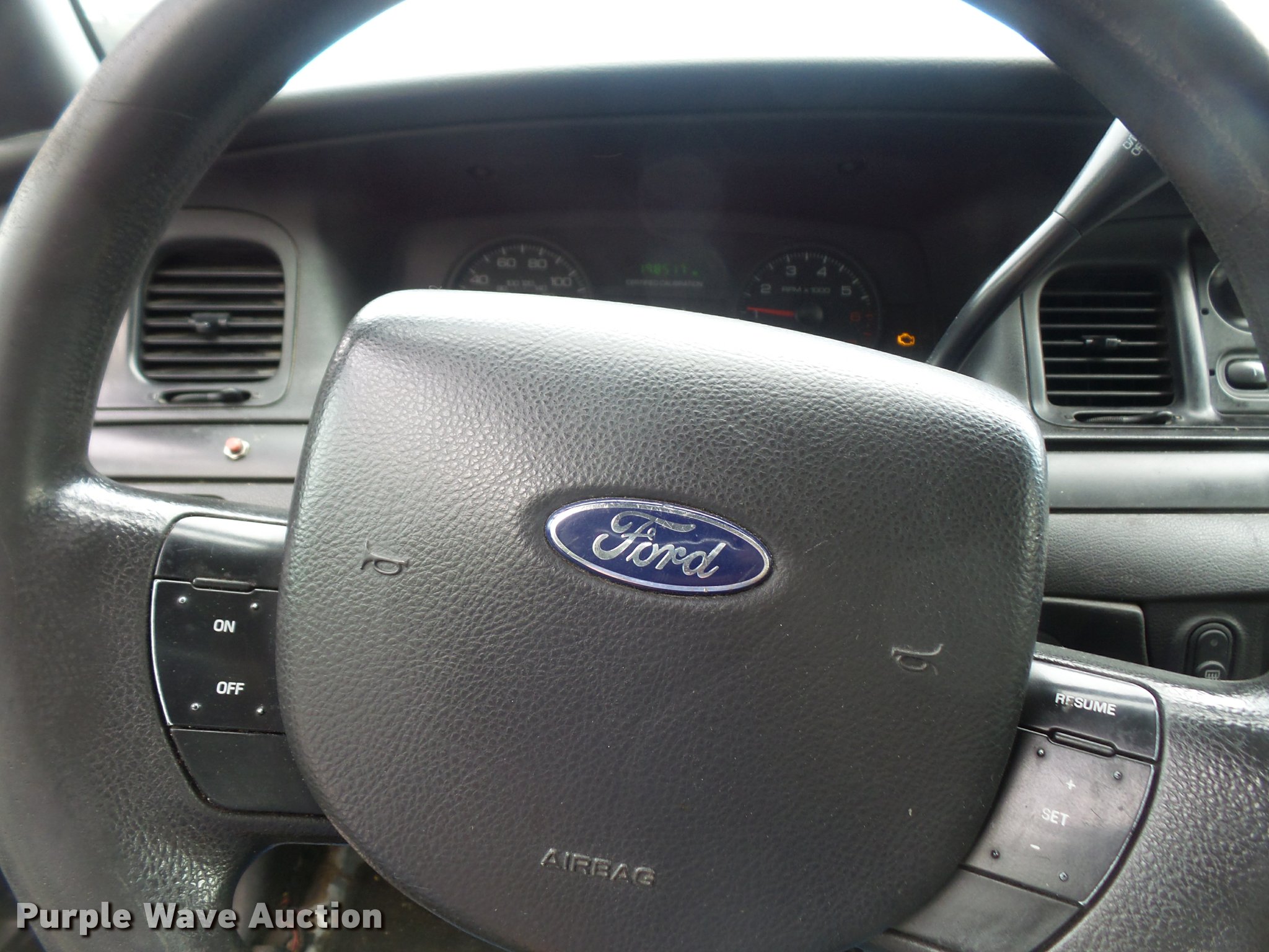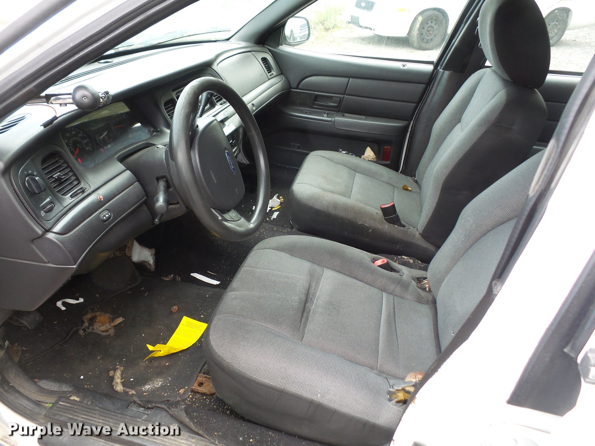 Purple Wave is selling a used Passenger Vehicle in Kansas. This item is a 2011 Ford Crown Victoria Police Interceptor with the following: 198,517 miles on odometer, 4.6L V8 SOHC 16V FFV gas engine, Automatic transmission, AC and heat, Tilt, Cruise, AM/FM, Power windows, locks, and mirrors, Cloth interior, P235/55R17 tires, Engine light on, TMPS light on, Unit# 15-123
