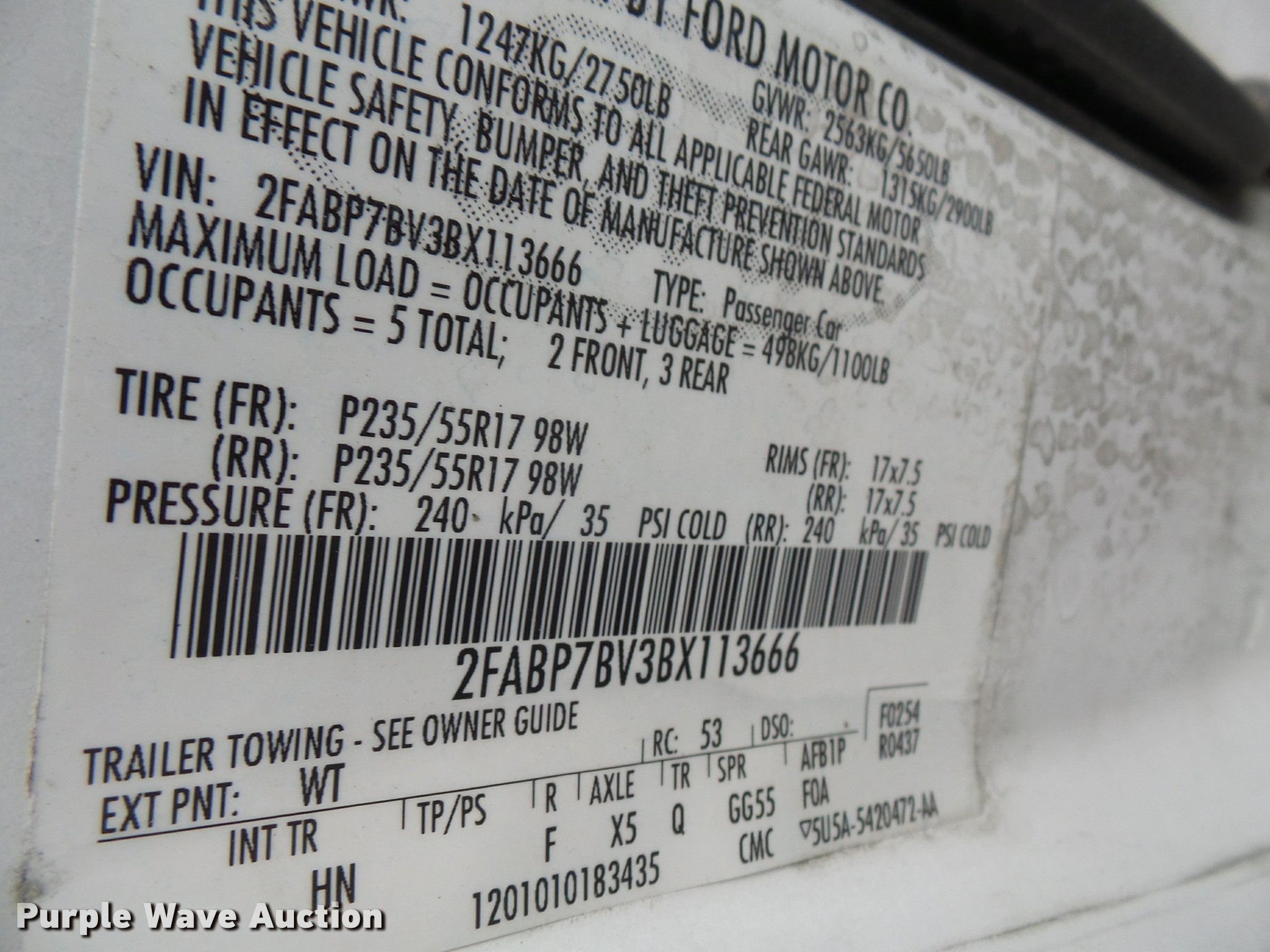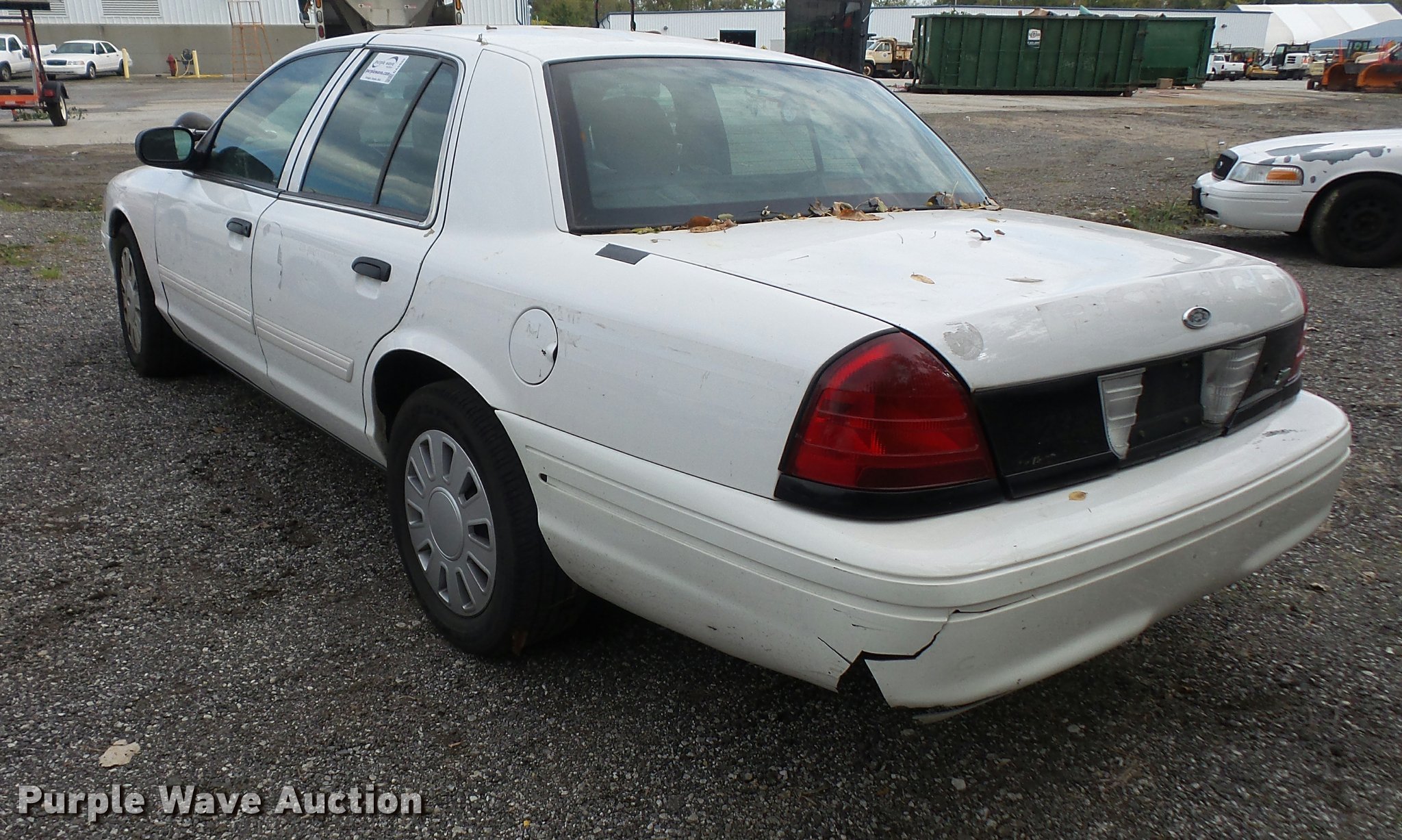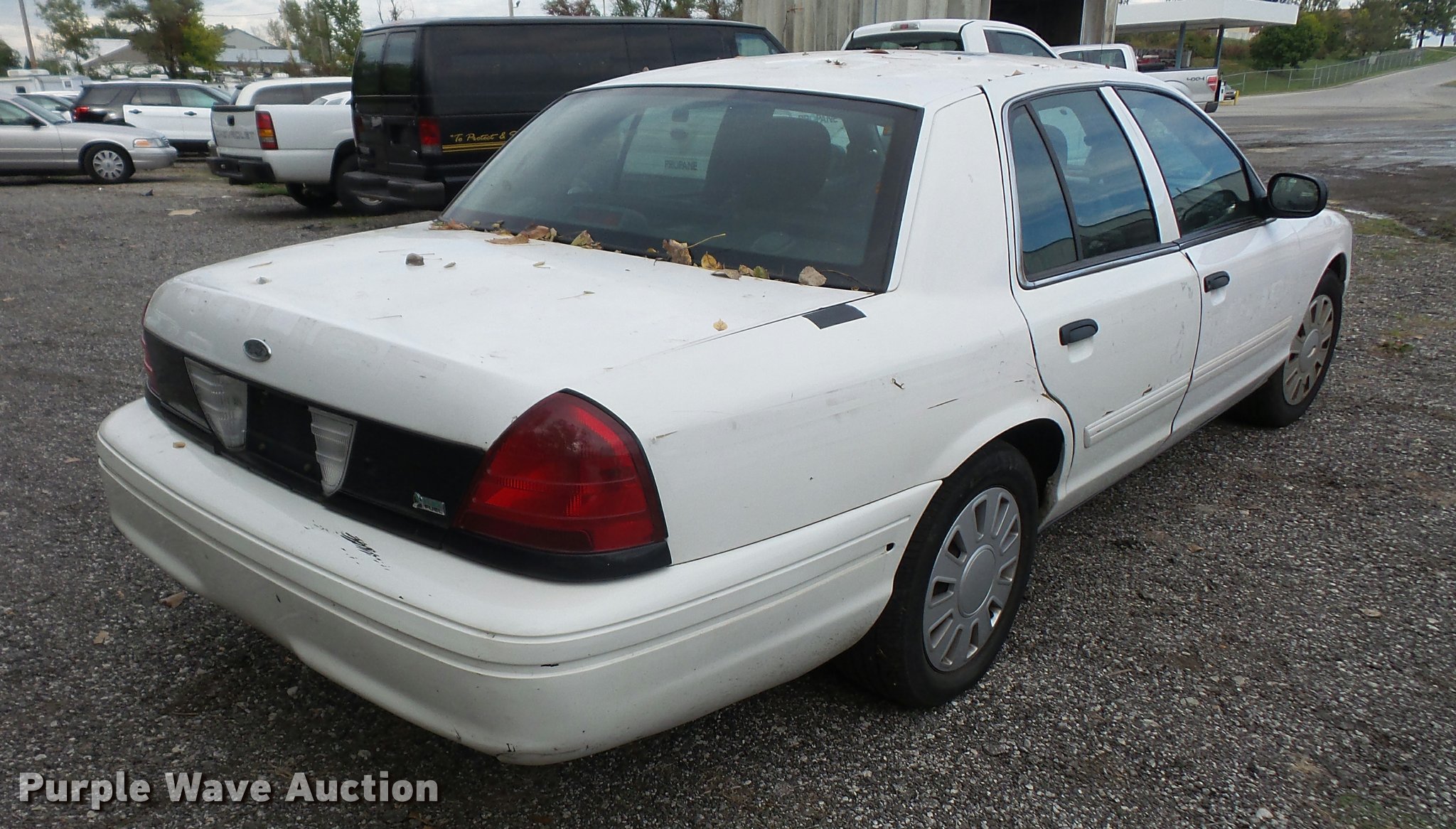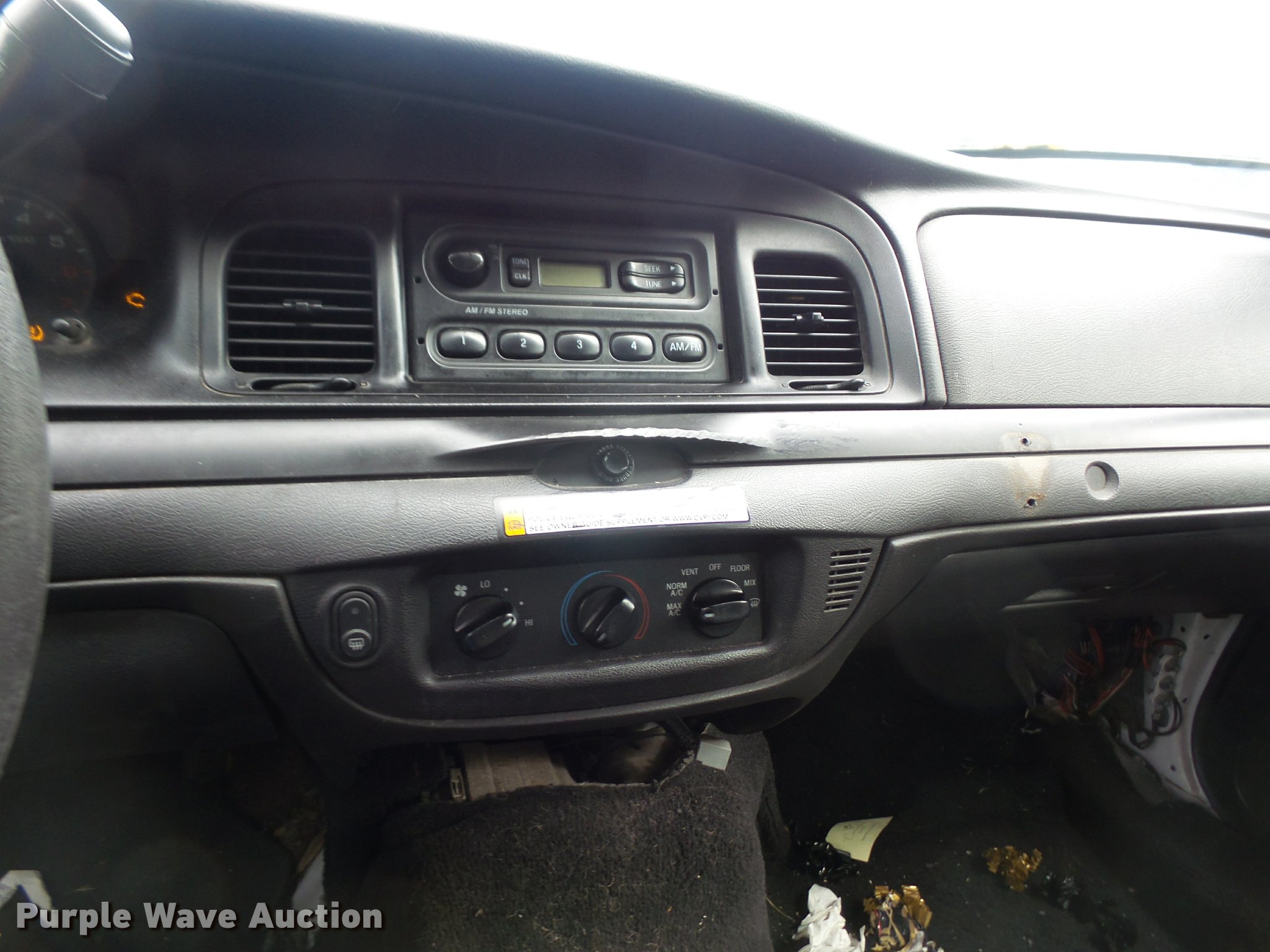 Purple Wave is selling a used Passenger Vehicle in Kansas. This item is a 2011 Ford Crown Victoria Police Interceptor with the following: 198,517 miles on odometer, 4.6L V8 SOHC 16V FFV gas engine, Automatic transmission, AC and heat, Tilt, Cruise, AM/FM, Power windows, locks, and mirrors, Cloth interior, P235/55R17 tires, Engine light on, TMPS light on, Unit# 15-123