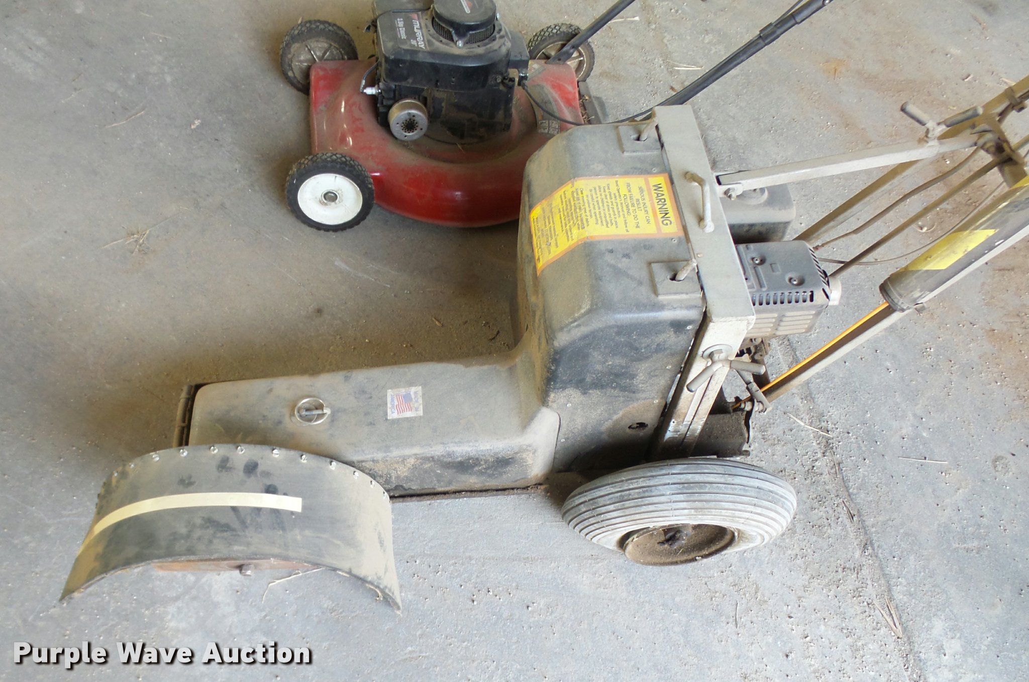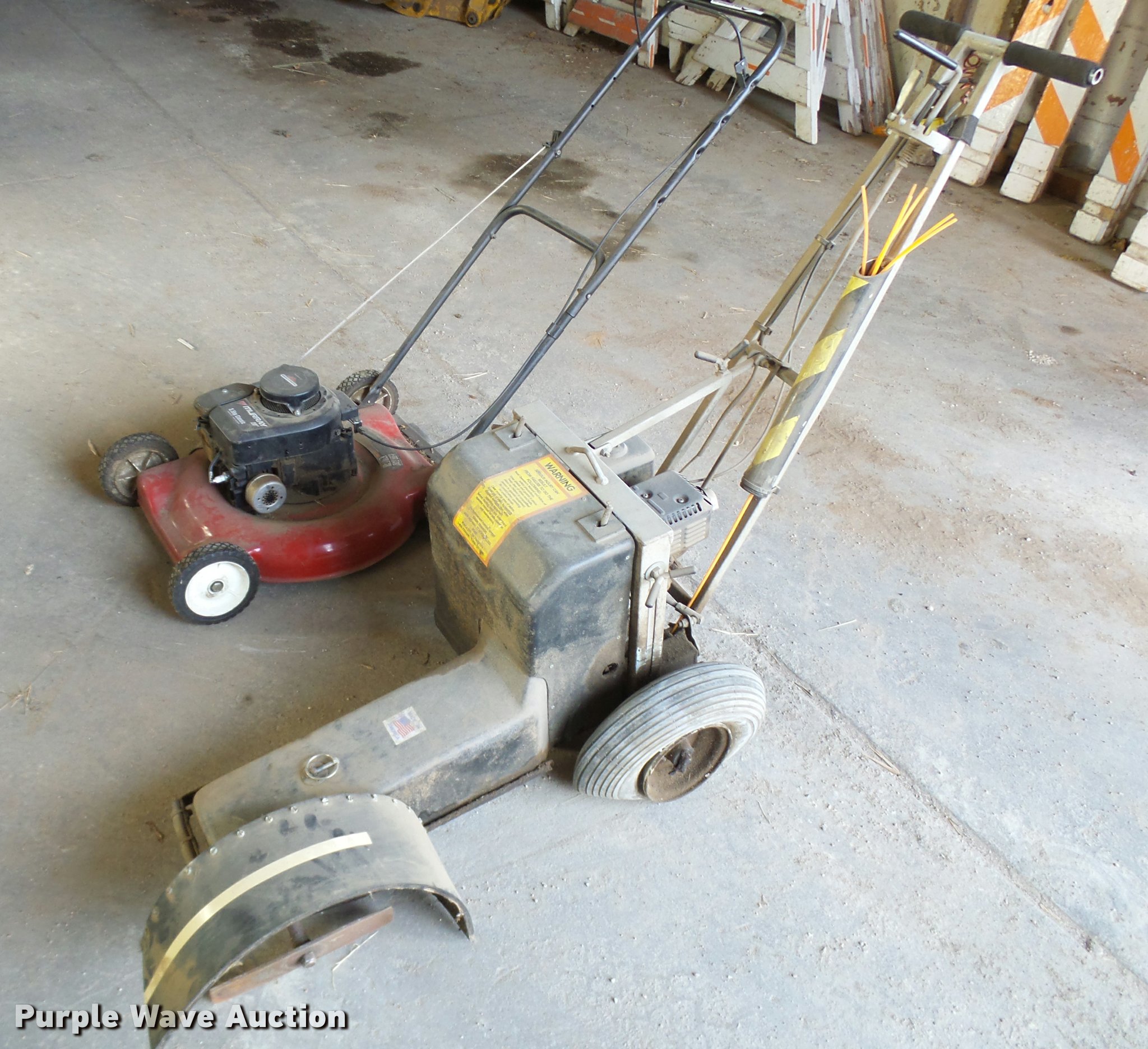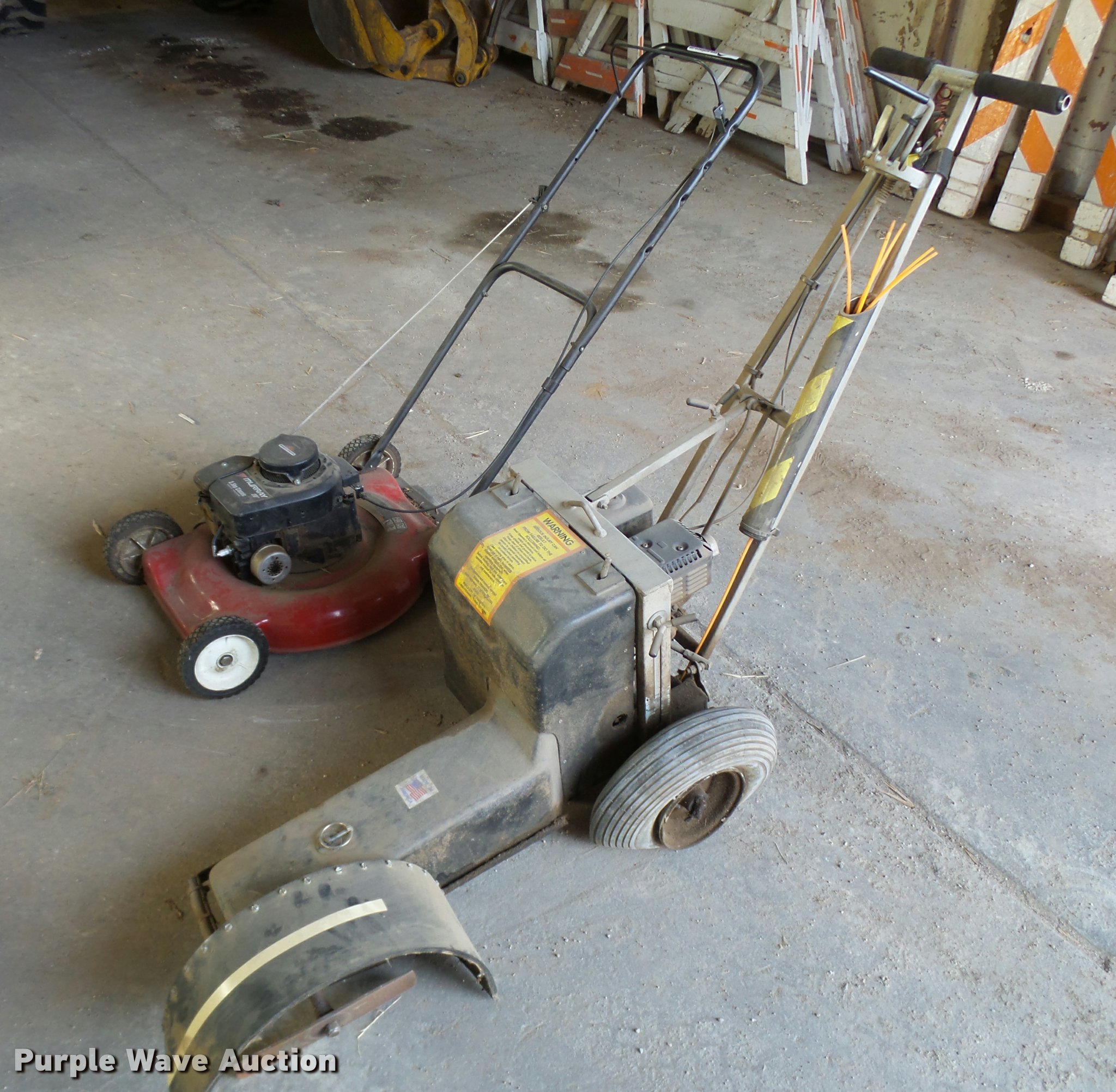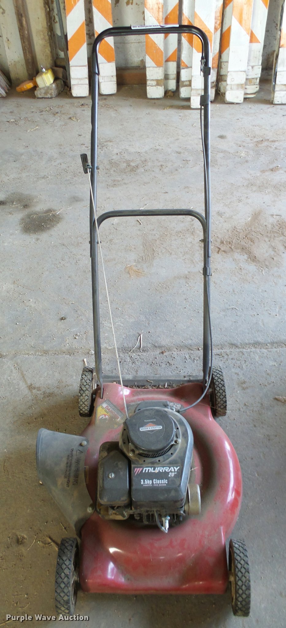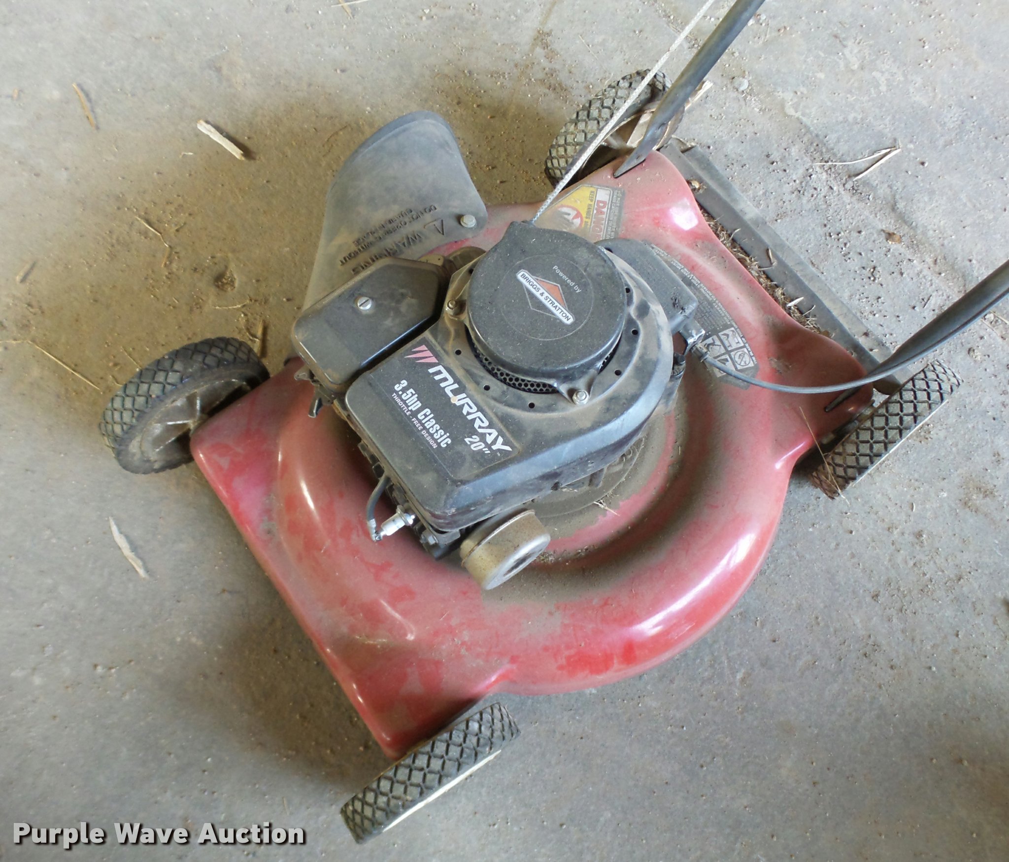 Purple Wave is selling a used Lawn and Garden in Kansas. This item is a Lawn equipment with the following: Shark string trimmer, Tires flat, Murray mower, 20" cut, Briggs & Stratton gas engine, Unknown operating conditions