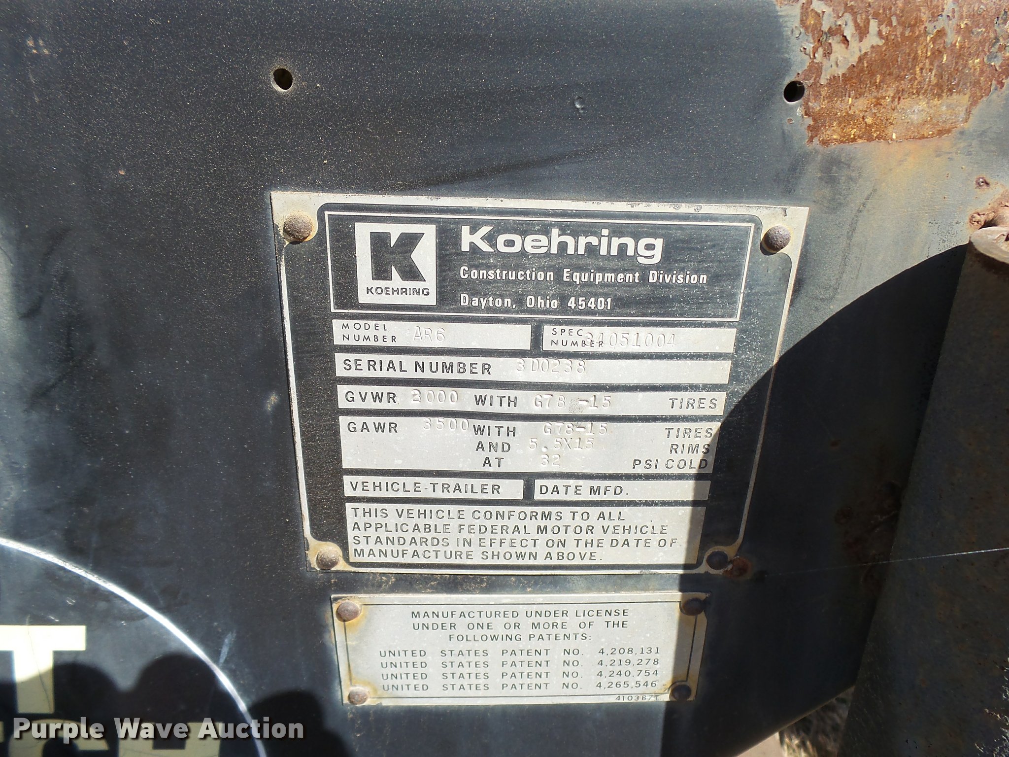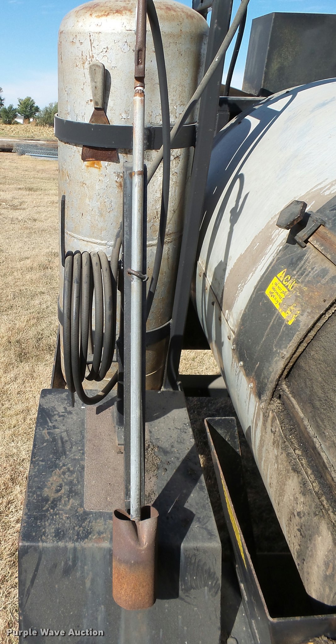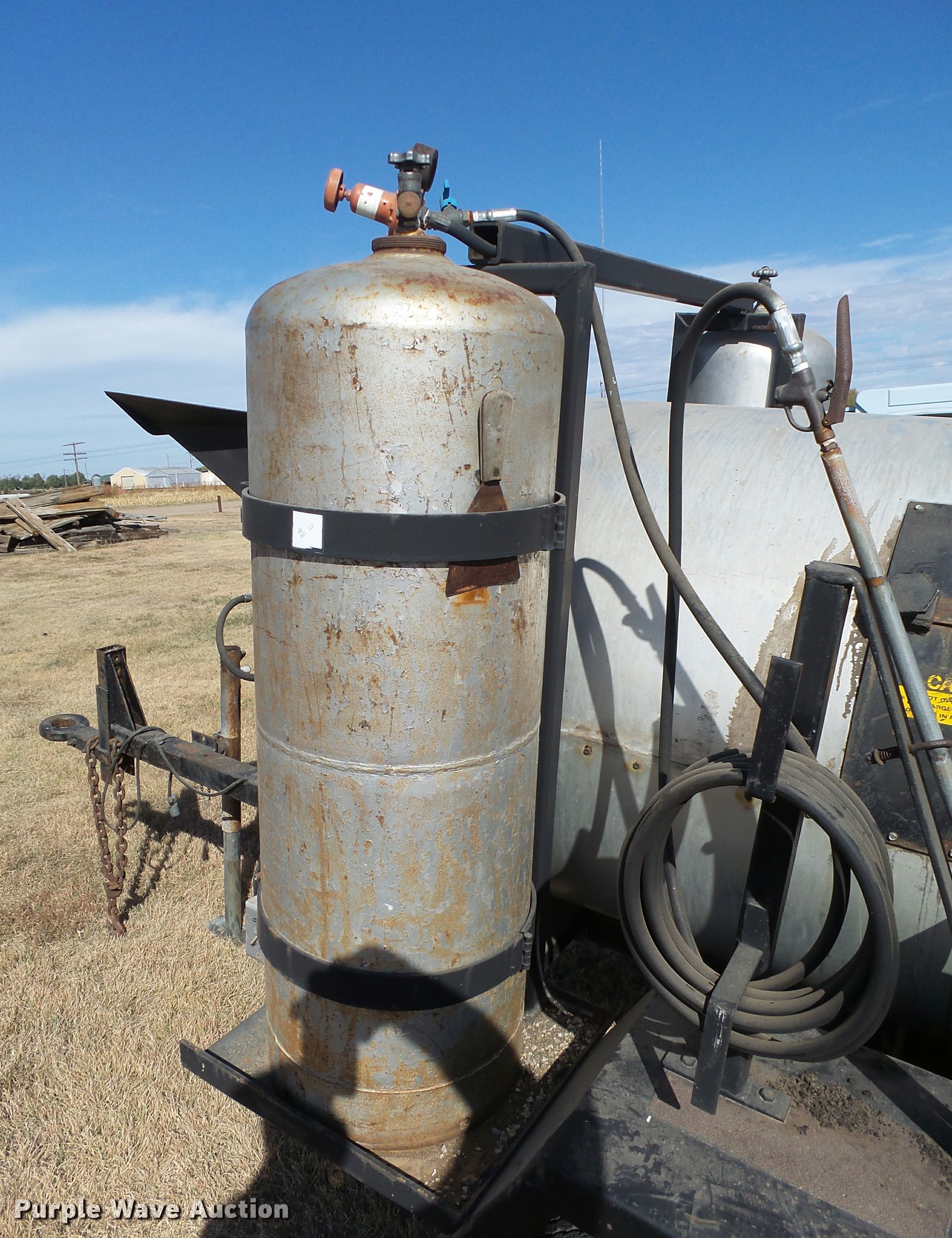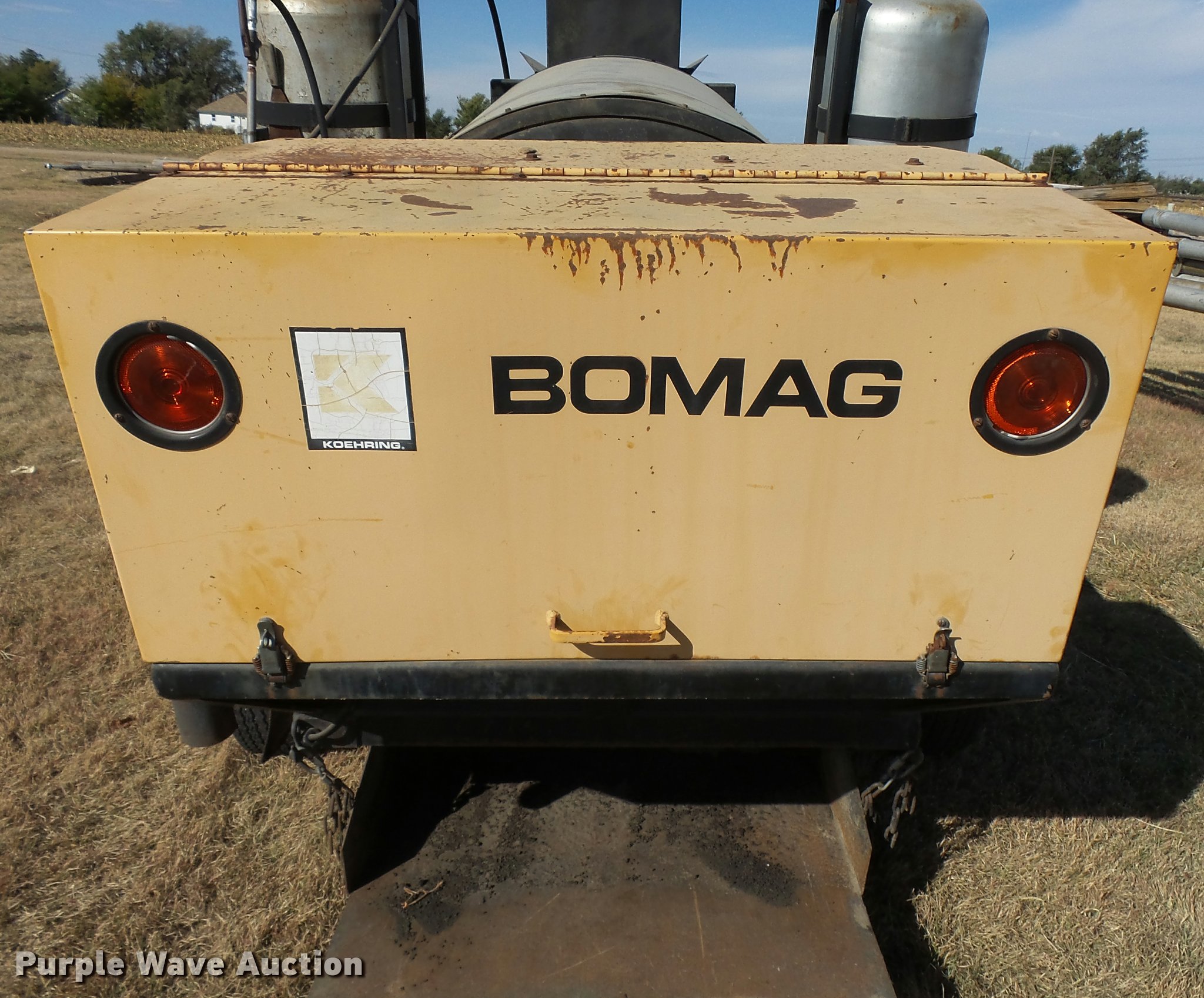 Purple Wave is selling a used Chip Spreader in Kansas. This item is a Bomag AR6 hot patch chip spreader with the following: Winsconsin gas engine, (2) 100 lbs propane bottles, Pintle hitch, 678-15 tires, Used, Serial 300238