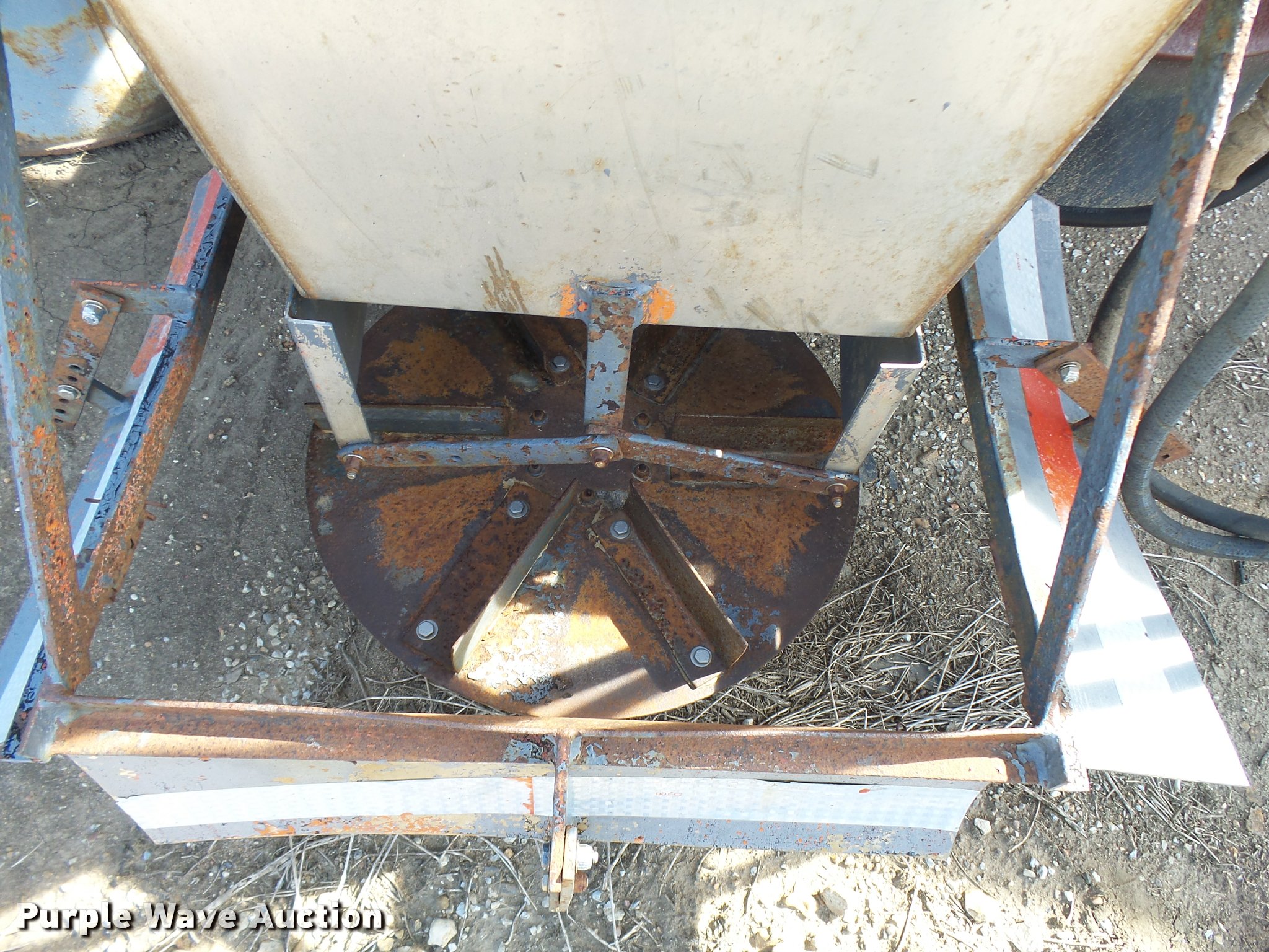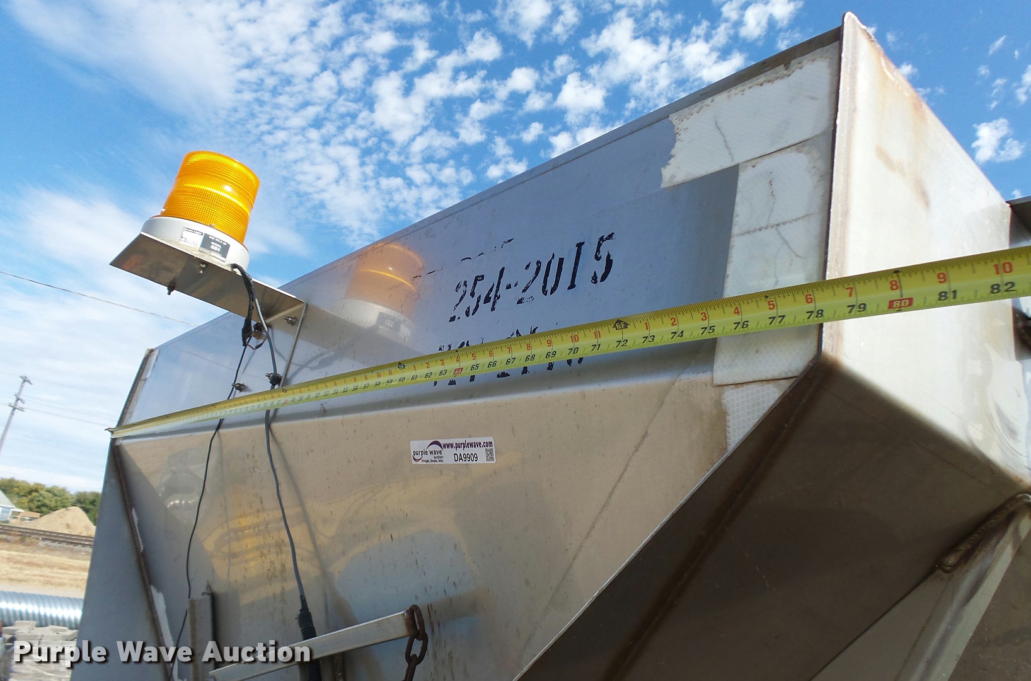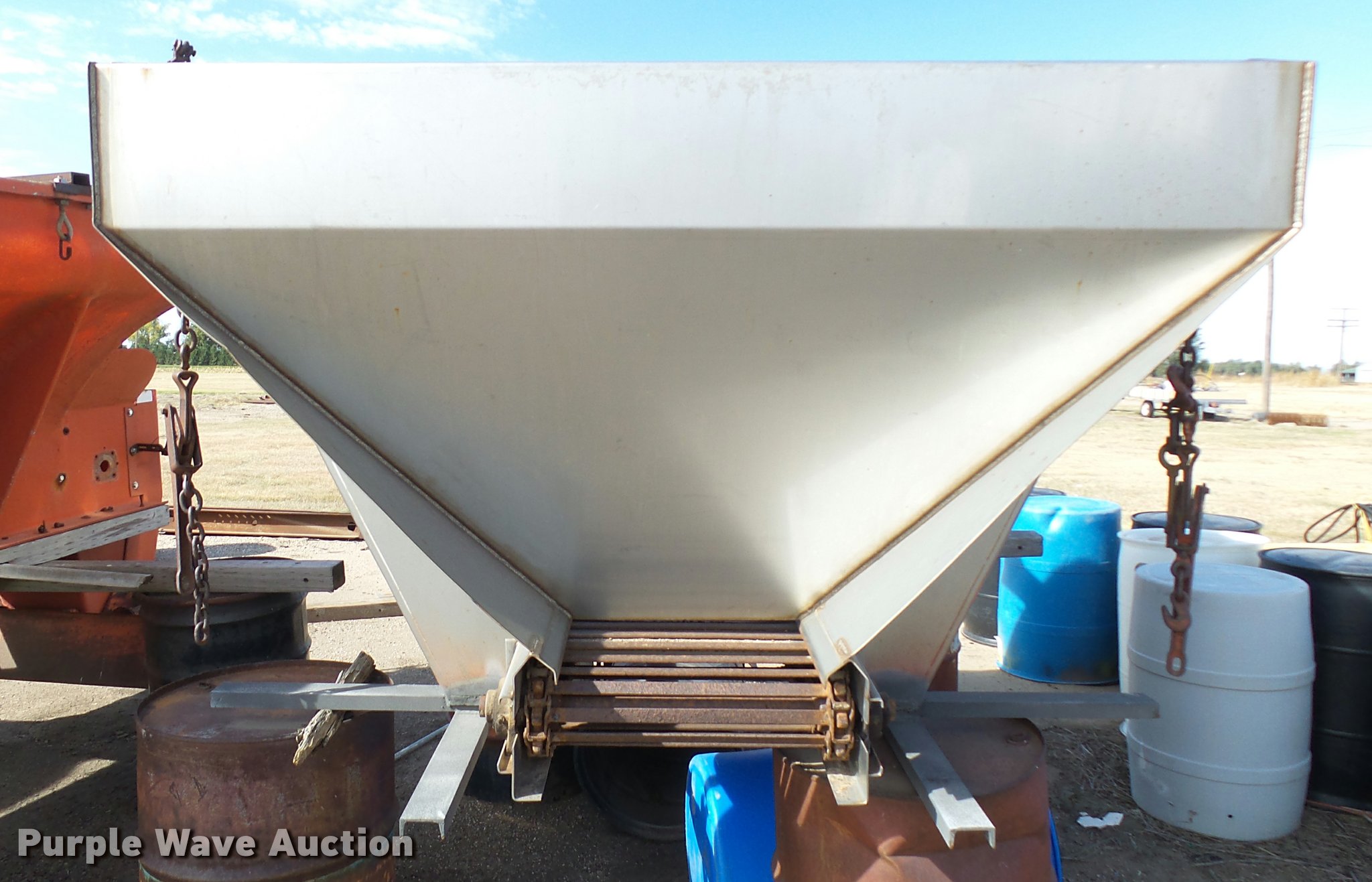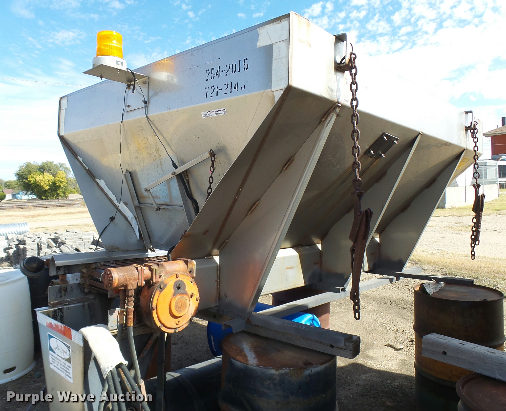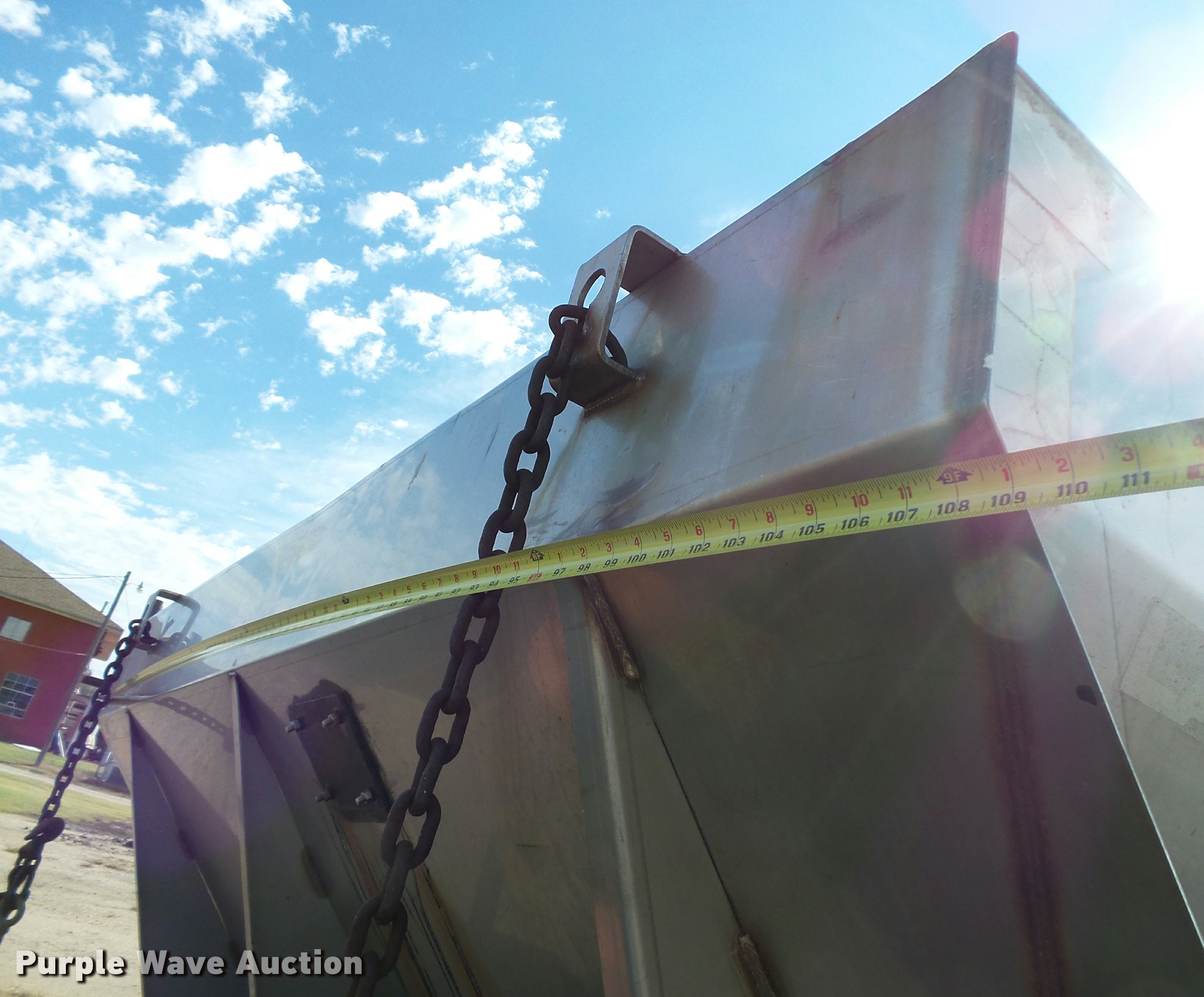 Larson 509 stainless steel spreader. 9'L x 78"W, Single spinner, Hydraulic operation. City of St. John. St. John, KS 67576