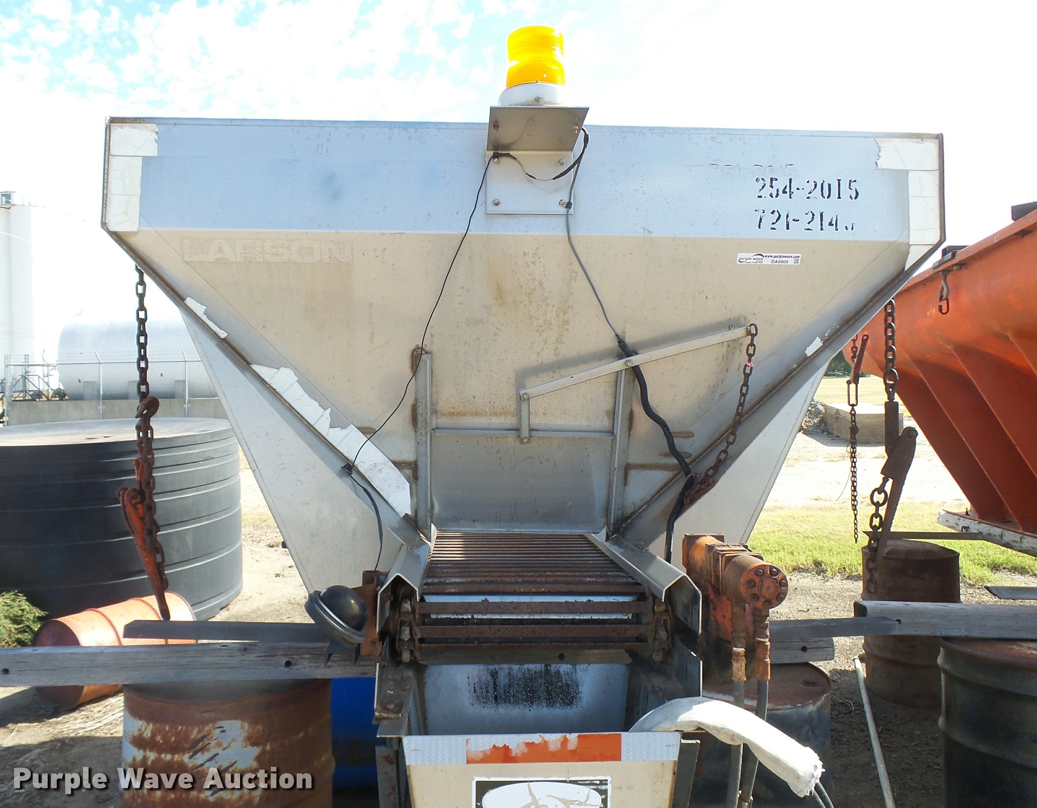 Purple Wave is selling a used Truck Part and Attach. in Kansas. This item is a Larson 509 stainless steel spreader with the following: 9'L x 78"W, Single spinner, Hydraulic operation
