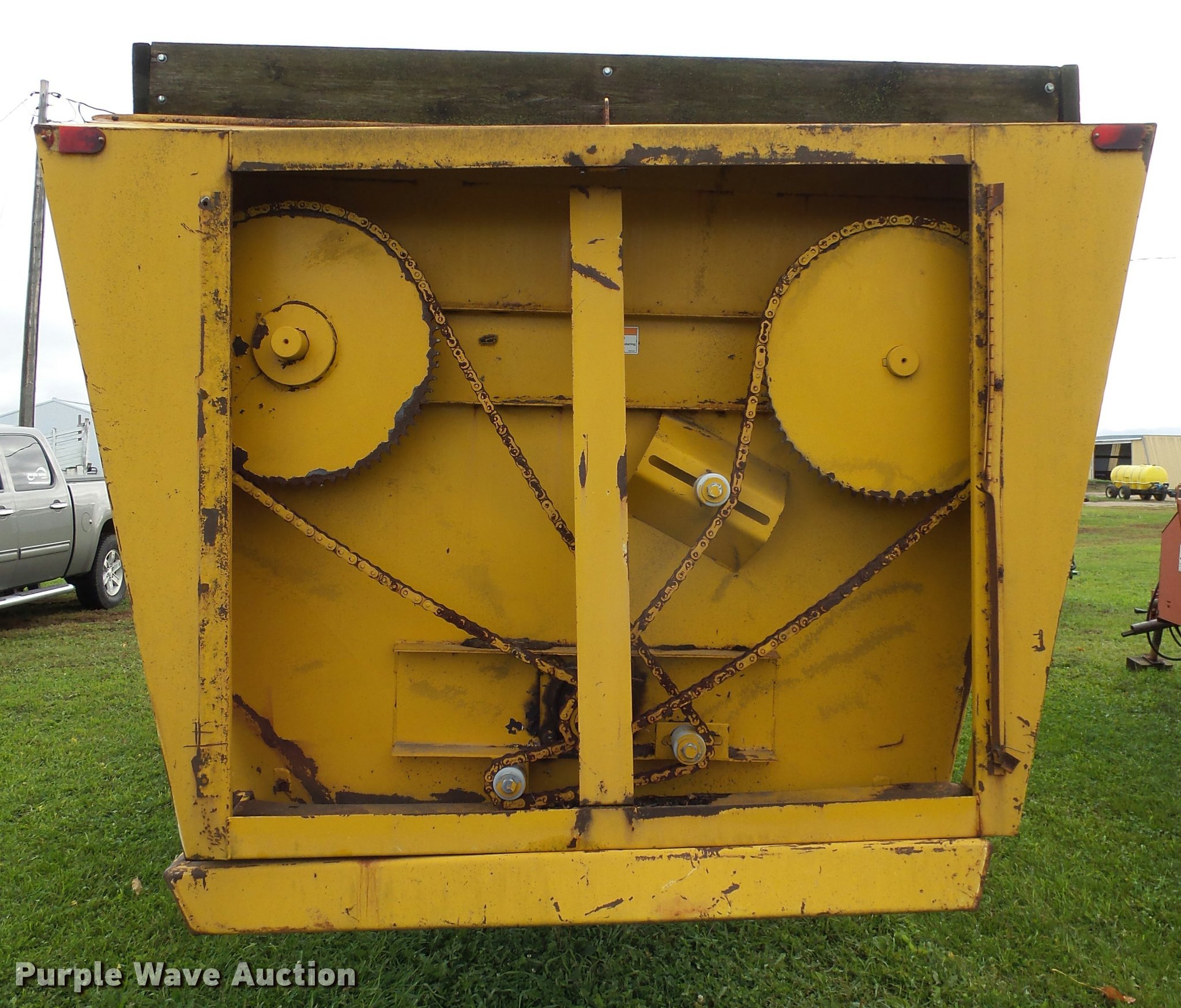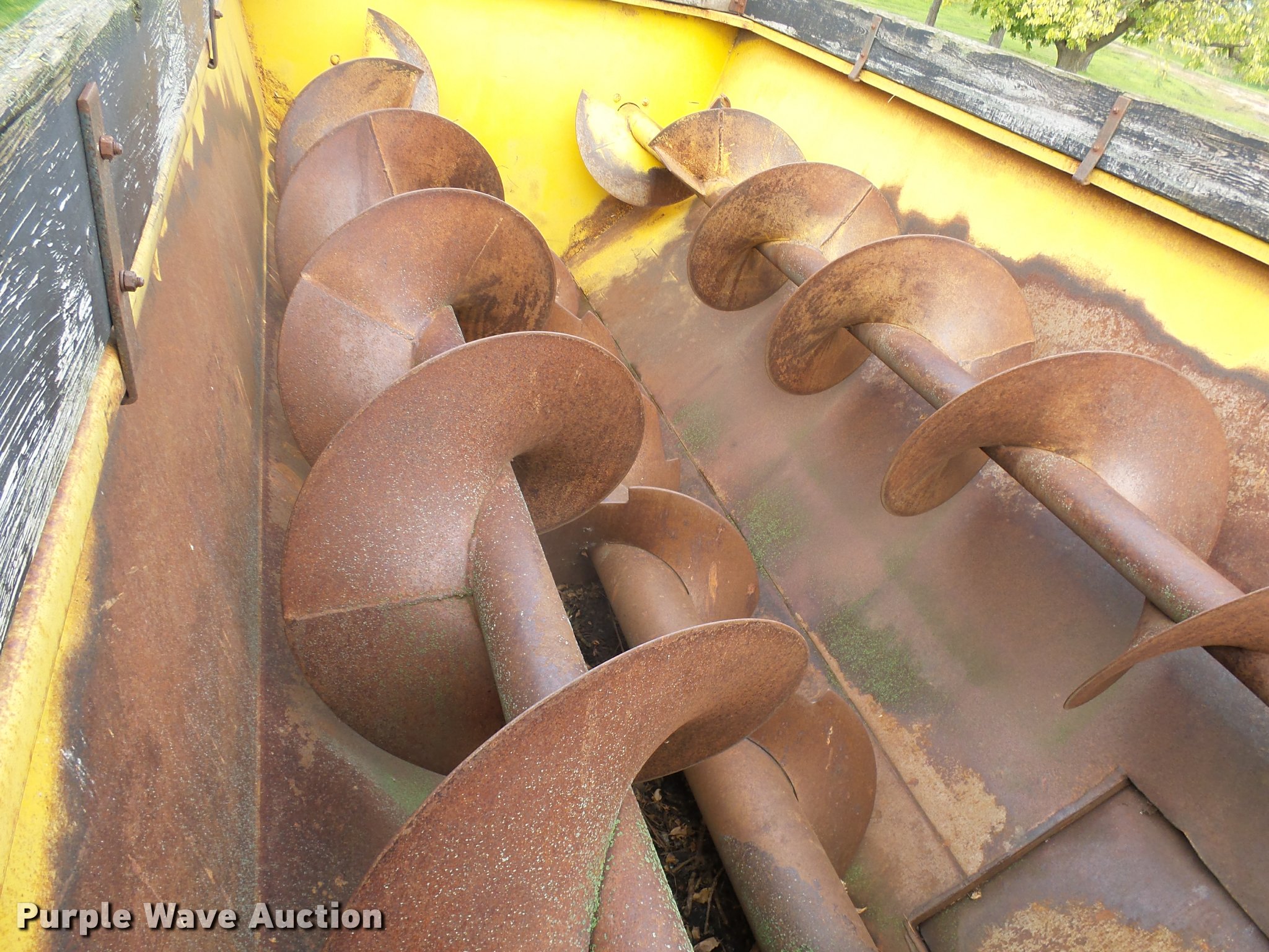Buffalohenke Kiwkcutter 370 feed mixer. Model 71010370, 400 cu. ft. capacity, Feed scale, Dual auger discharge, Serial 977110146. South Dakota Property Management. Beresford, SD 57004