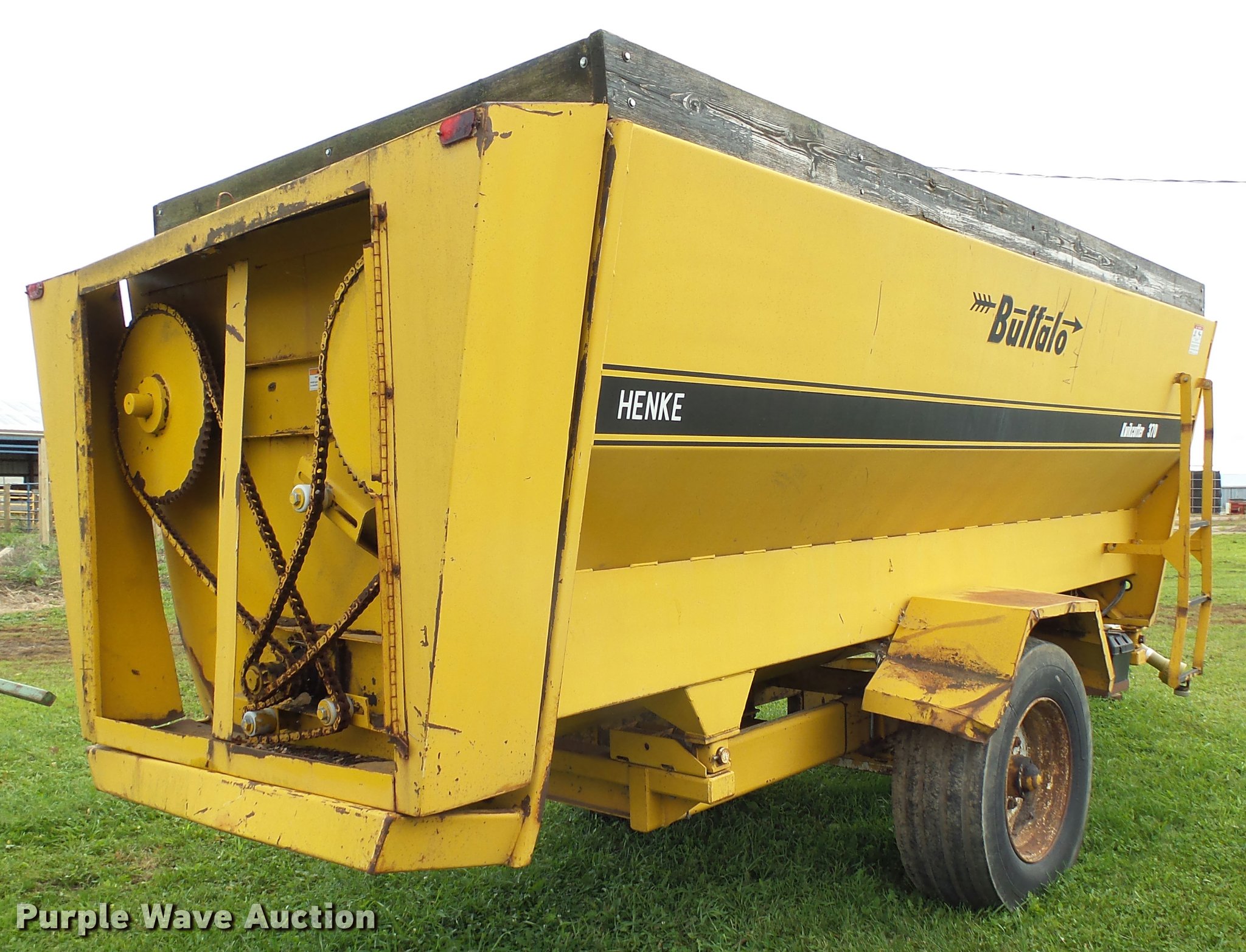 Purple Wave is selling a used Feed Mixer or Bale Processor in South Dakota. This item is a Buffalohenke Kiwkcutter 370 feed mixer with the following: Model 71010370, 400 cu. ft. capacity, Feed scale, Dual auger discharge, Serial 977110146
